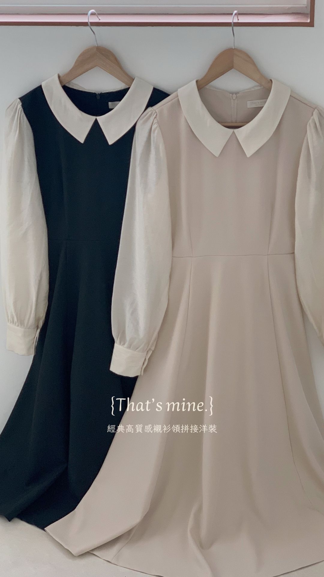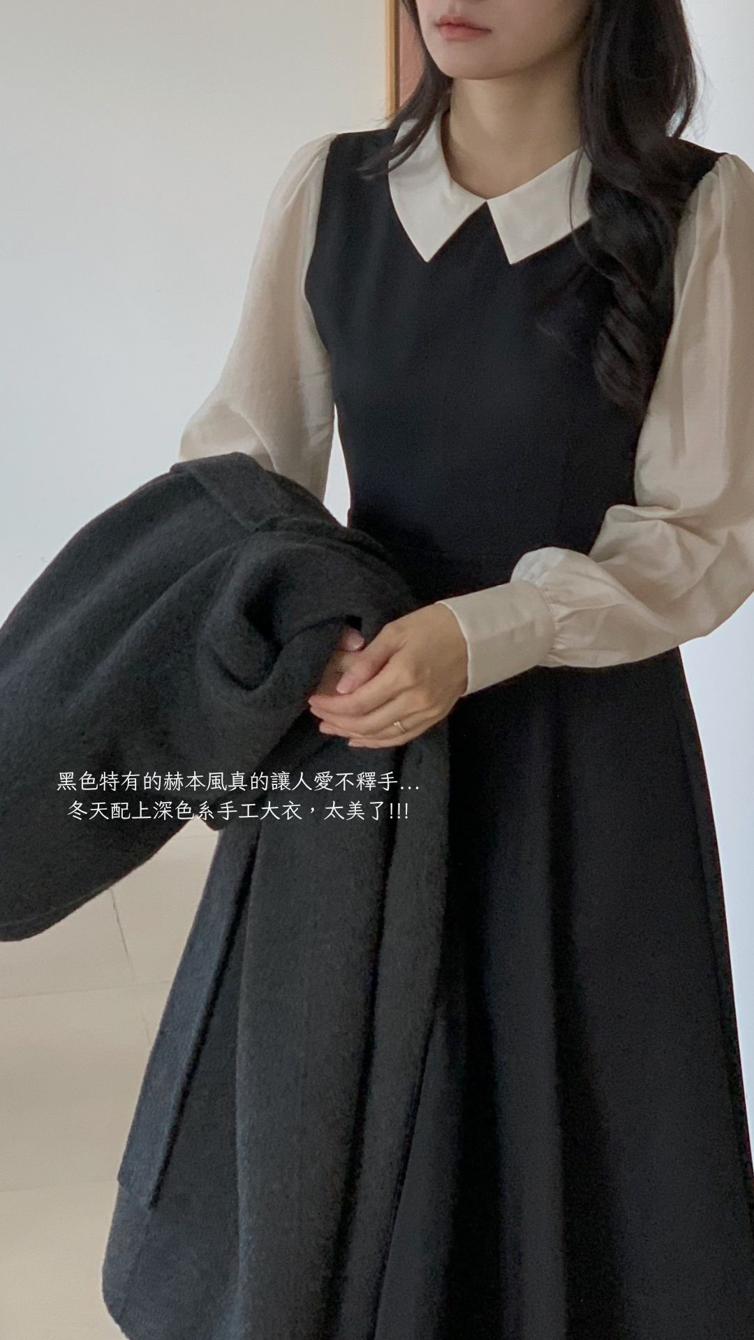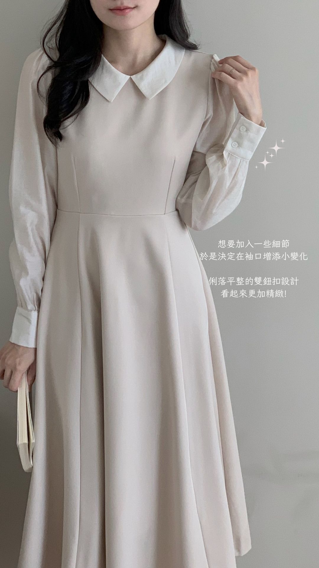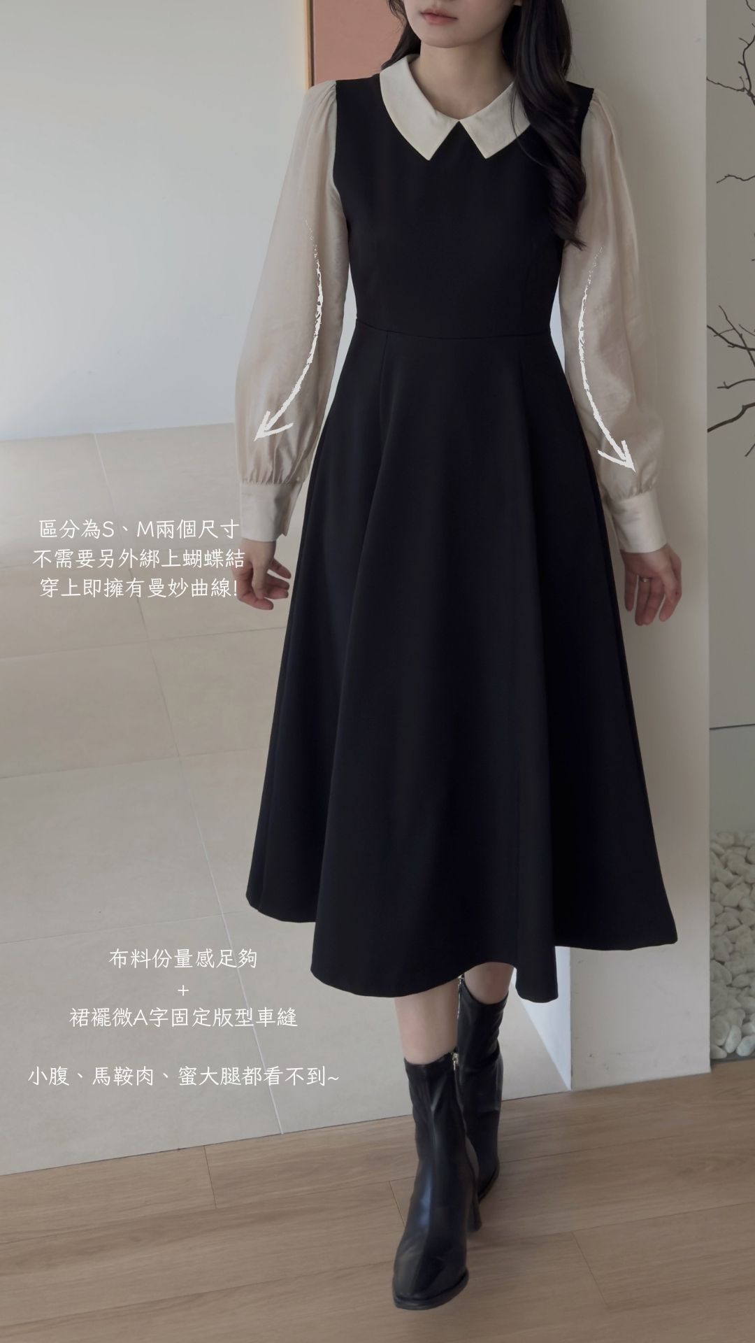 最喜歡的是 拼接雪紡長袖+白色領片,氣質感滿分,帶一點復古學院風,又不會太過甜美,剛剛好。袖子的蓬度讓手臂看起來更細,整件穿起來優雅但不浮誇,非常耐看。
