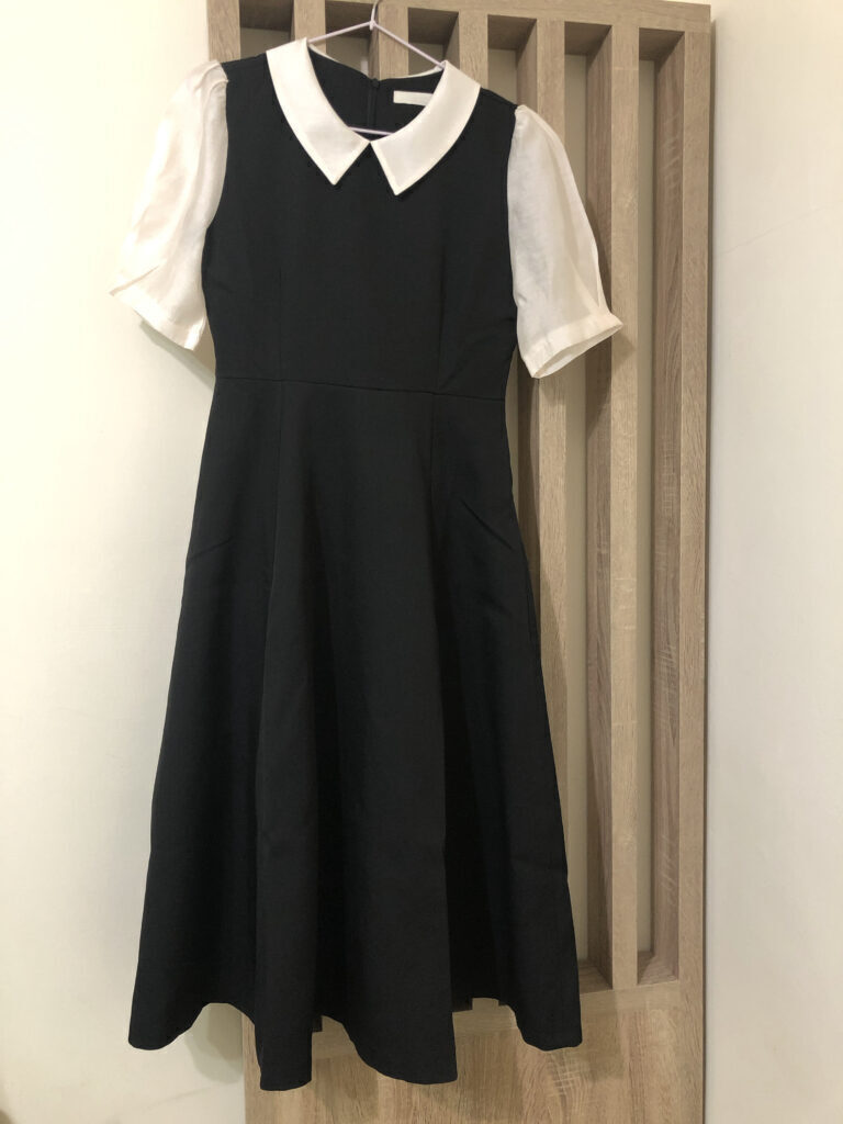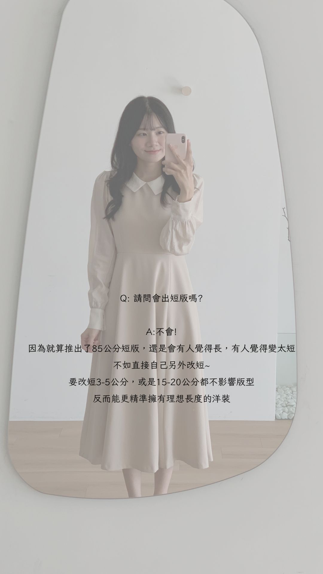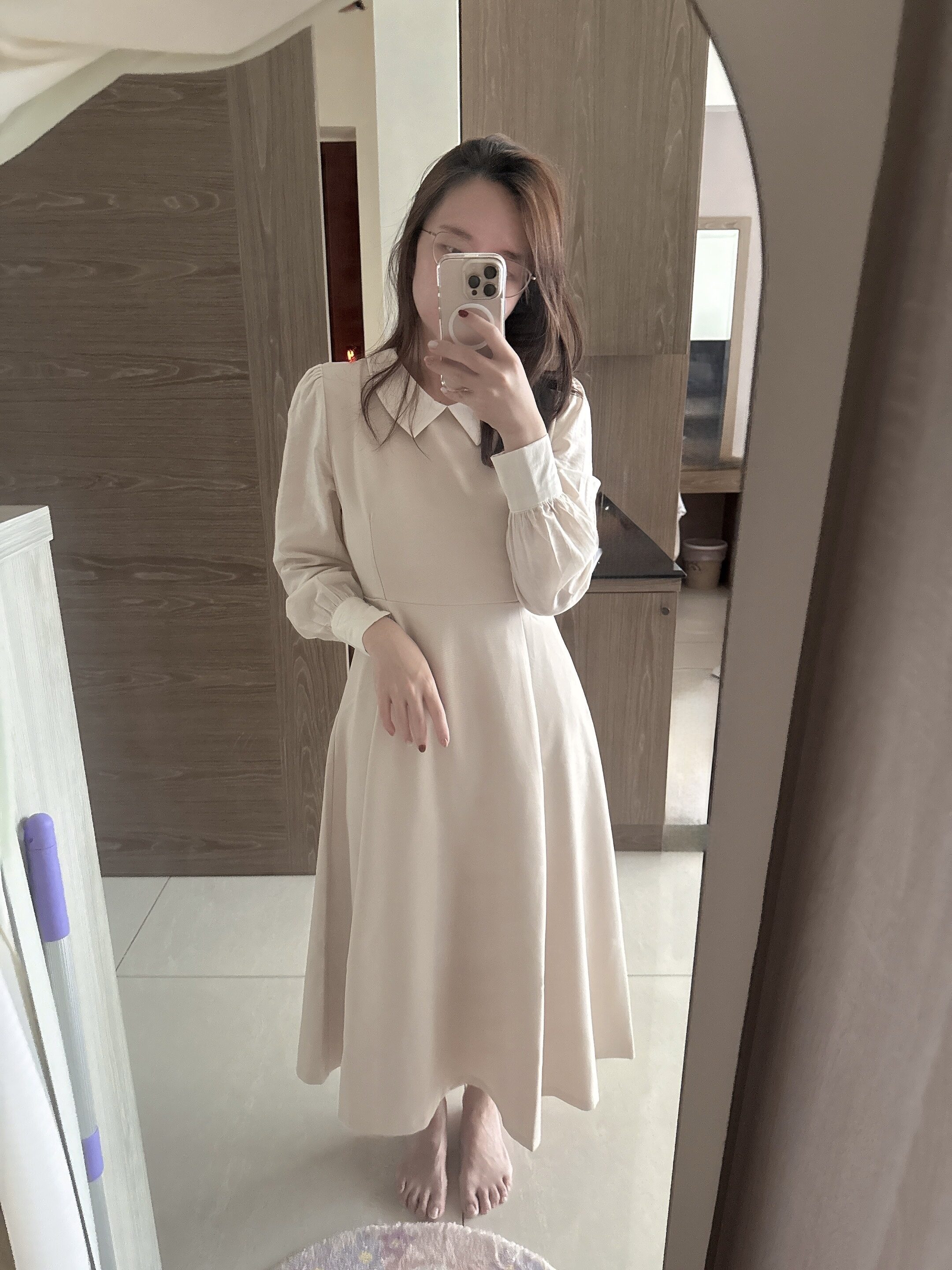 這件洋裝真的超出預期的好看!版型是那種一穿上就會覺得「比例被拉起來」的剪裁,腰線位置剛好、裙擺微A版非常顯瘦,連小腹或大腿線條都能巧妙遮住。布料份量感也很足,不會軟趴趴,走路時裙子微微擺動很有質感。