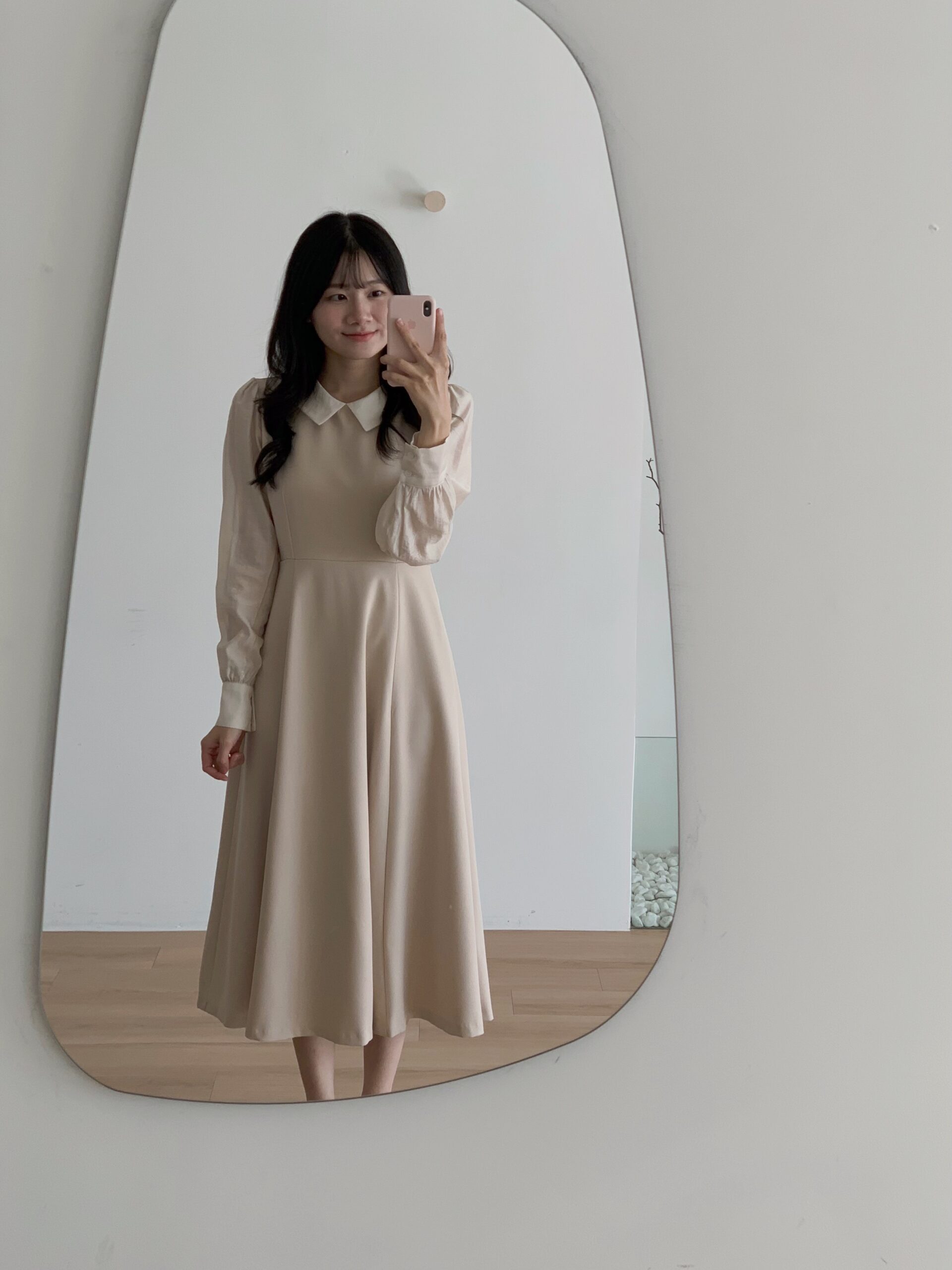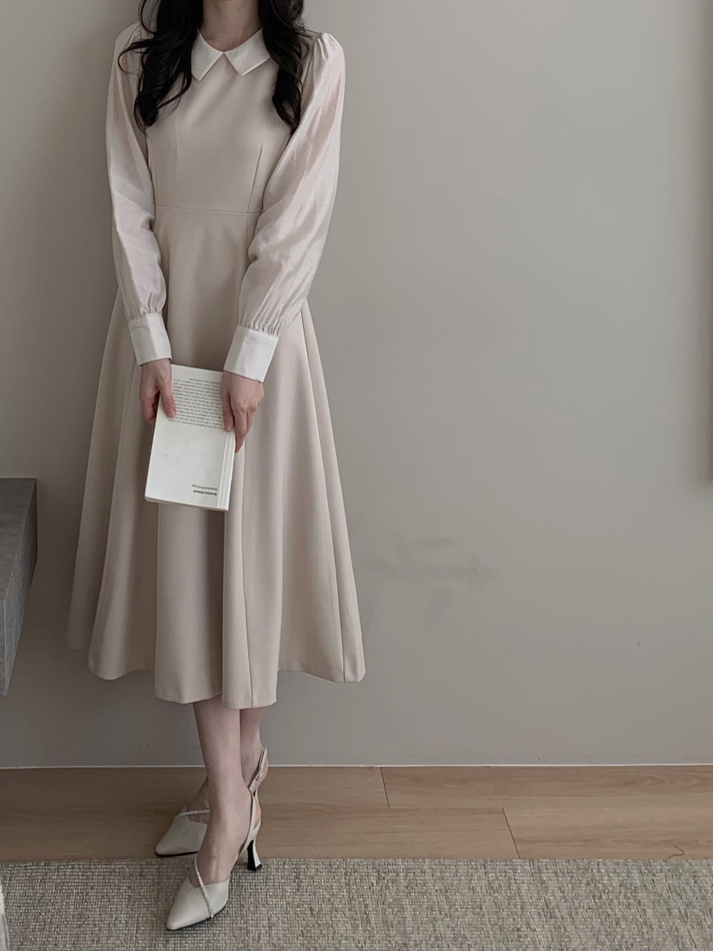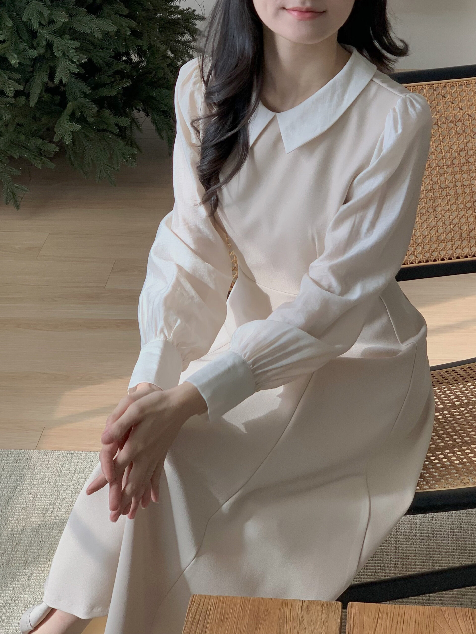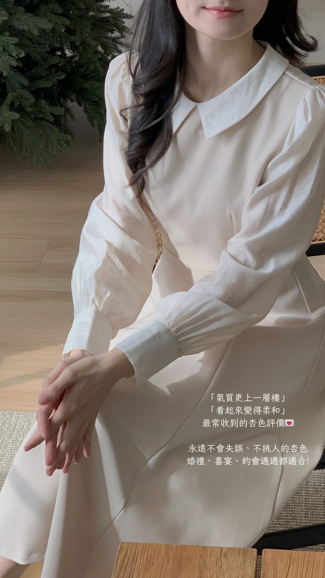 ******ung3562@gmail.com <鎮店洋裝>浪漫修身氣質洋裝(長袖) - 杏色, M - 顏色 : 杏色, 尺寸 : M