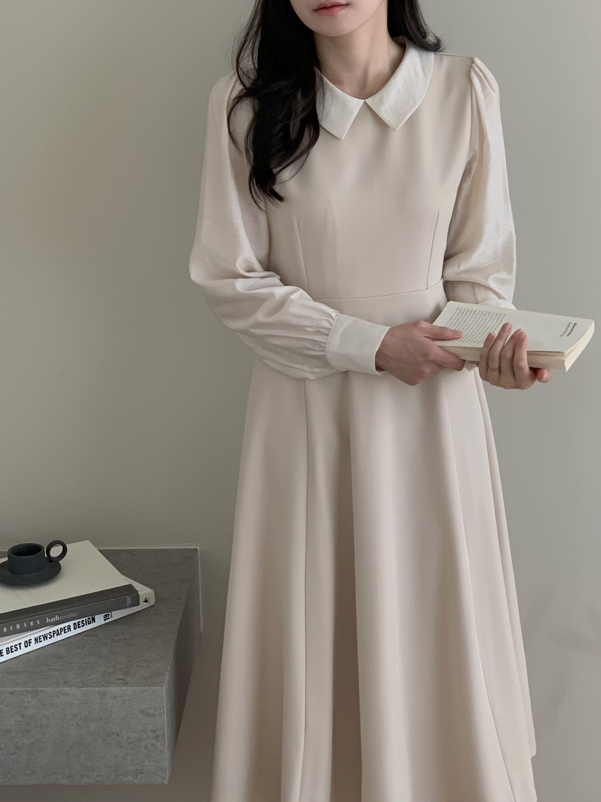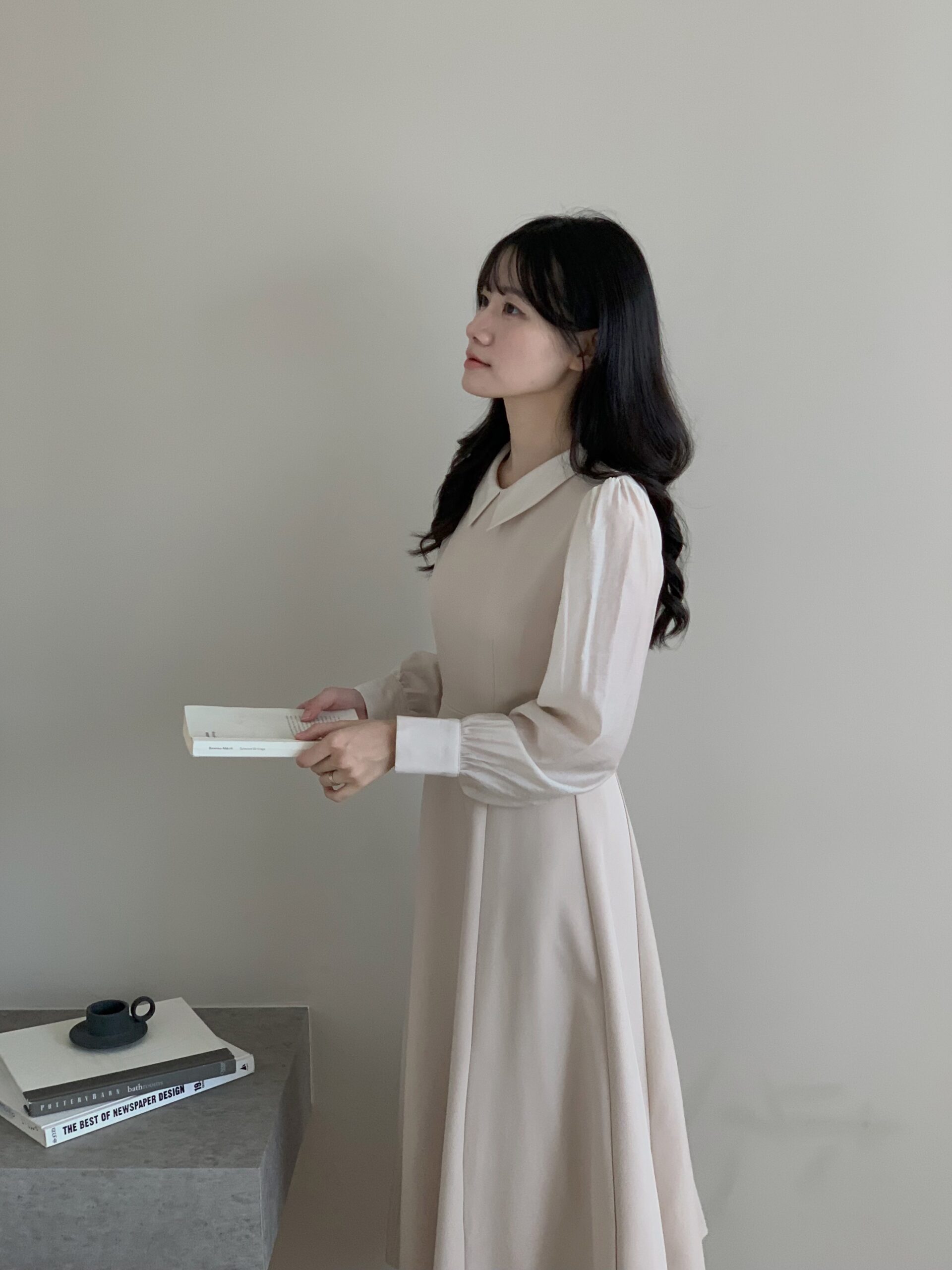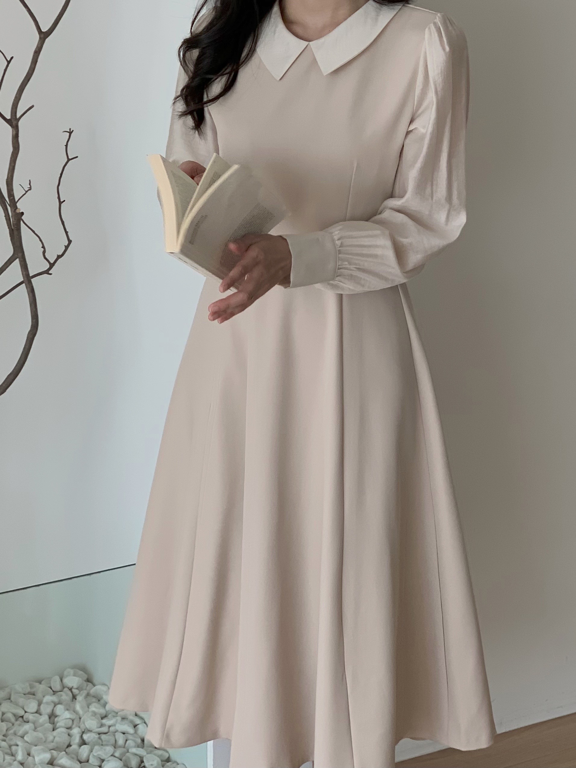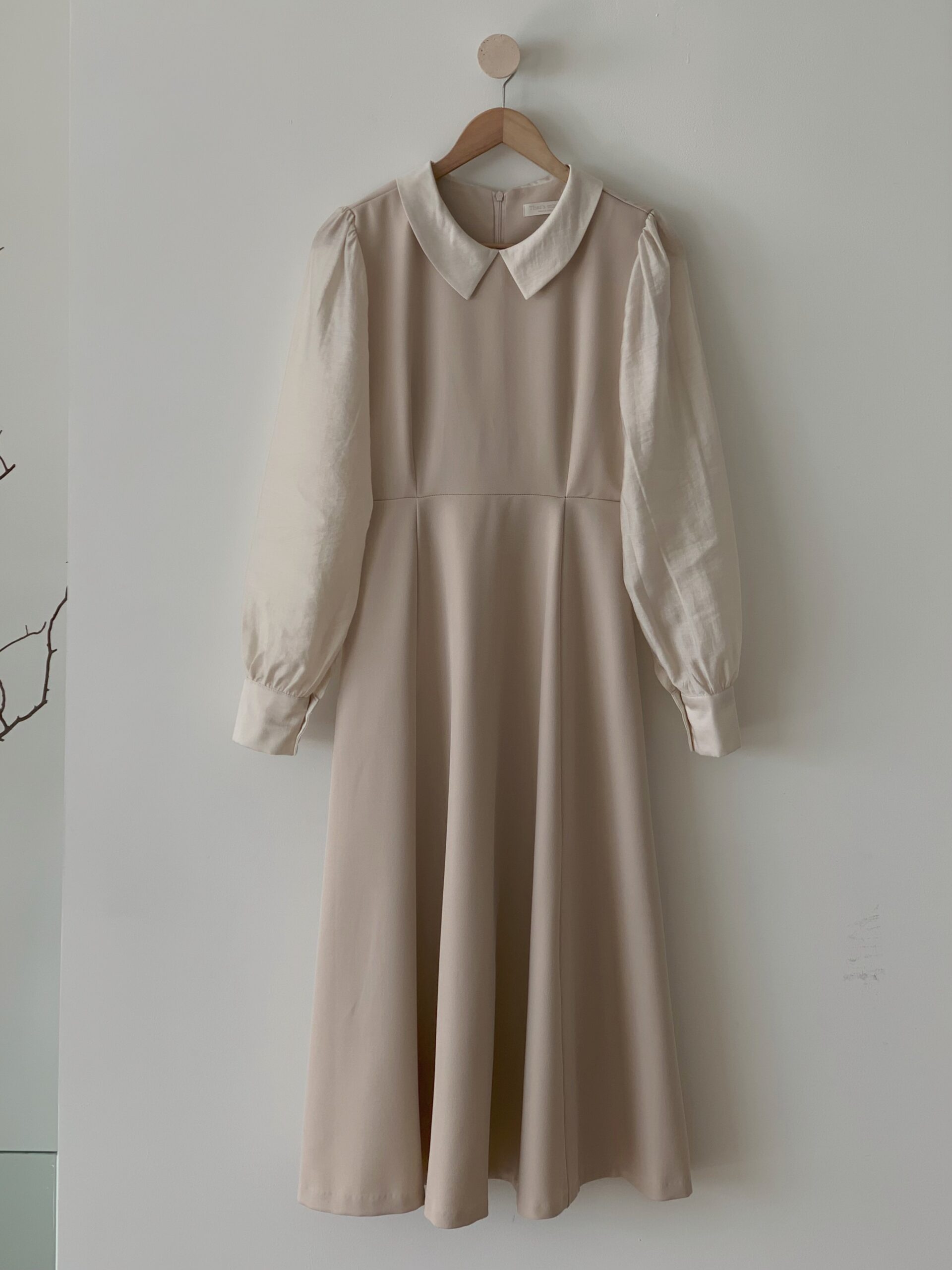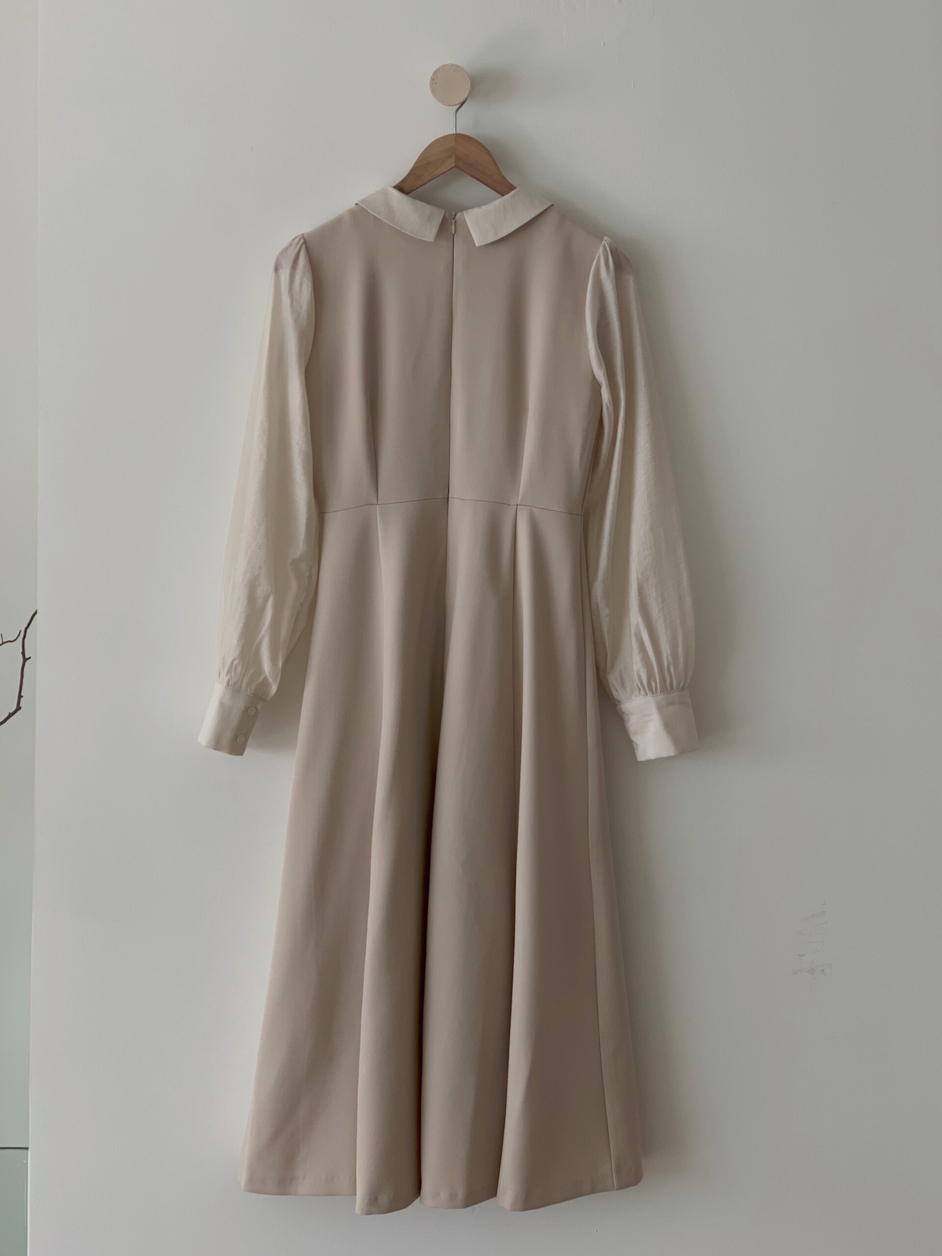 ******ung3562@gmail.com <鎮店洋裝>浪漫修身氣質洋裝(長袖) - 杏色, M - 顏色 : 杏色, 尺寸 : M