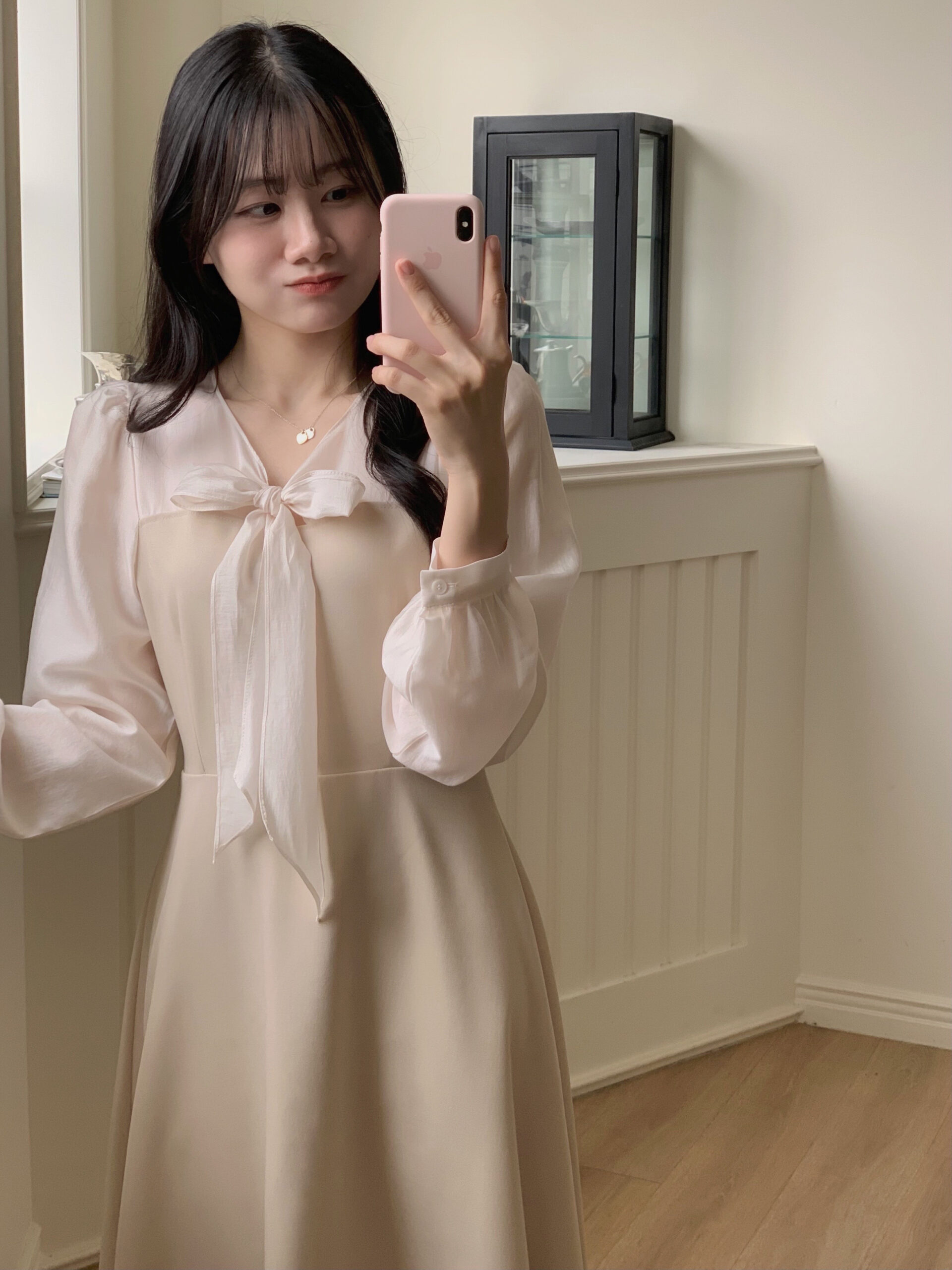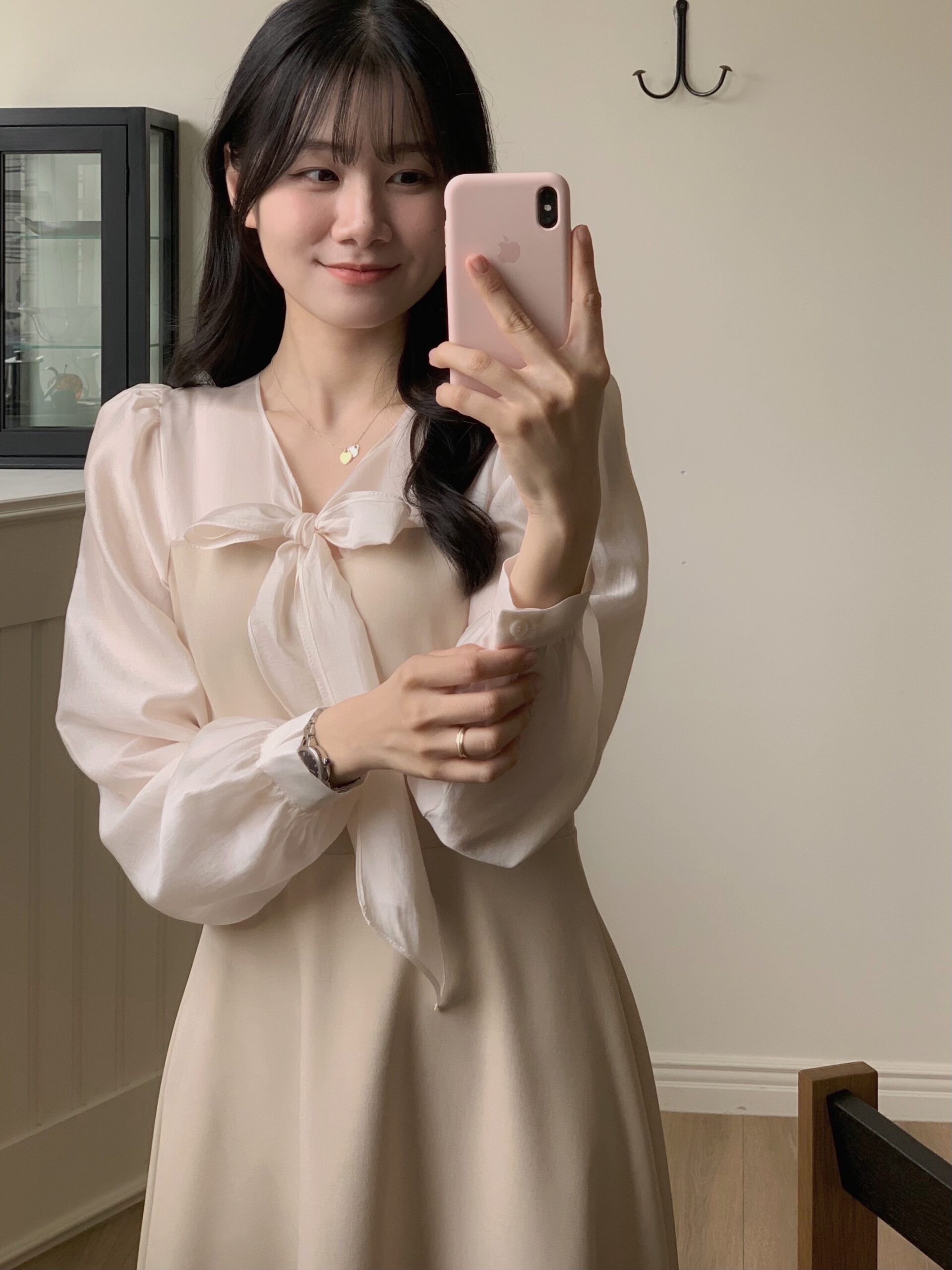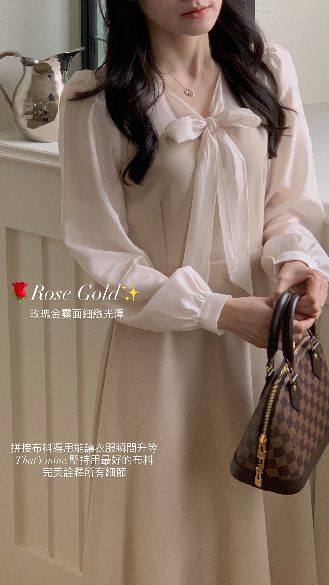 實品和照片一樣美,玫瑰金的布料讓這件洋裝看起來格外溫柔❤️