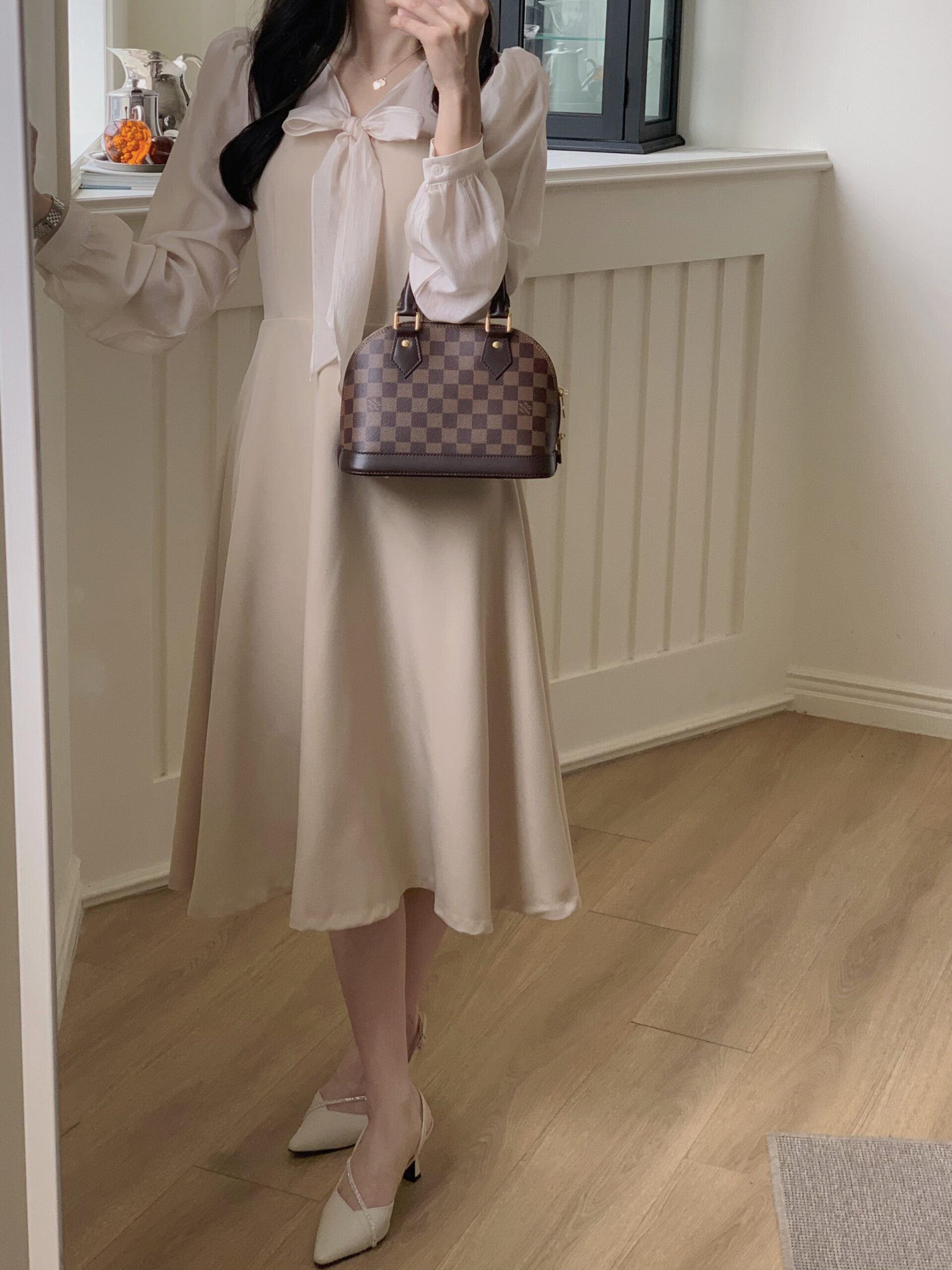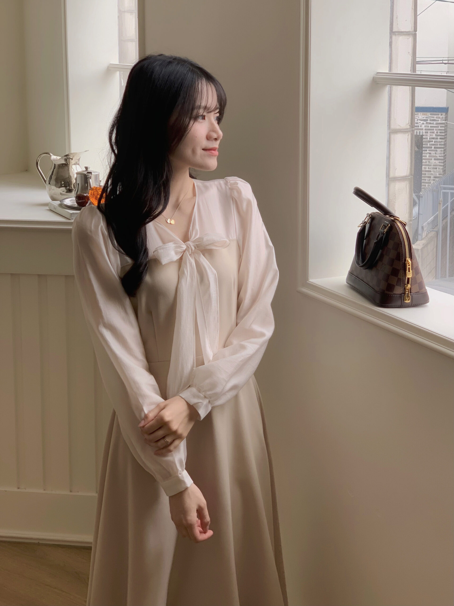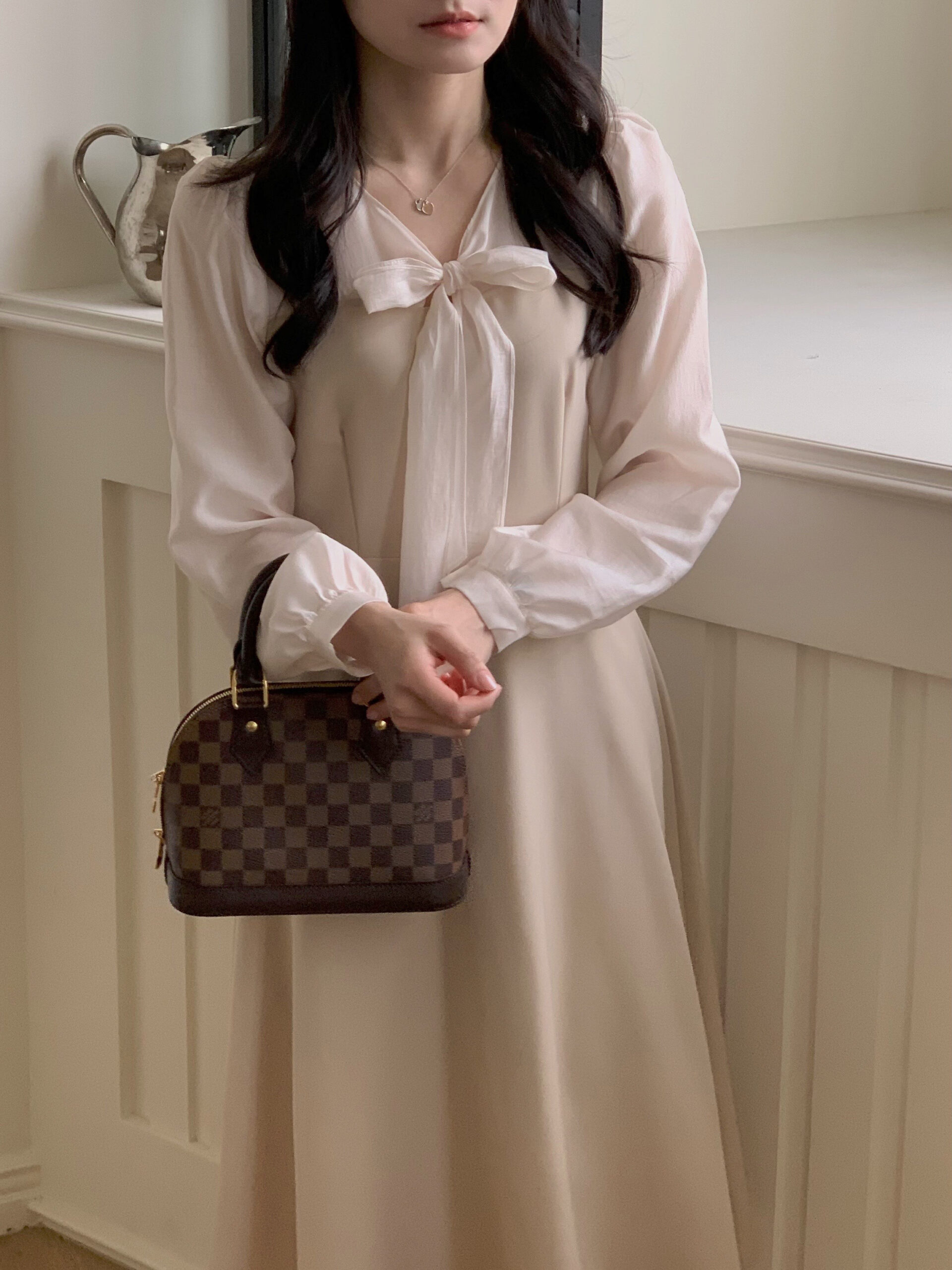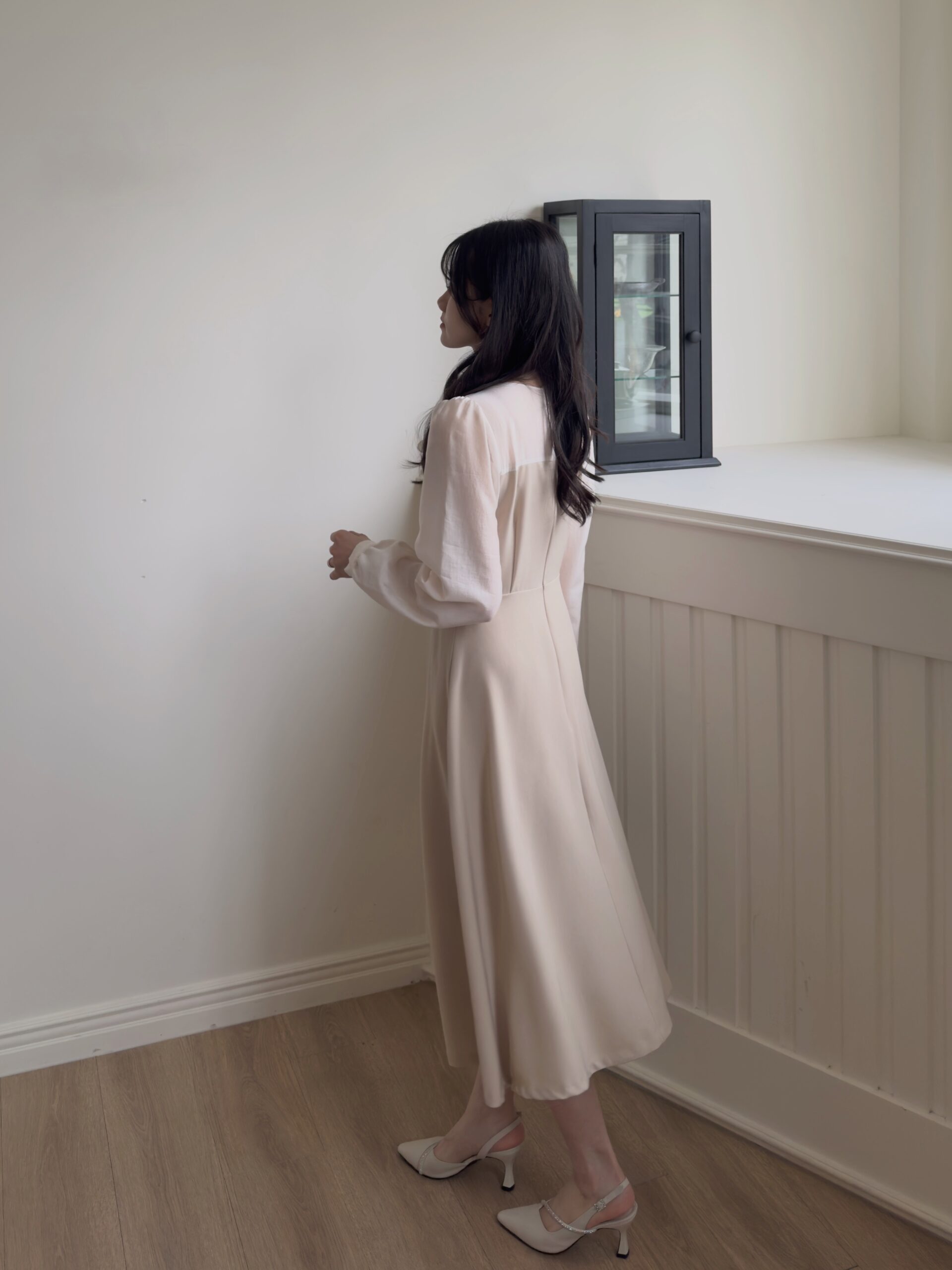 實品和照片一樣美,玫瑰金的布料讓這件洋裝看起來格外溫柔❤️