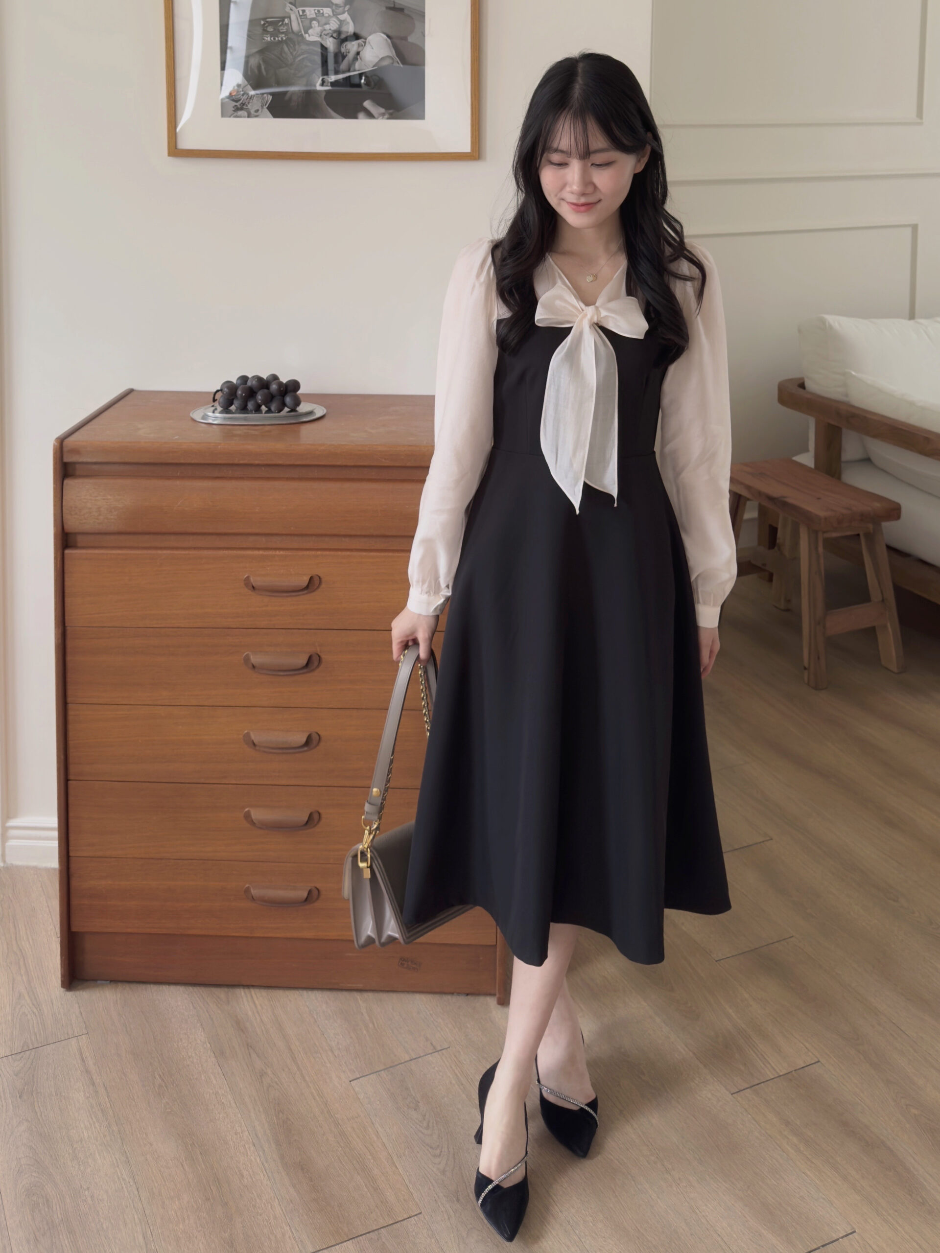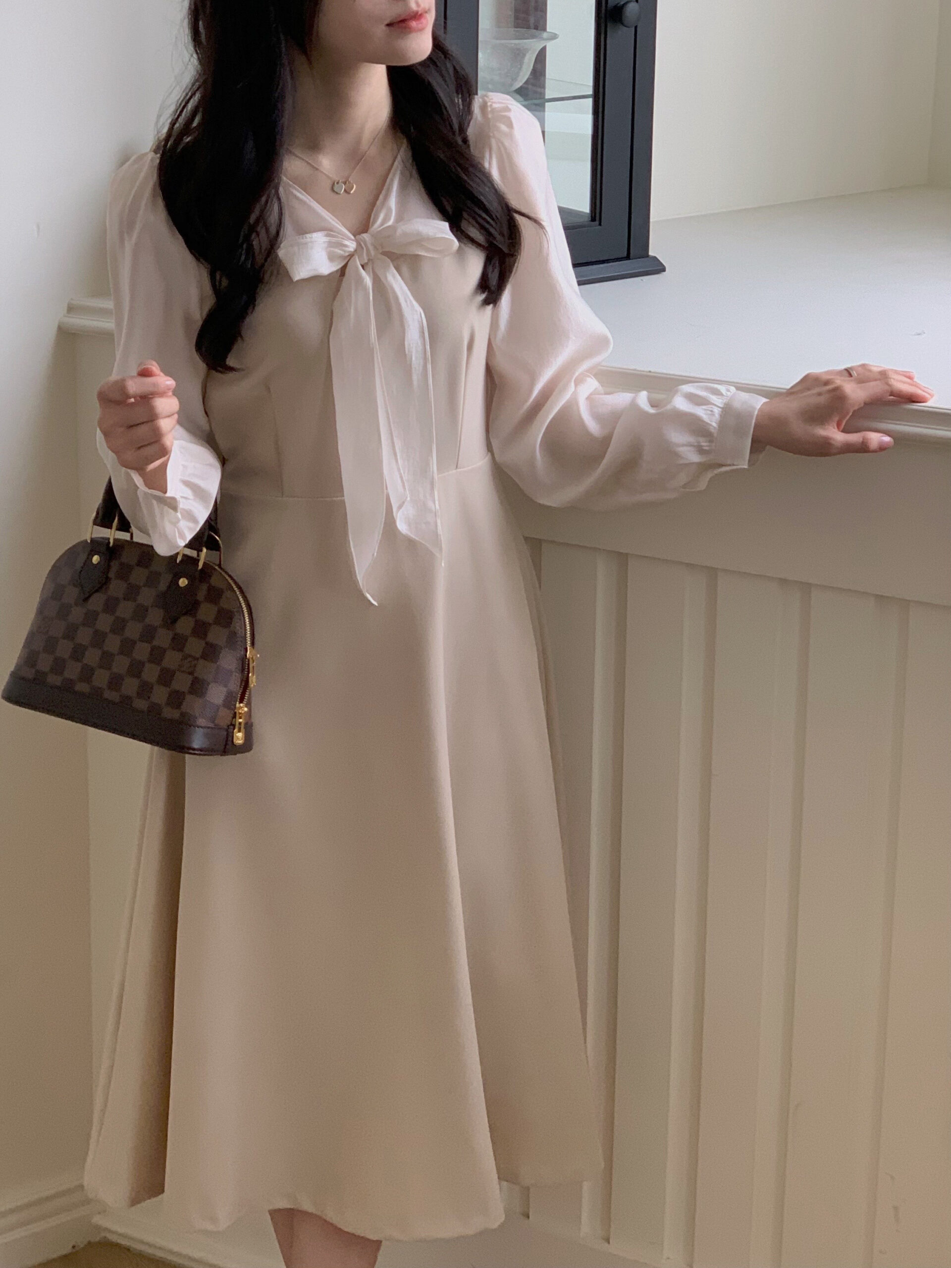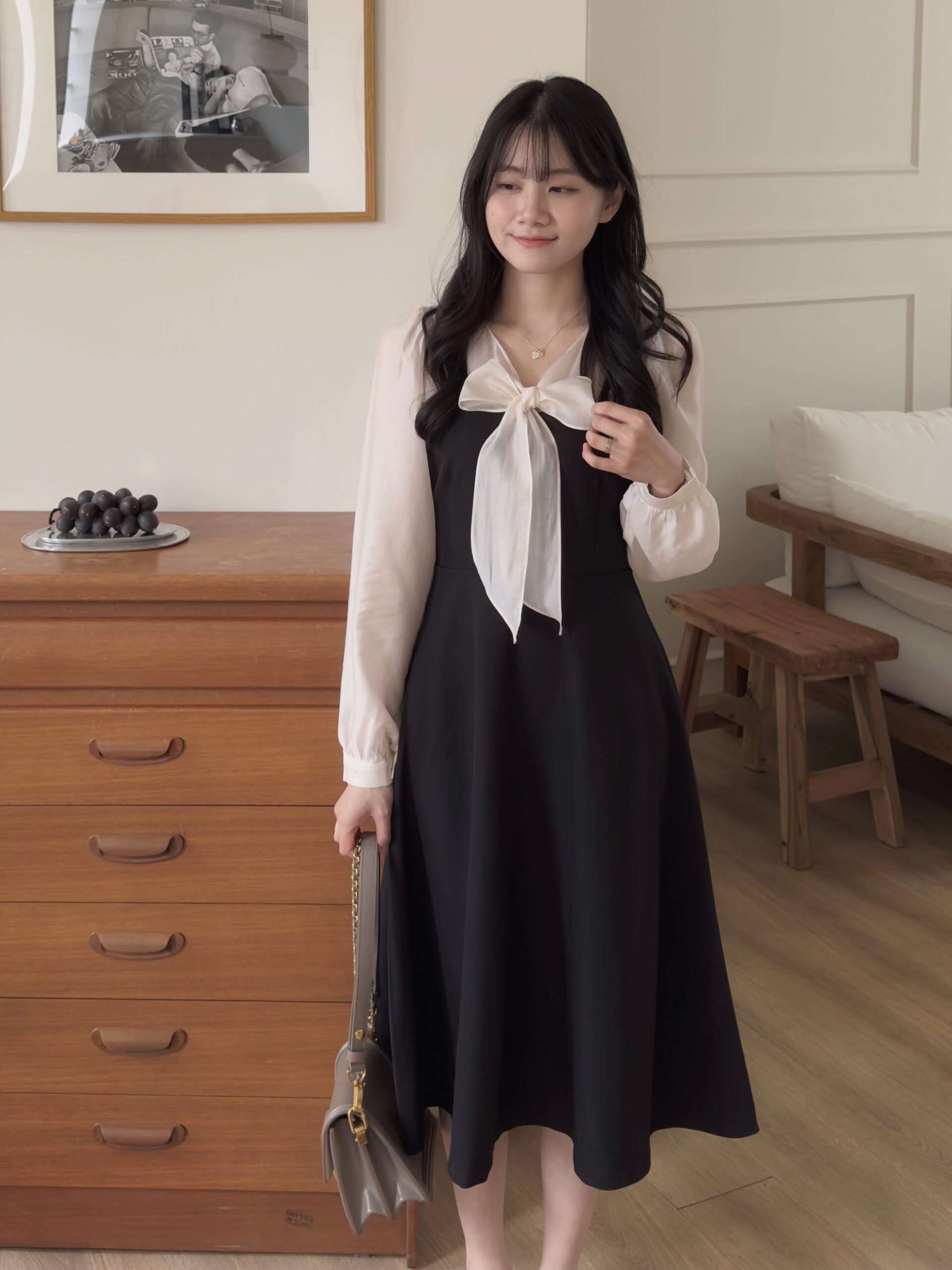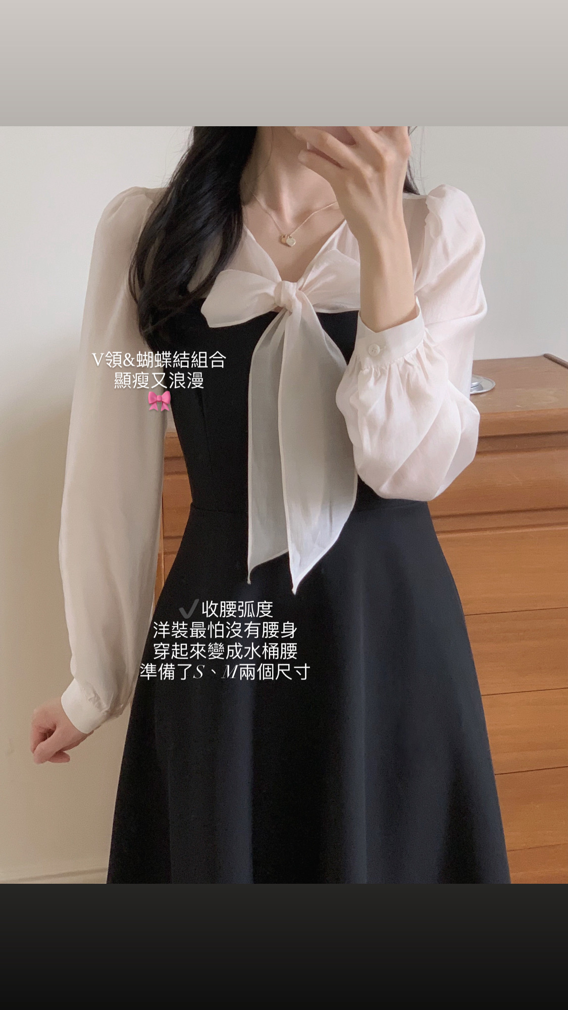 此款洋裝我是根據自己的貼身上衣尺寸去比對此款洋裝的尺寸去拿,貼身上衣尺寸m與此款洋裝的s較相符所以就拿s,結果穿起來就是超合身🥹。