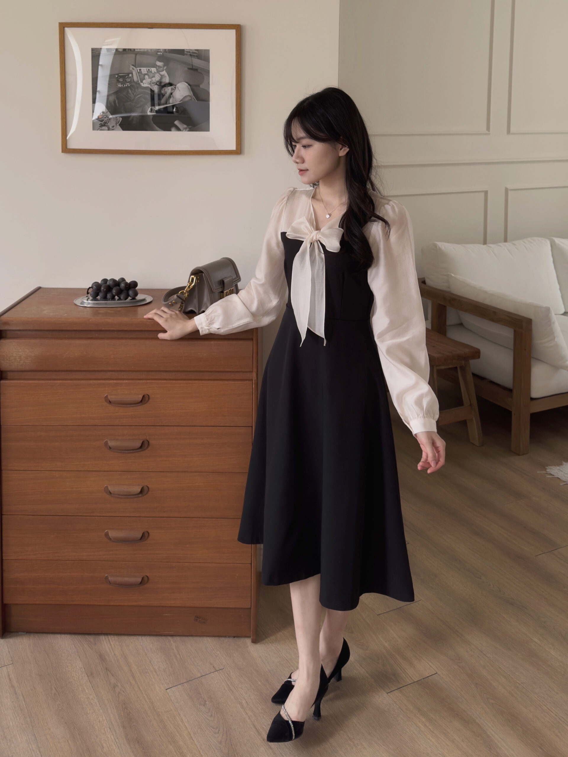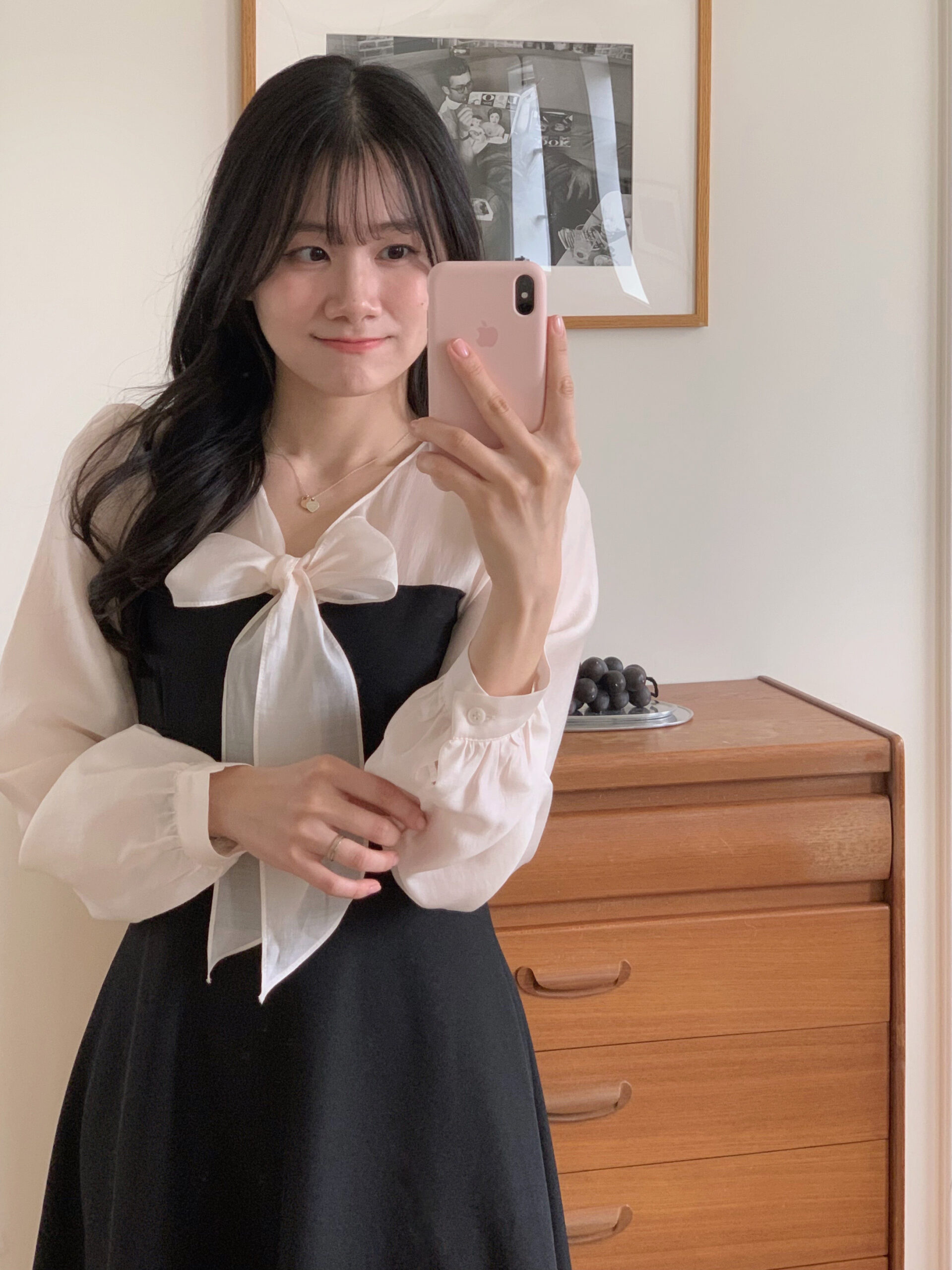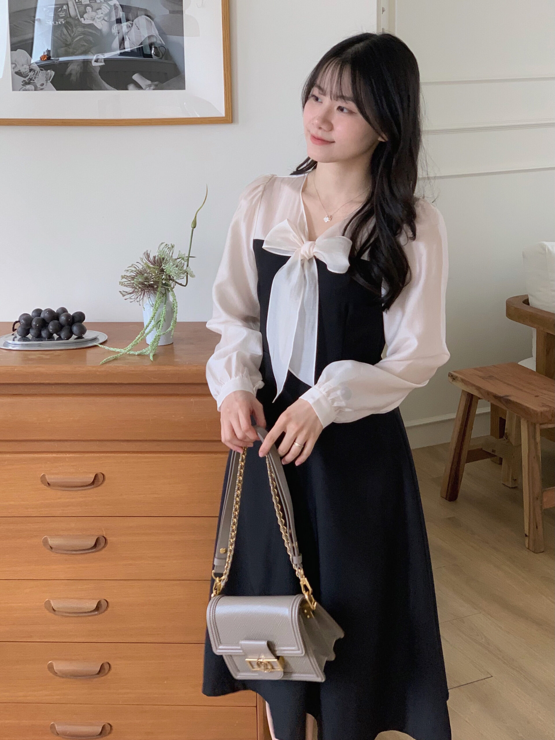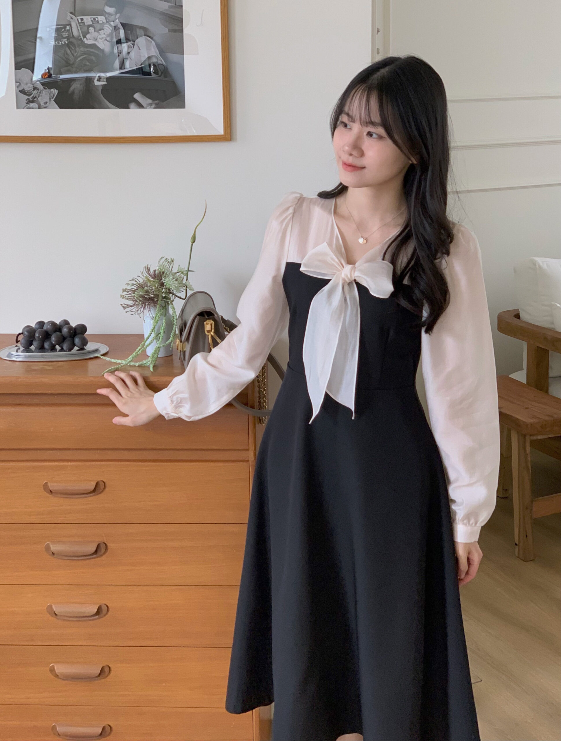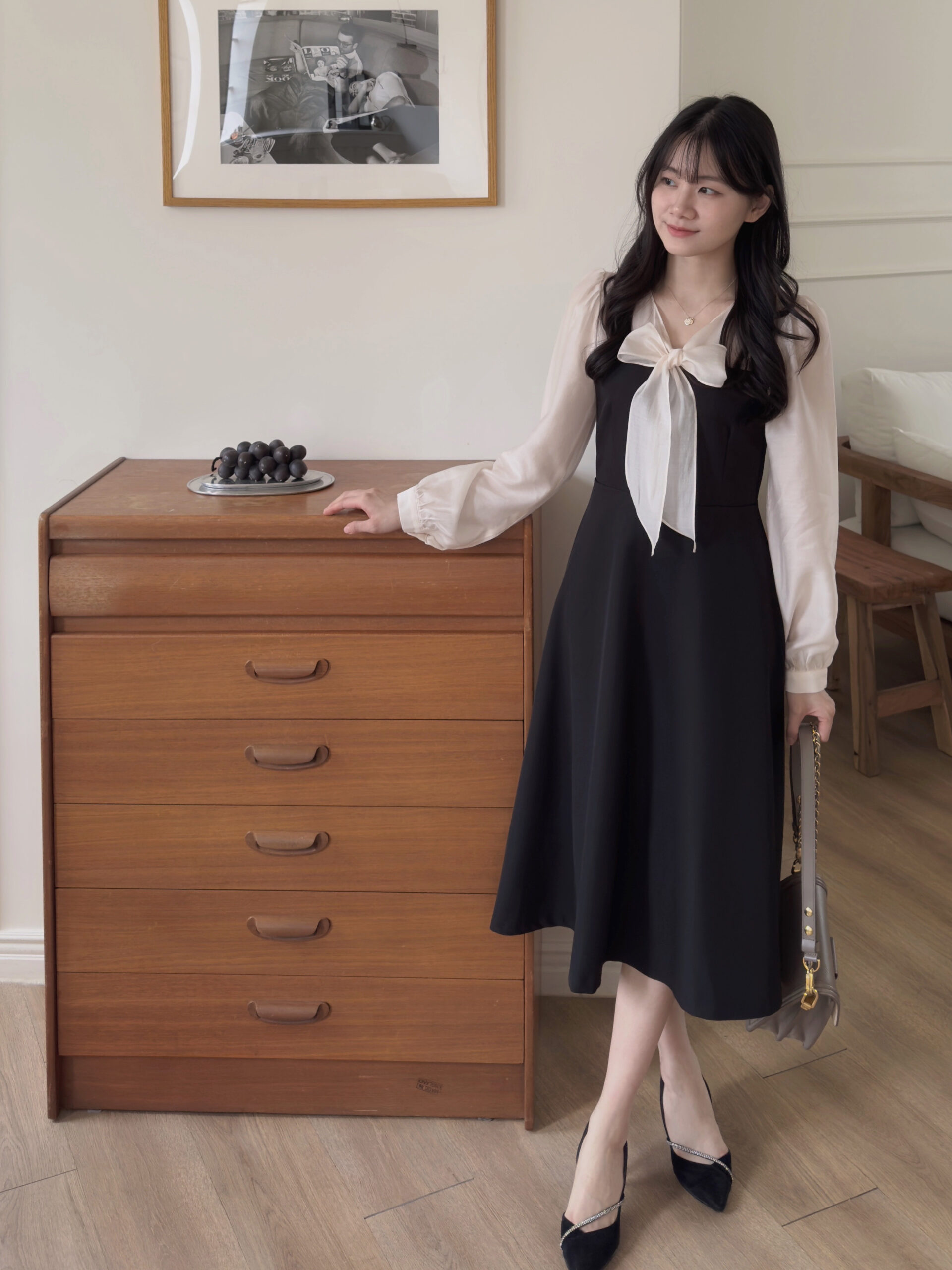 此款洋裝我是根據自己的貼身上衣尺寸去比對此款洋裝的尺寸去拿,貼身上衣尺寸m與此款洋裝的s較相符所以就拿s,結果穿起來就是超合身🥹。