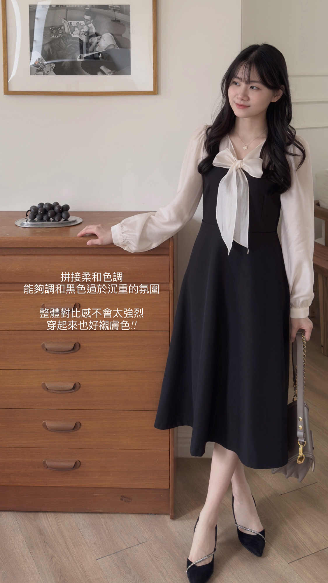 穿起來非常親膚透氣,而且整體非常輕,沒有厚重的感覺,在陽光下感覺黑色裙擺有光澤,版型非常好~