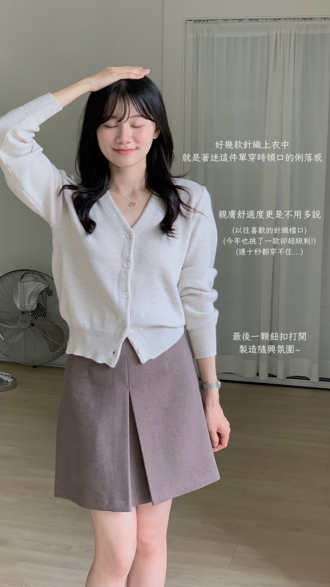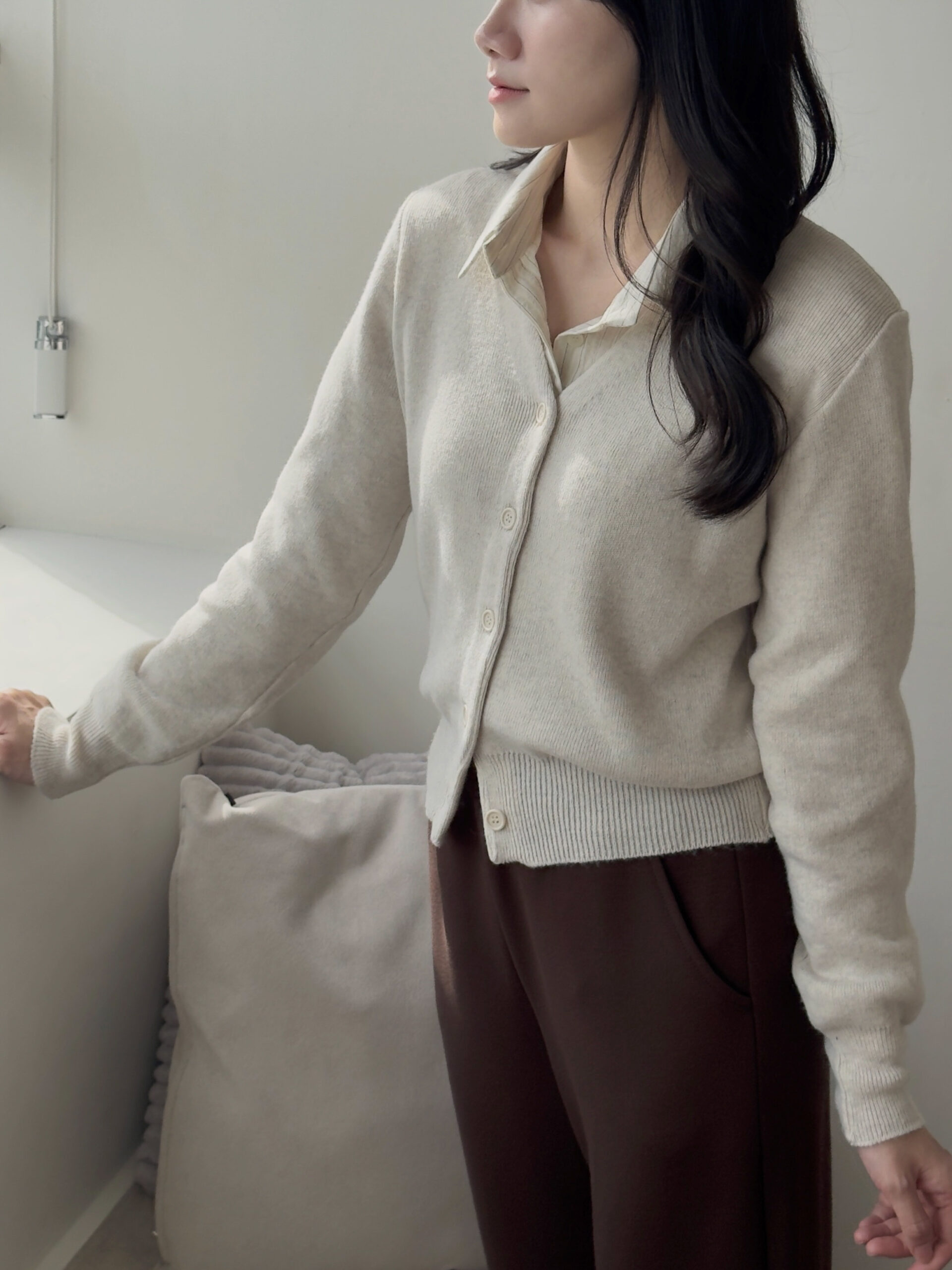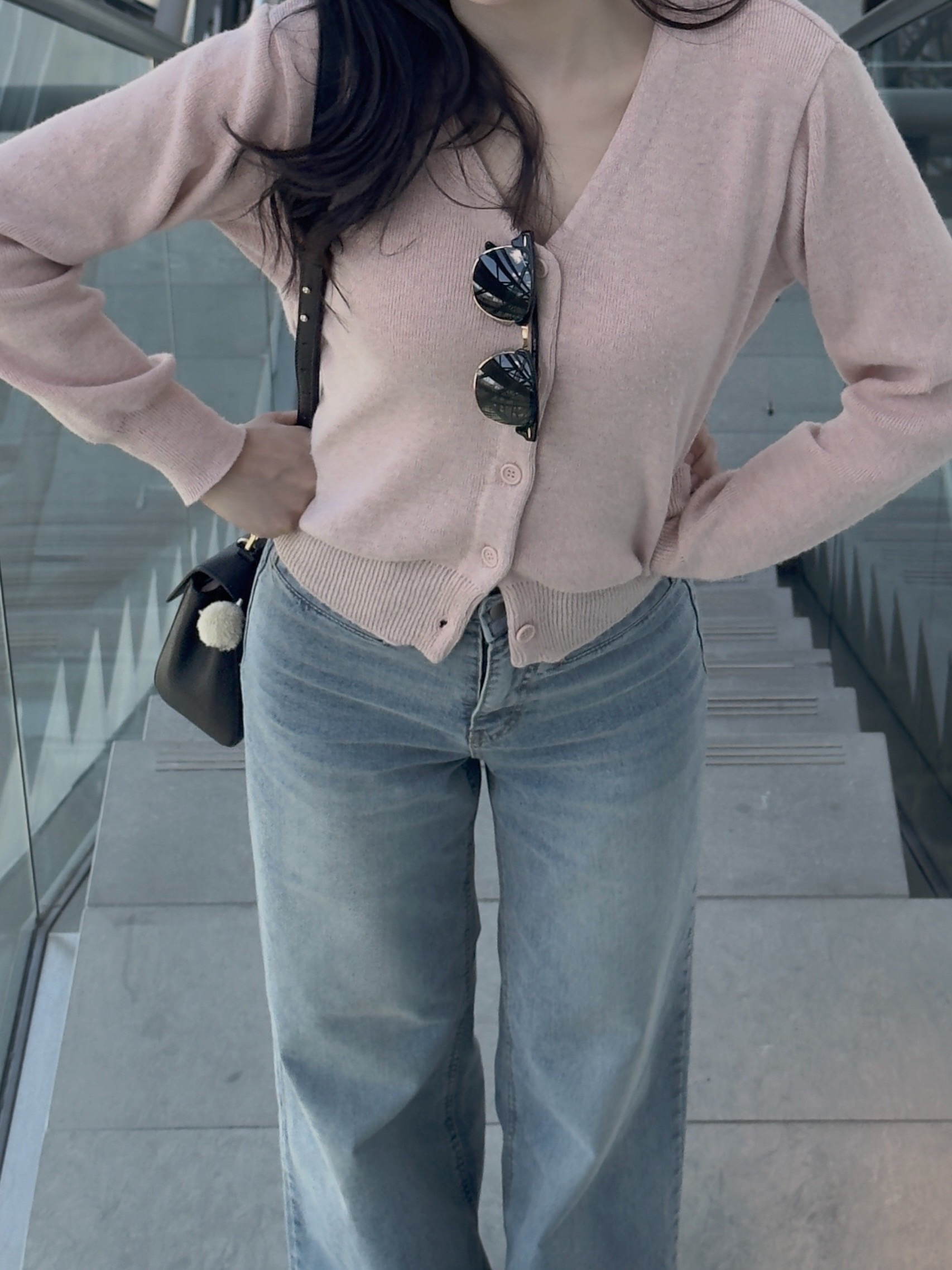 很喜歡這件針織的粉色調,給人很溫柔、很有氣質的感覺,是很耐看的粉色,穿起來也很舒服、觸感很好