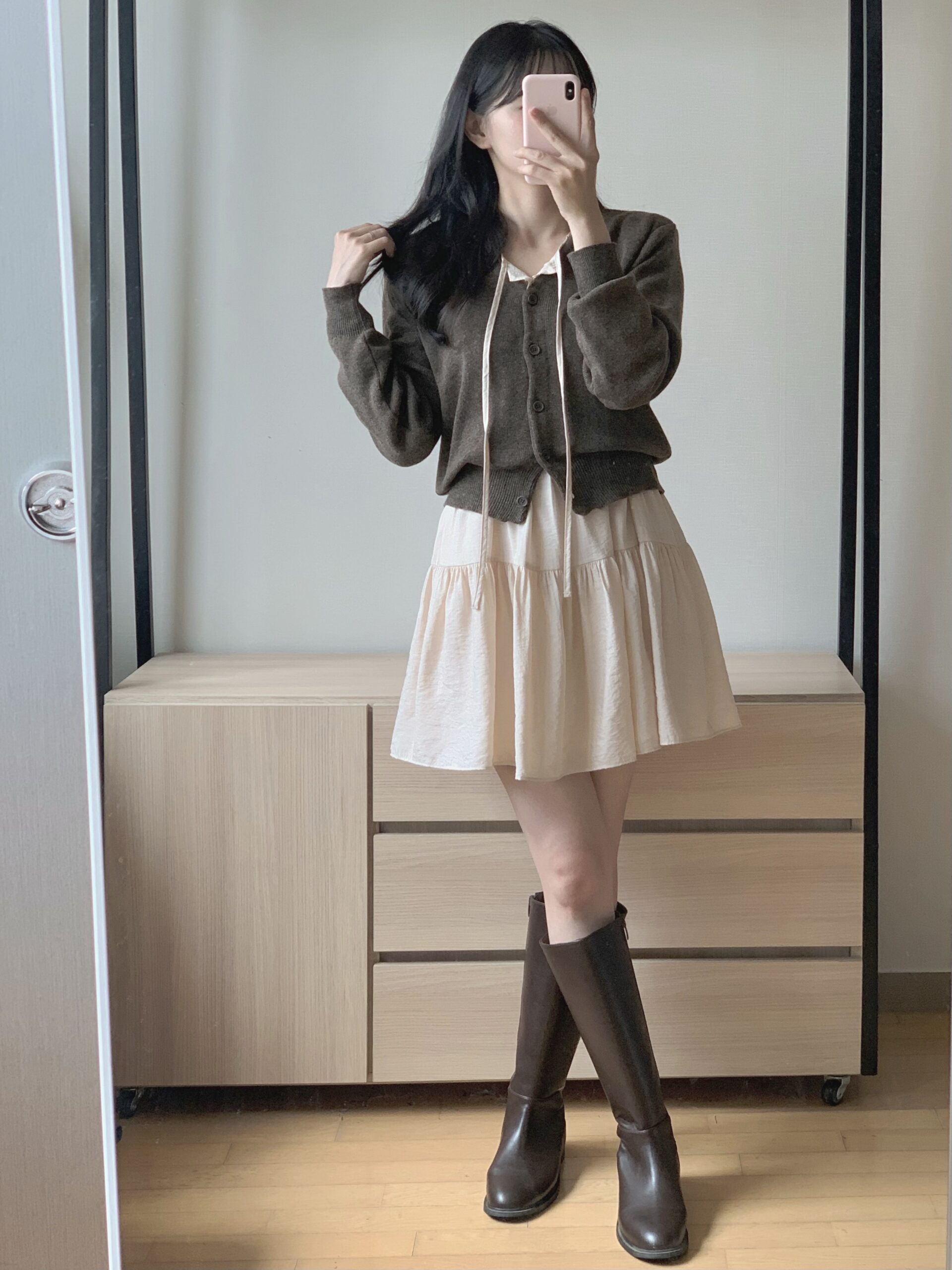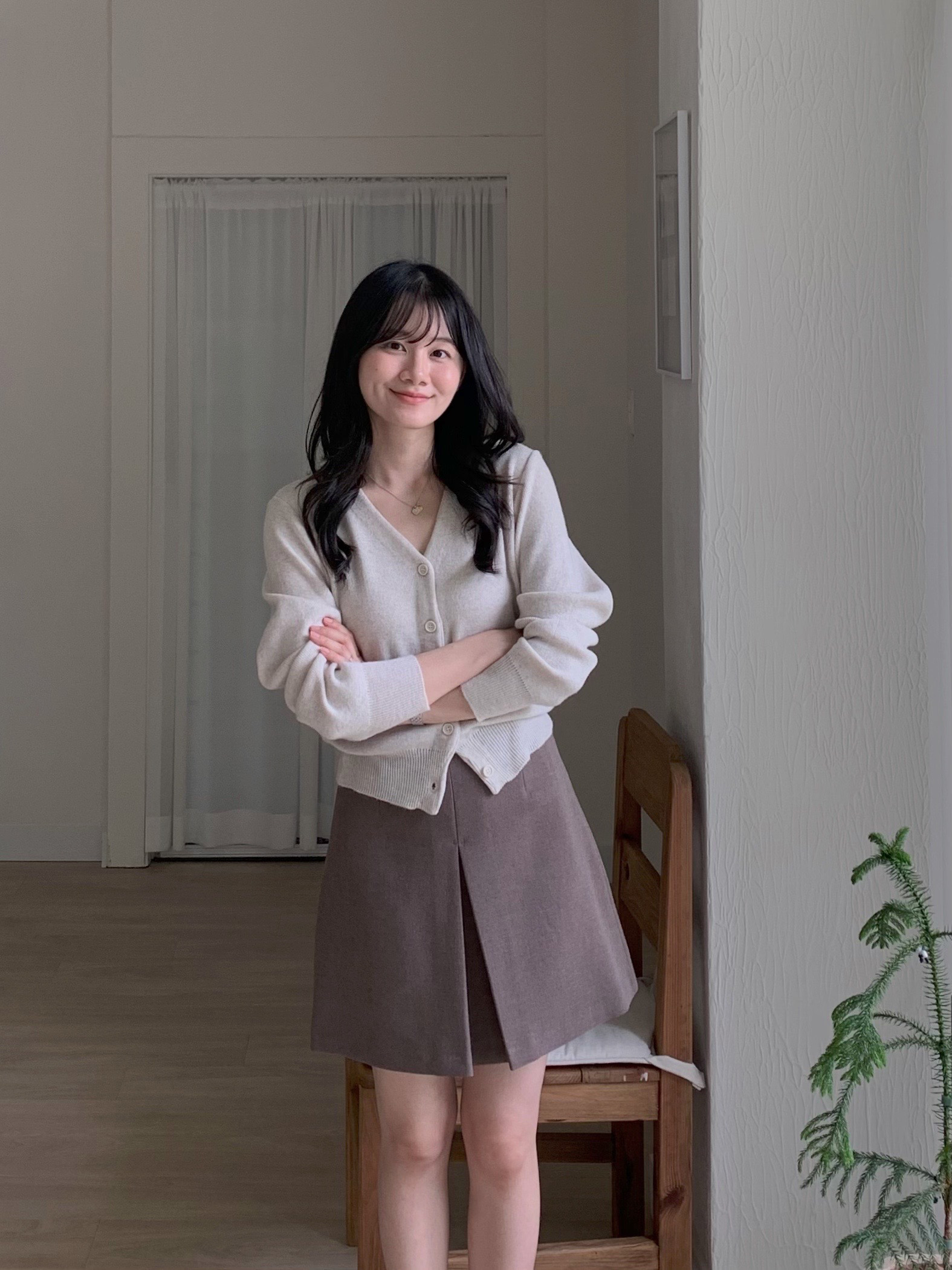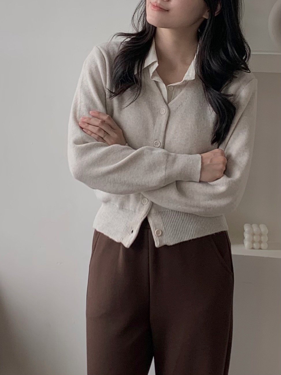 很喜歡這件針織的粉色調,給人很溫柔、很有氣質的感覺,是很耐看的粉色,穿起來也很舒服、觸感很好