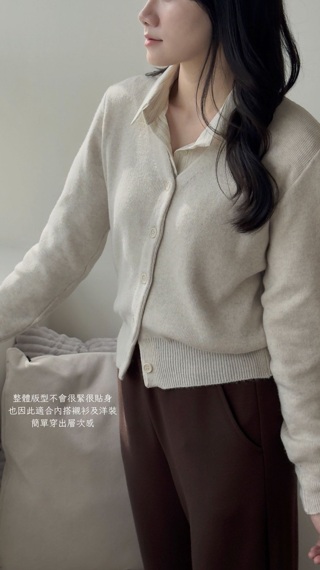 ******ujan@yahoo.com.tw 2025年 10月 16日 俐落V領針織上衣 - 燕麥 - 顏色 : 燕麥