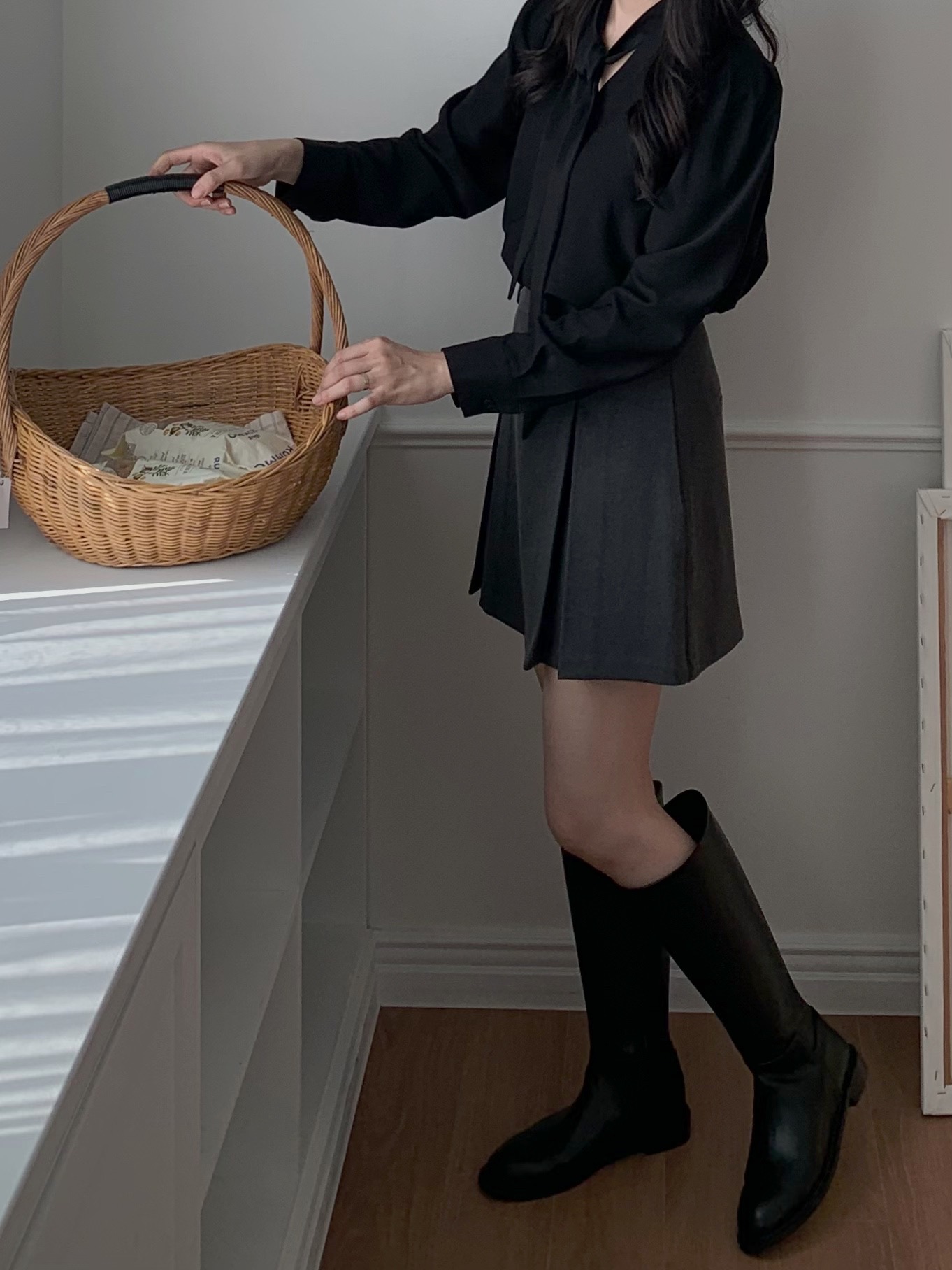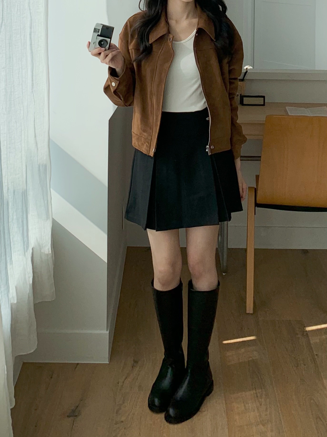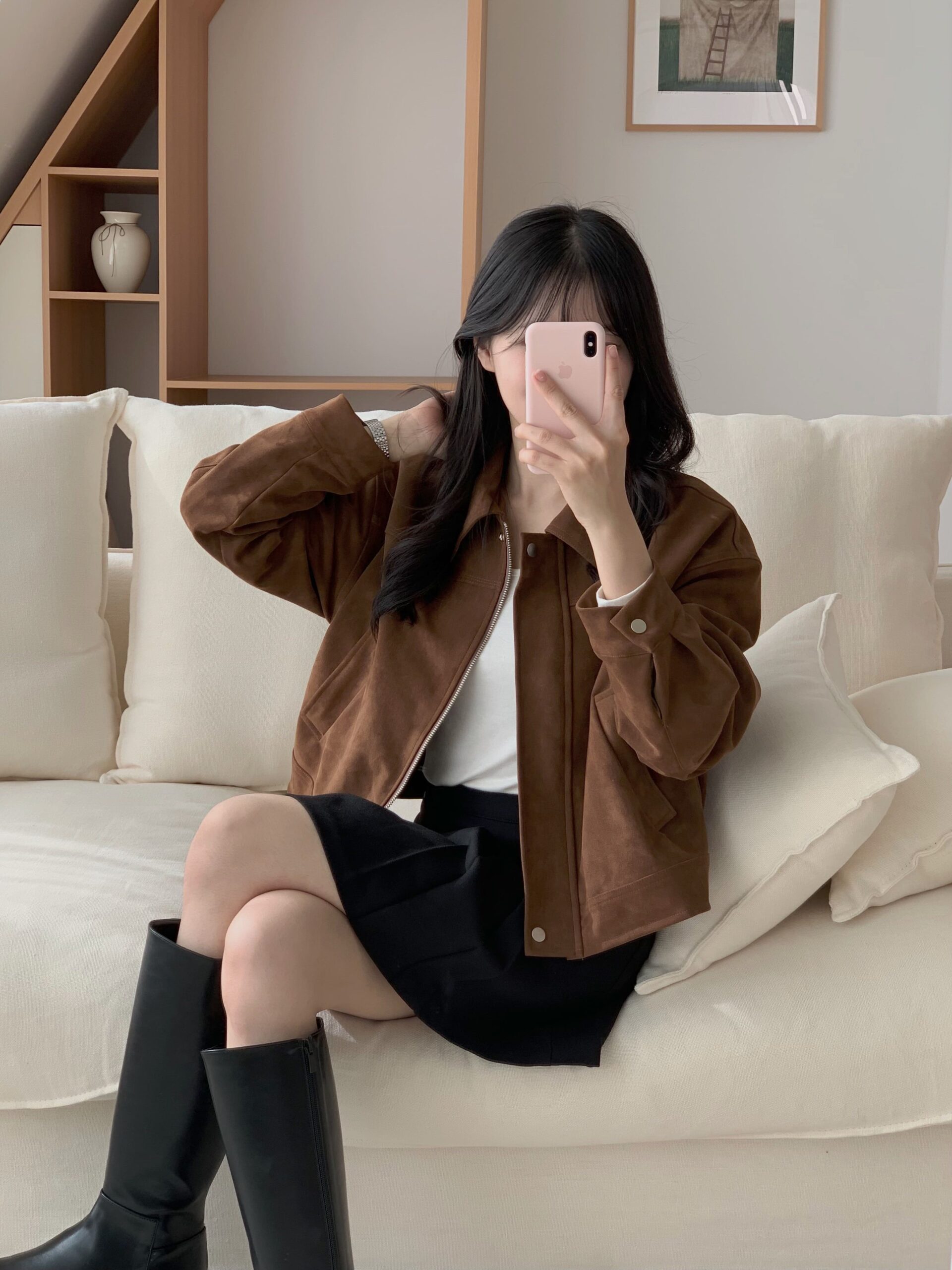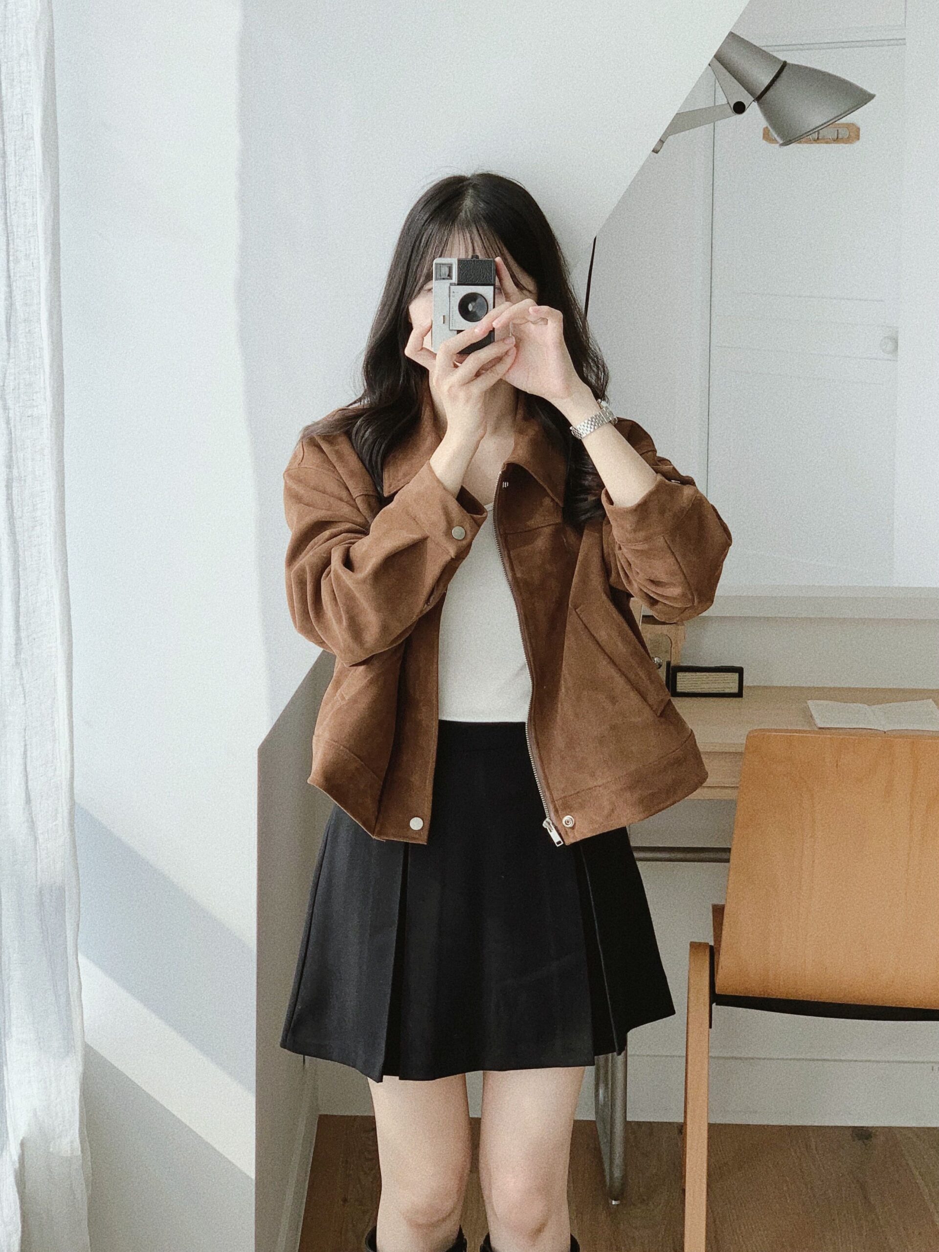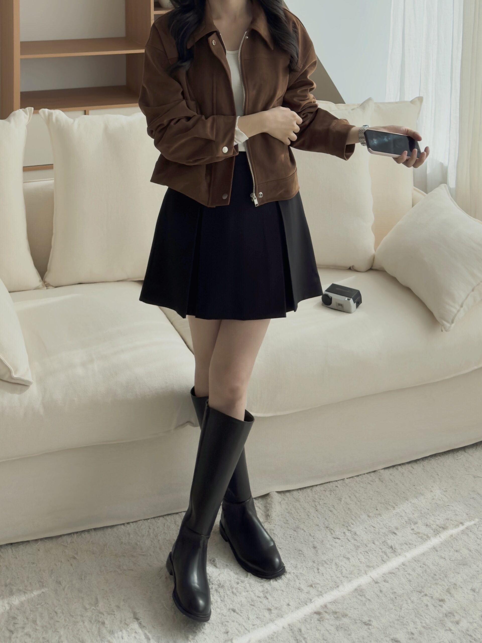 包色購買🙂↕️❤️,長度很剛好,不會長到顯腿短,又可以把大腿根部的肉肉完美遮住,彎腰也不用怕太短,我最喜歡上面的小牌子😍,可以增添一點亮感