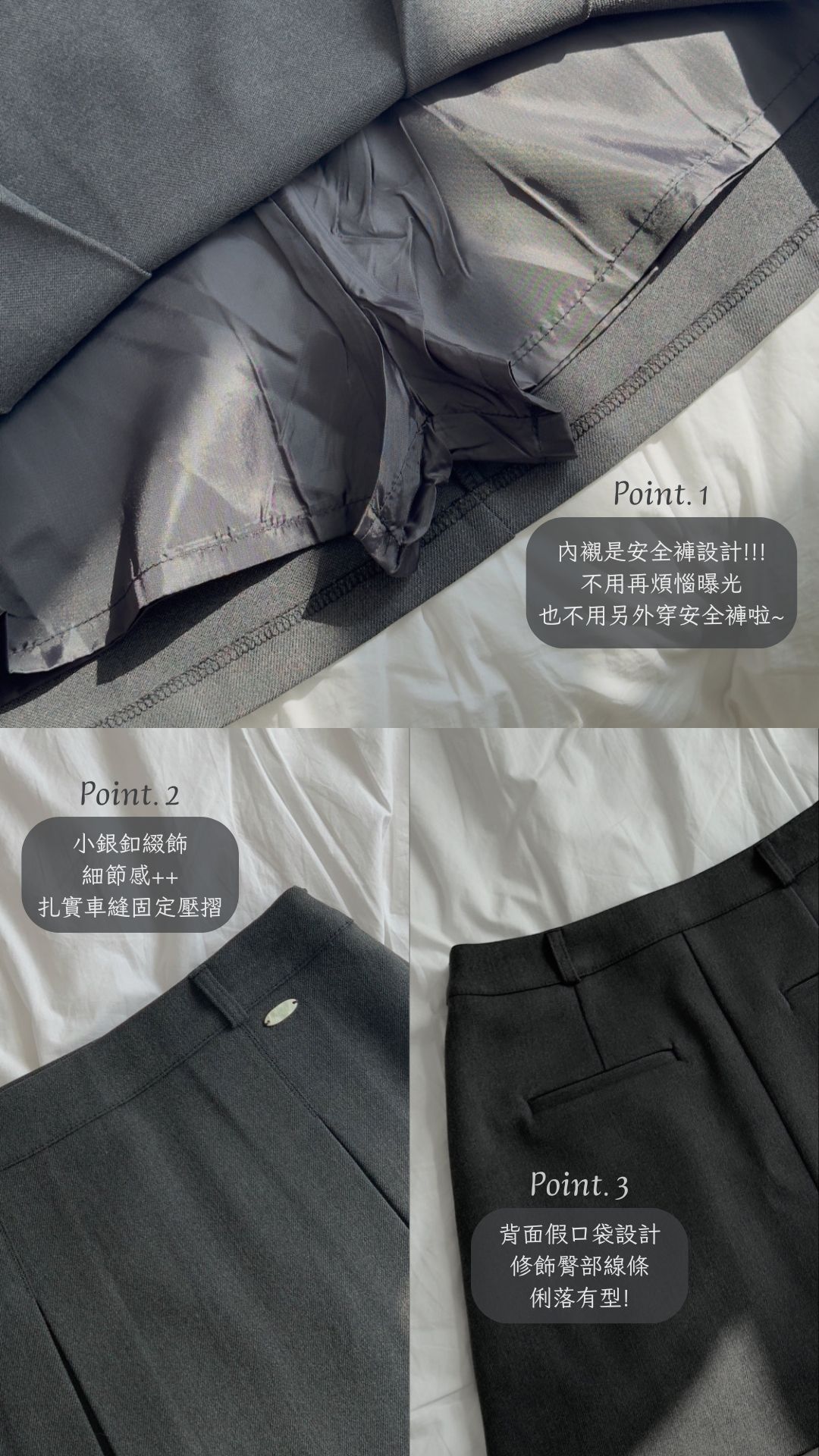 內襯安全褲設計,站立或是坐下都能更加安心😘