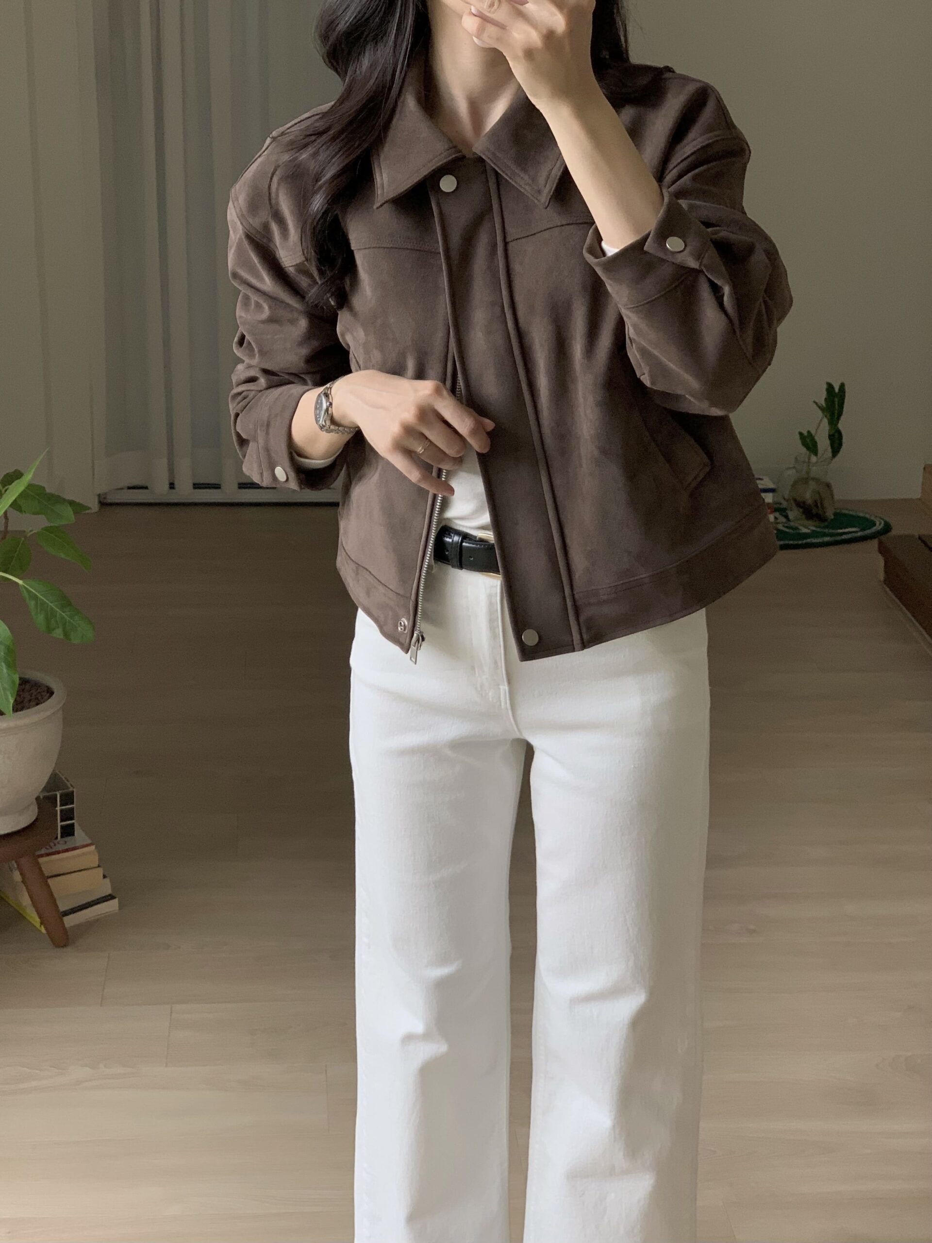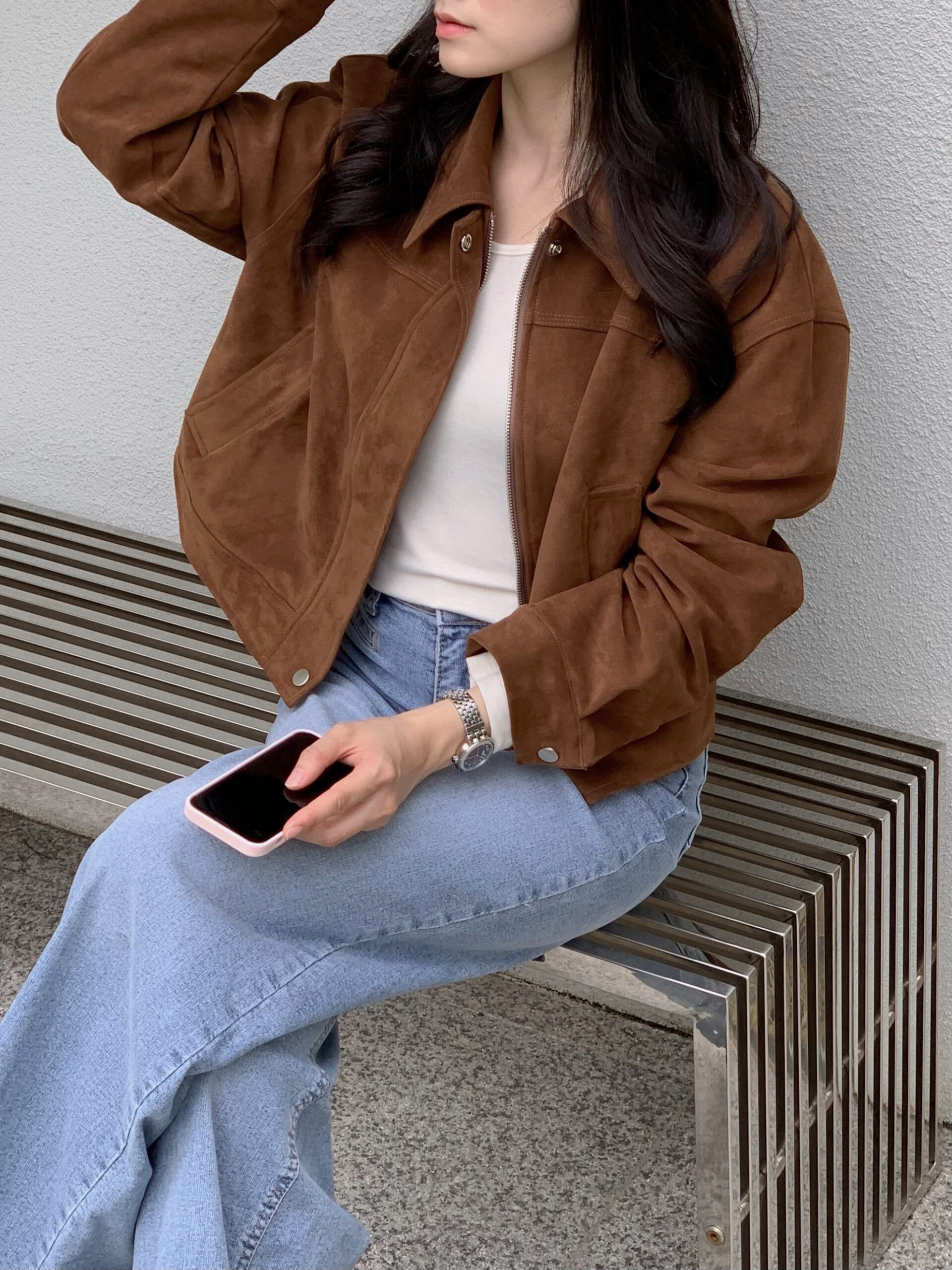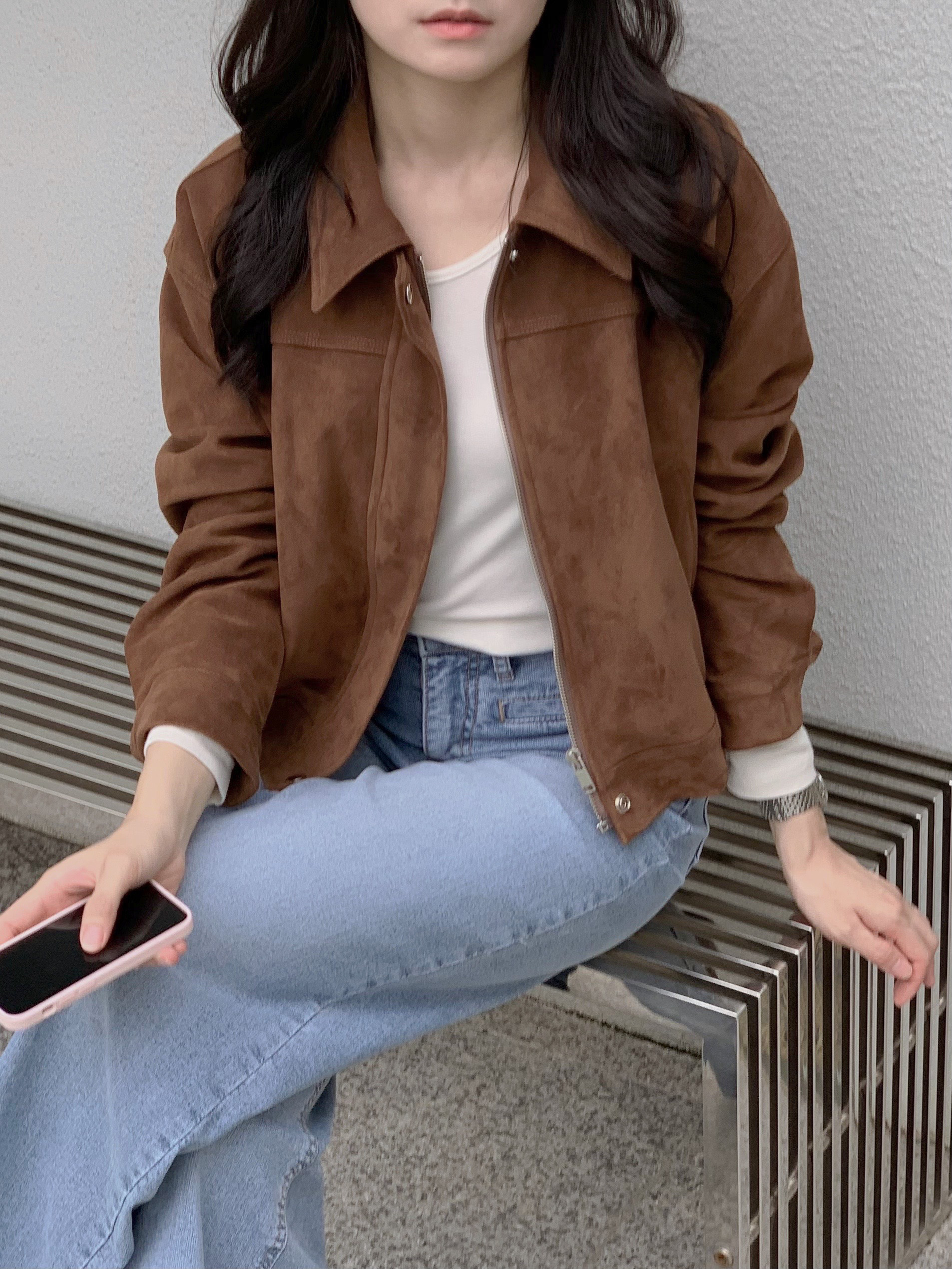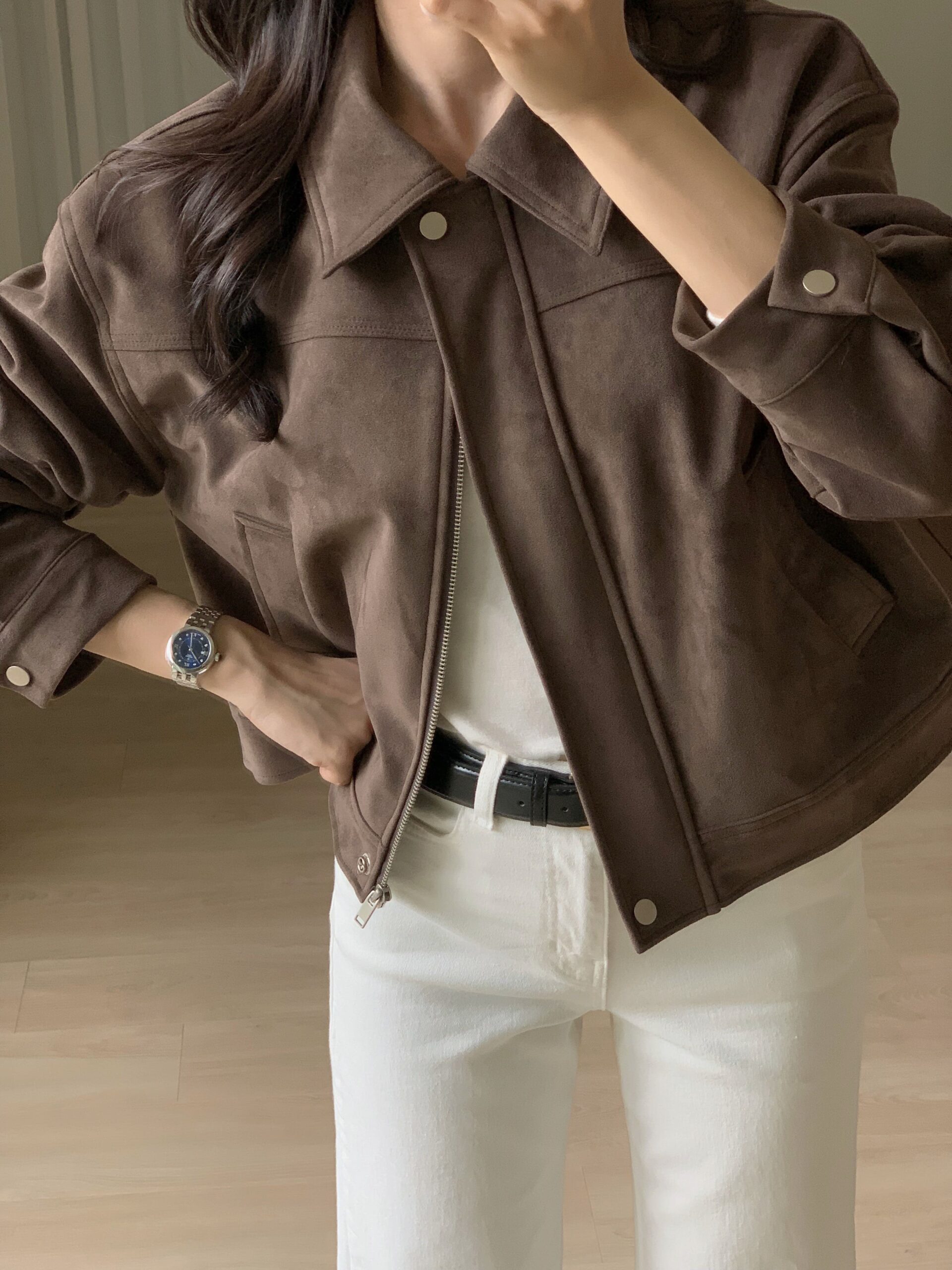 ******1@gmail.com 俐落剪裁麂皮絨夾克 - 布朗尼 - 顏色 : 布朗尼