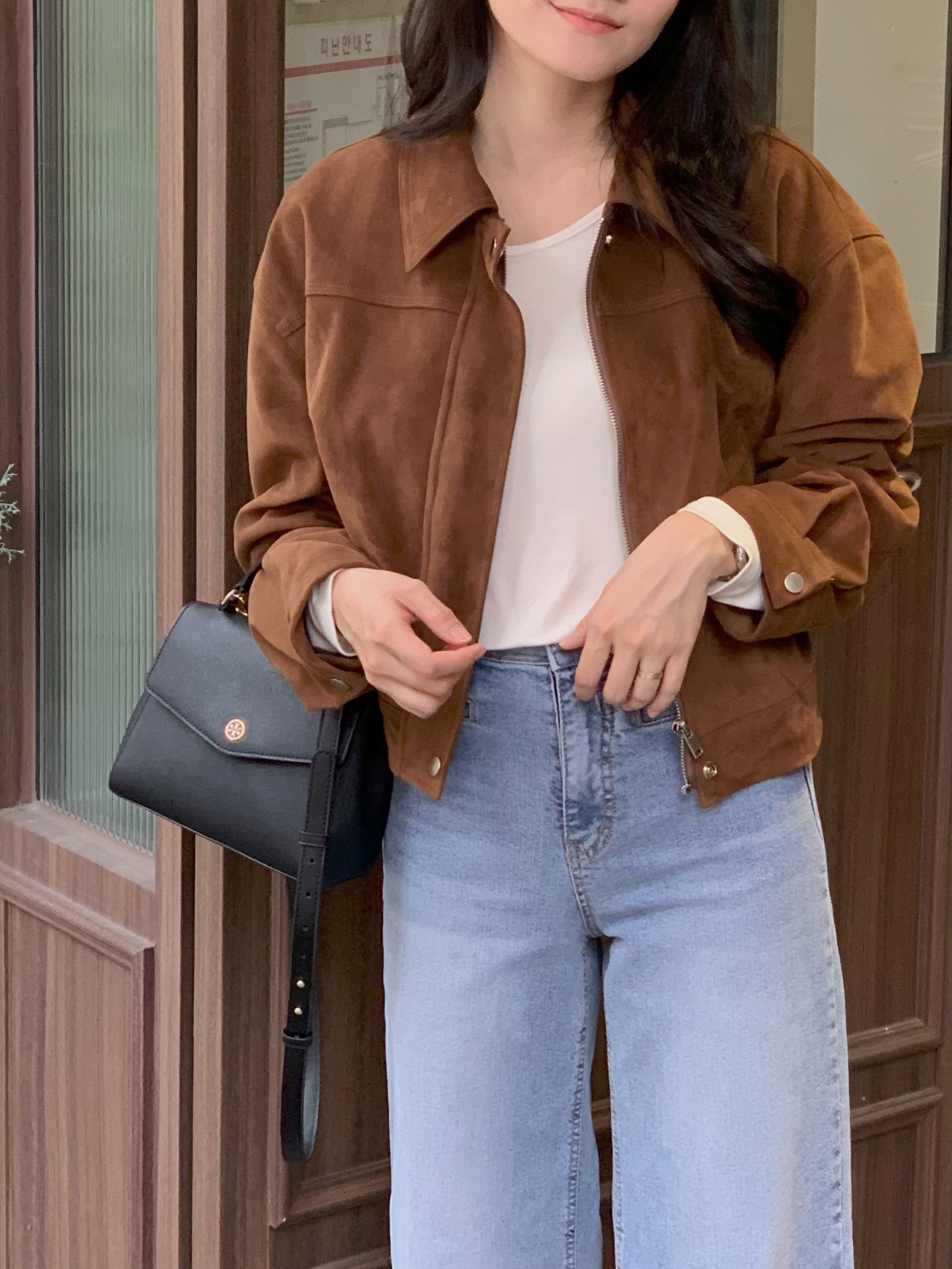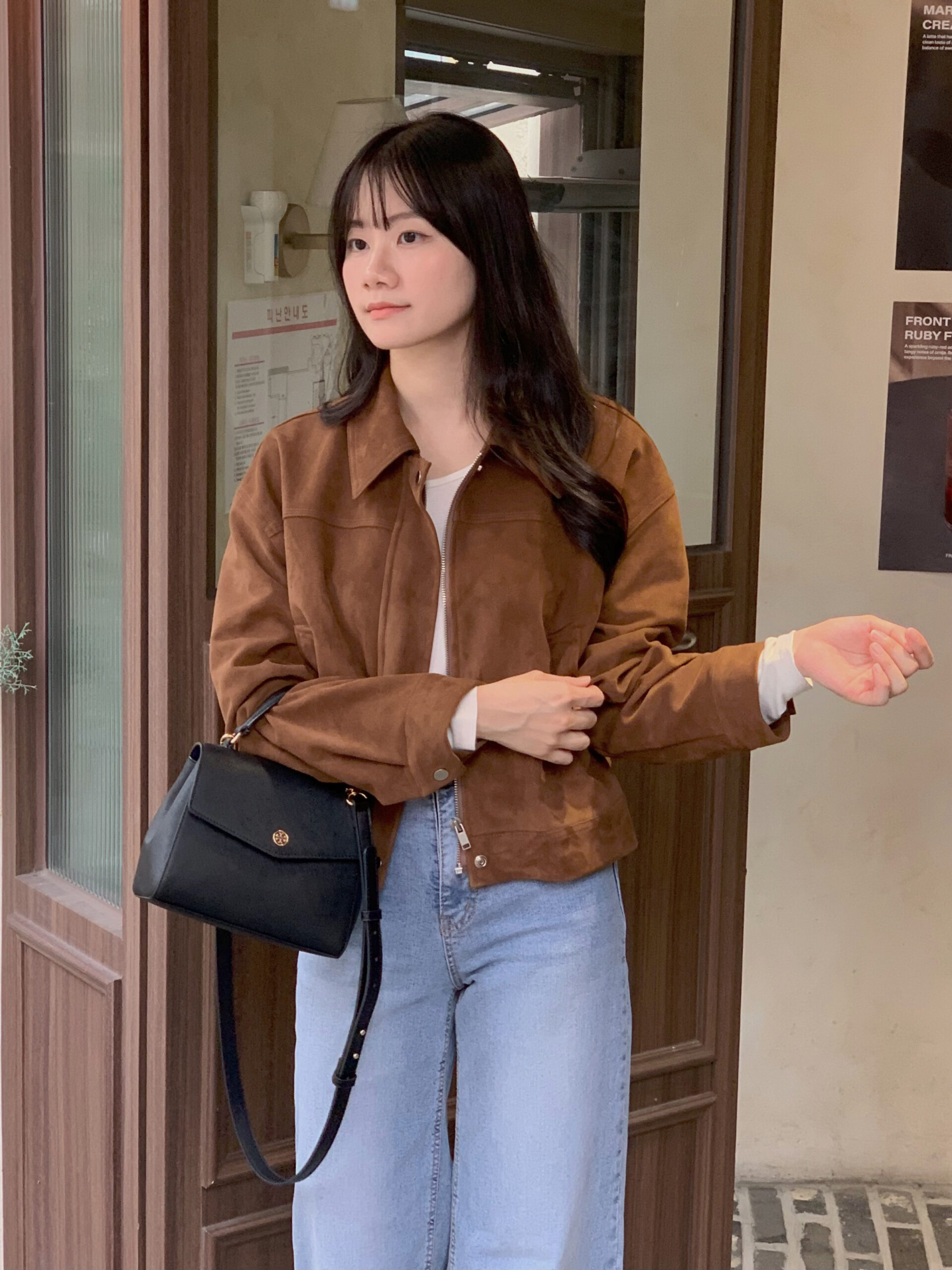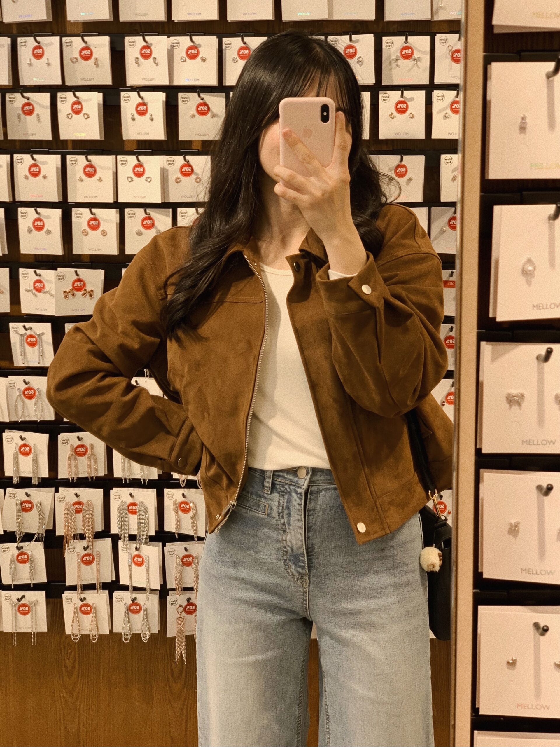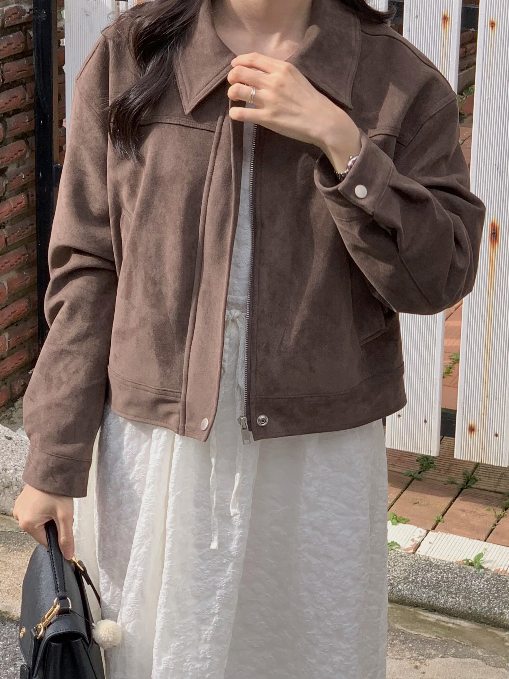 ******1@gmail.com 俐落剪裁麂皮絨夾克 - 布朗尼 - 顏色 : 布朗尼
