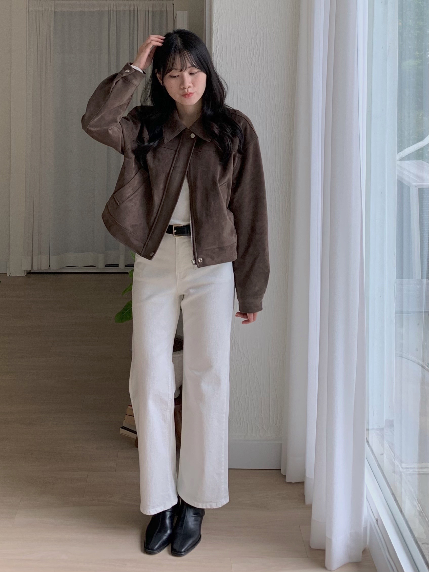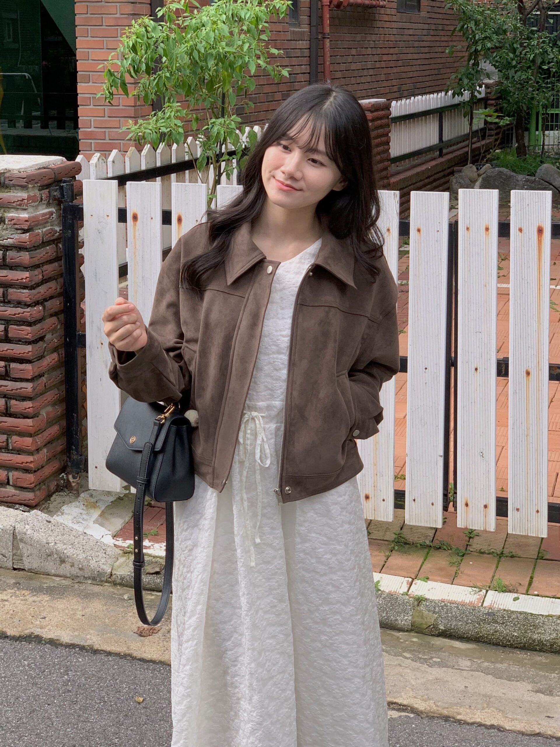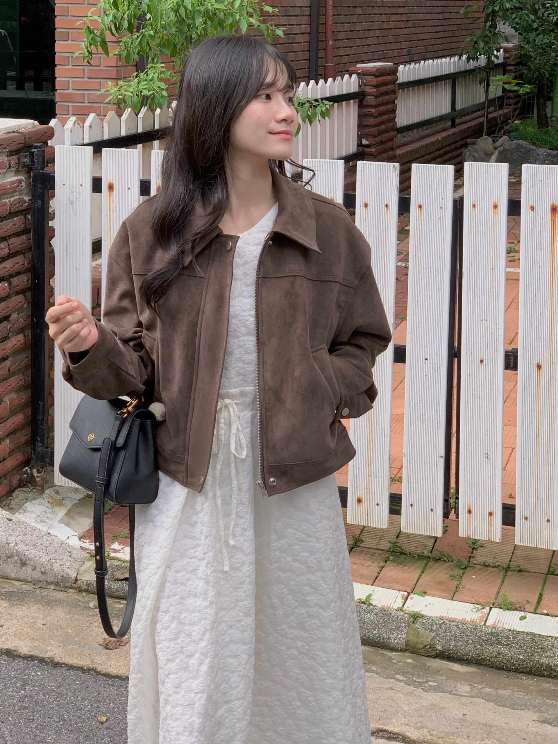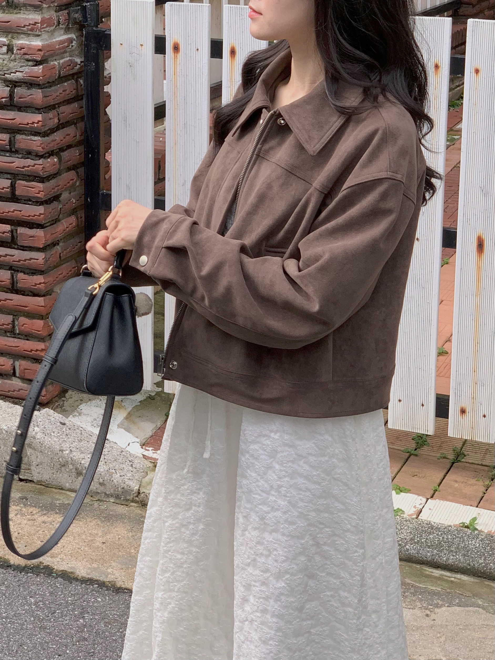 ******1@gmail.com 俐落剪裁麂皮絨夾克 - 布朗尼 - 顏色 : 布朗尼