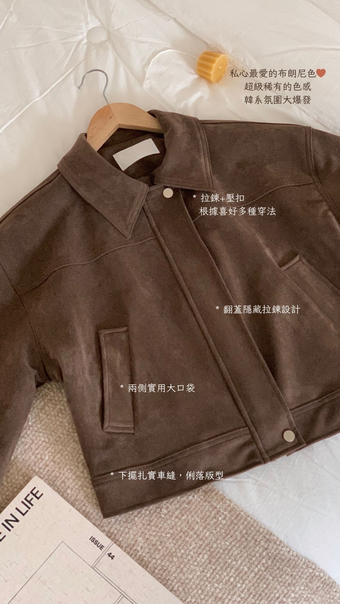 ******0426joyce@gmail.com 俐落剪裁麂皮絨夾克 - 布朗尼 - 顏色 : 布朗尼