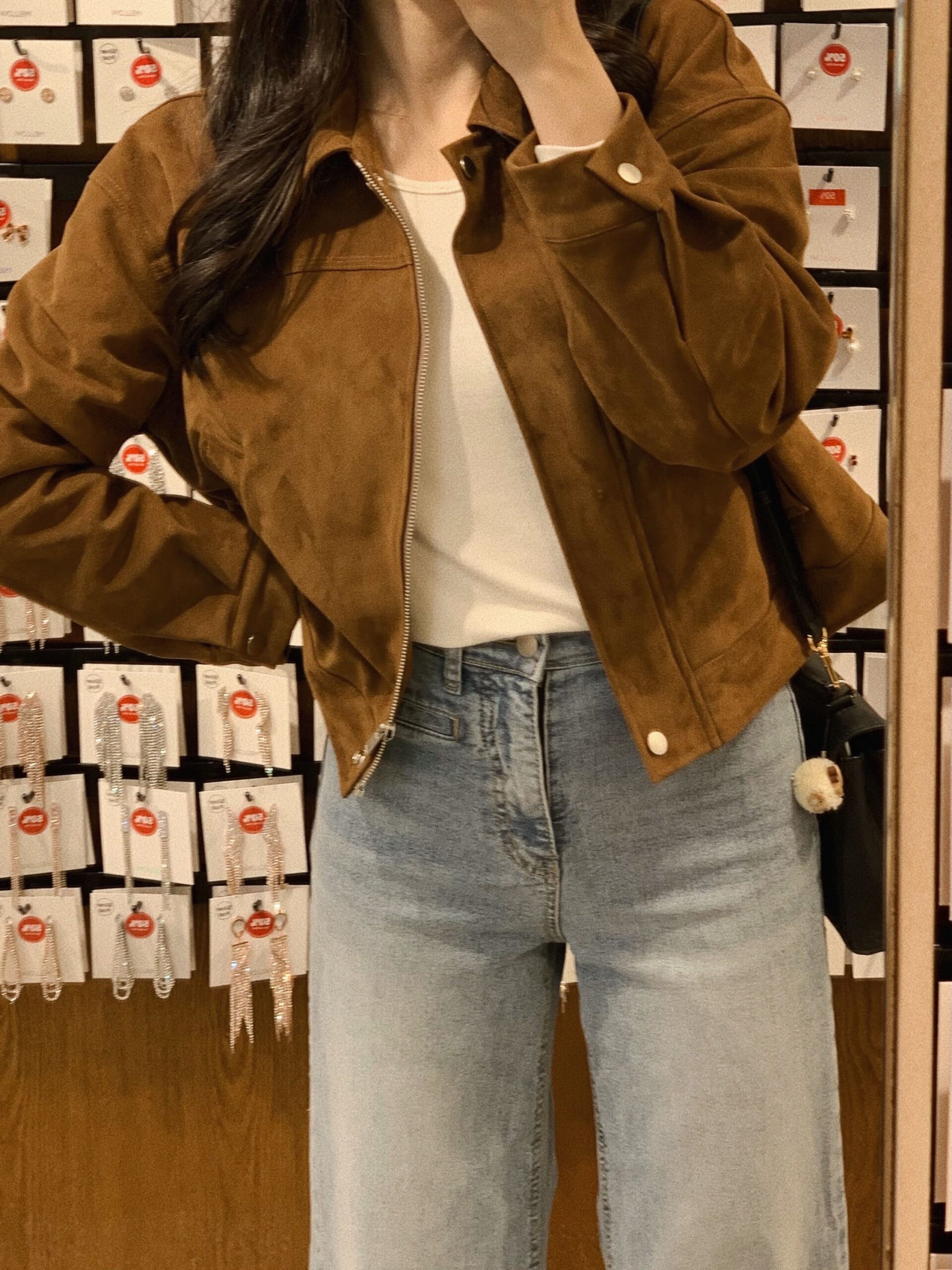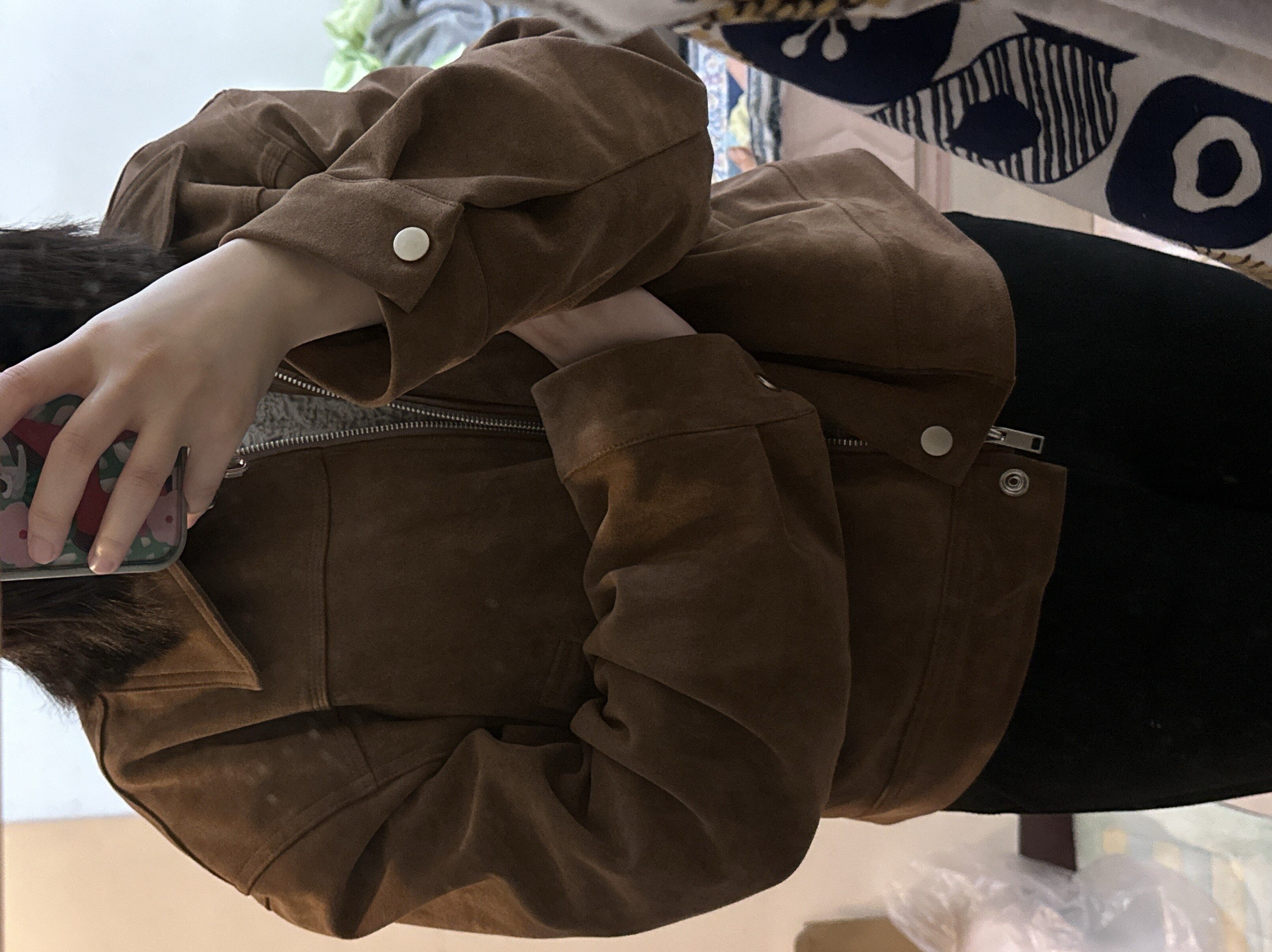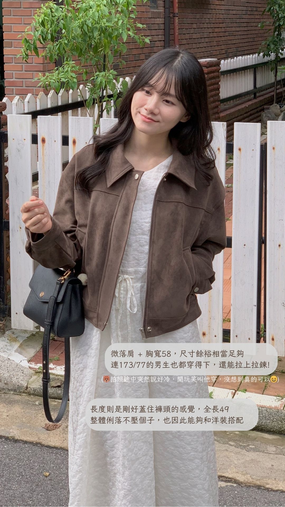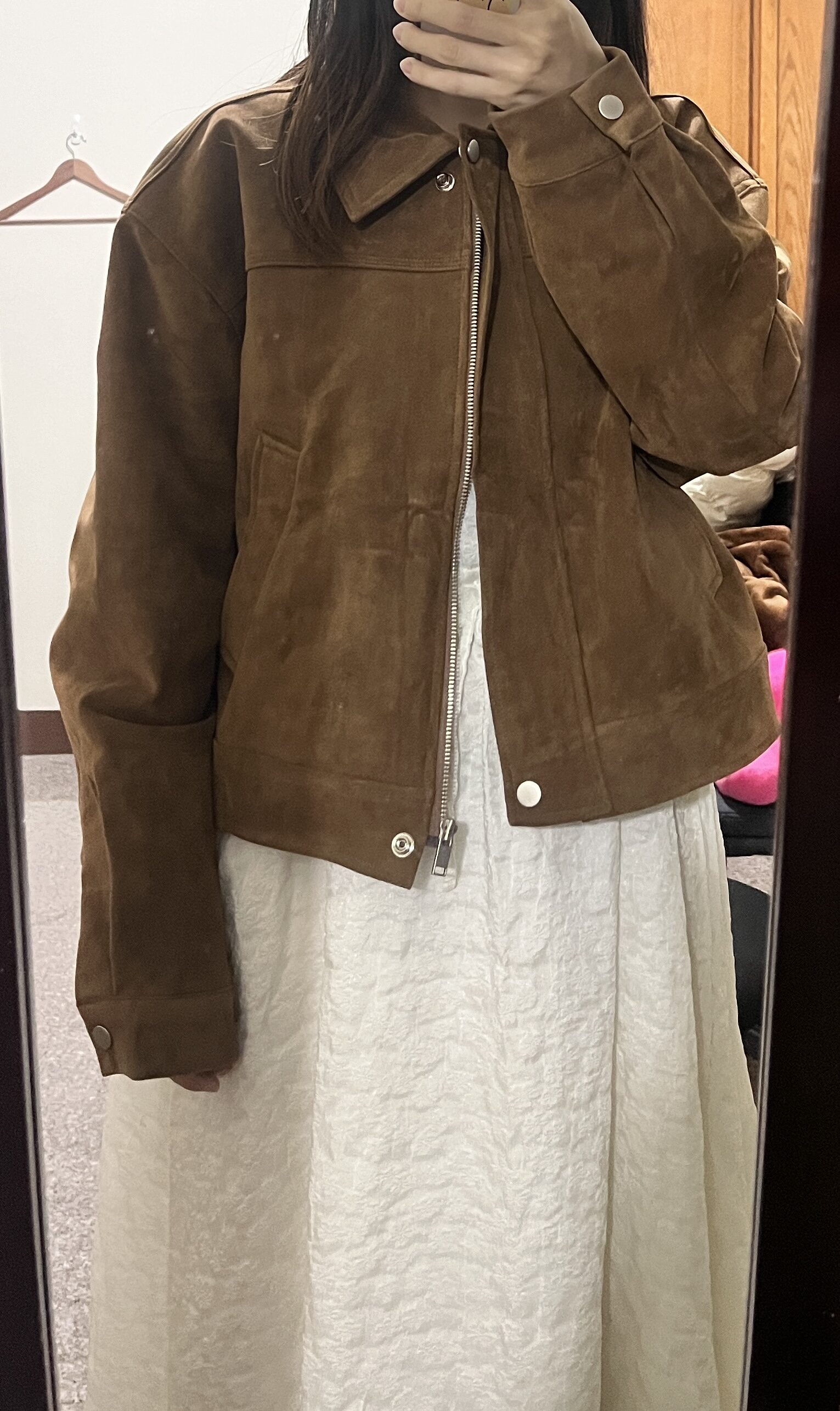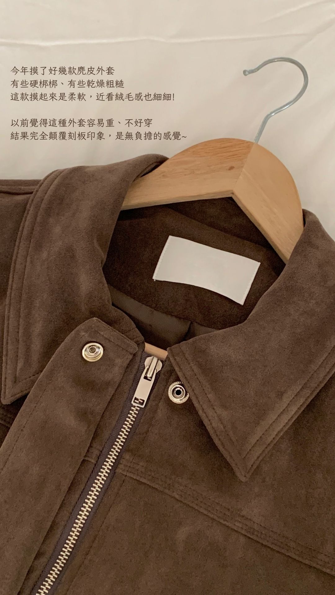 第一次買麂皮絨外套,是拉鍊和鈕扣都有的設計,摸起來舒服,試穿時不厚重,顏色很有質感,期待後續穿的感覺☺️