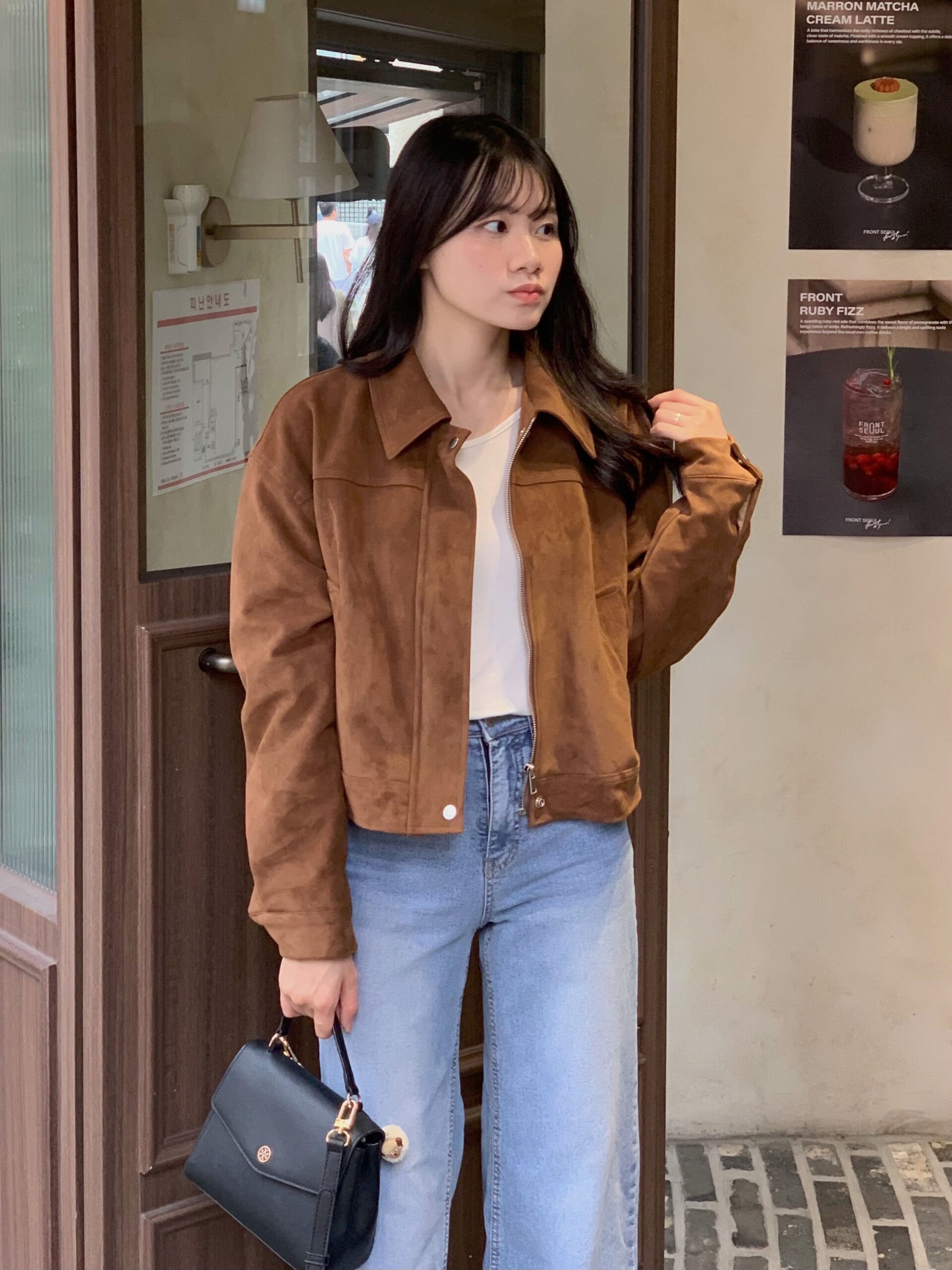 ******13101@gmail.com 俐落剪裁麂皮絨夾克 - 布朗尼 - 顏色 : 布朗尼