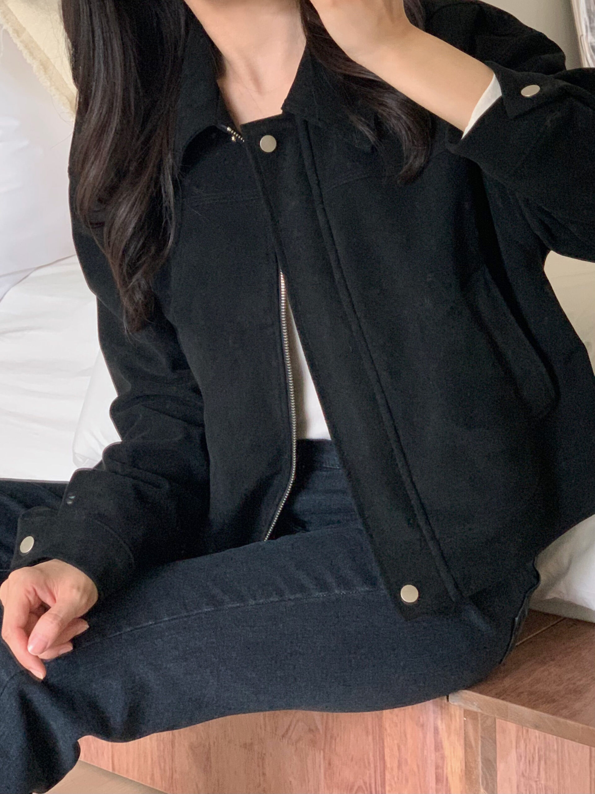 ******er1347@gmail.com 俐落剪裁麂皮絨夾克 - 經典黑 - 顏色 : 經典黑