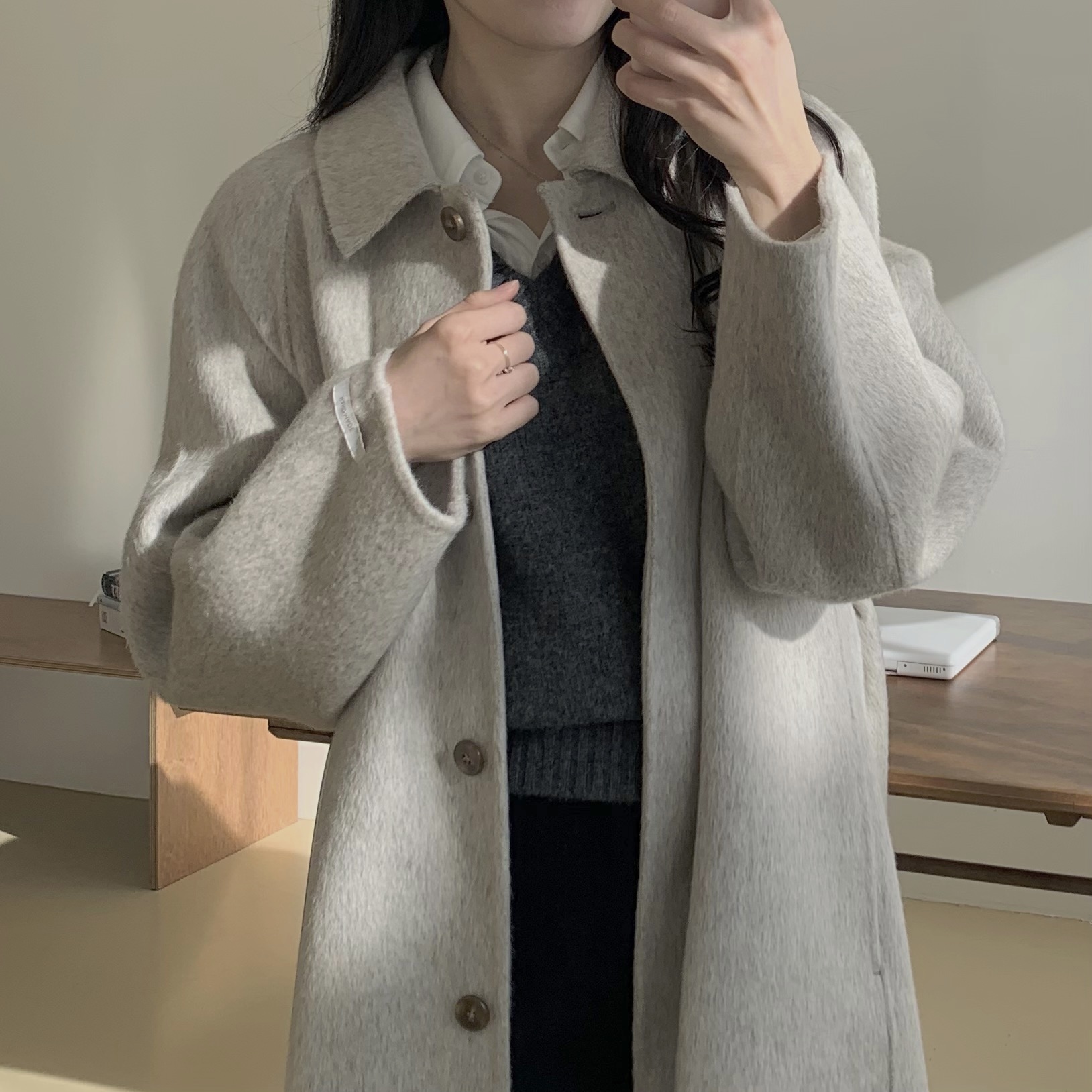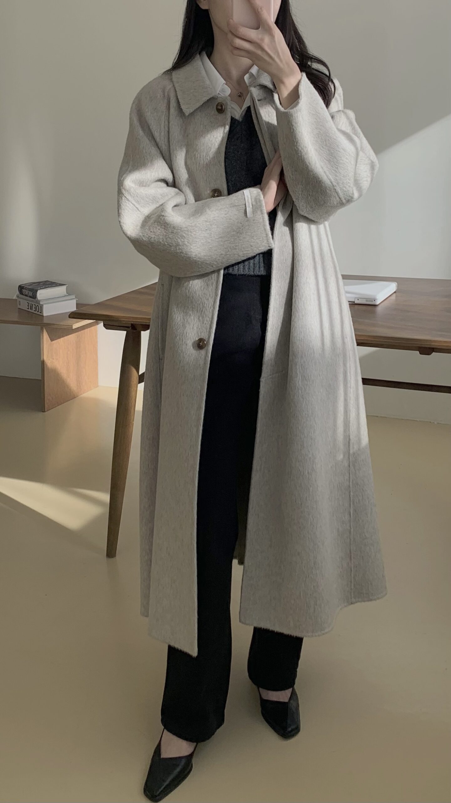 ******ung3562@gmail.com [Premium] 羊駝高貴氣勢手工大衣 - 燕麥灰 - 顏色 : 燕麥灰