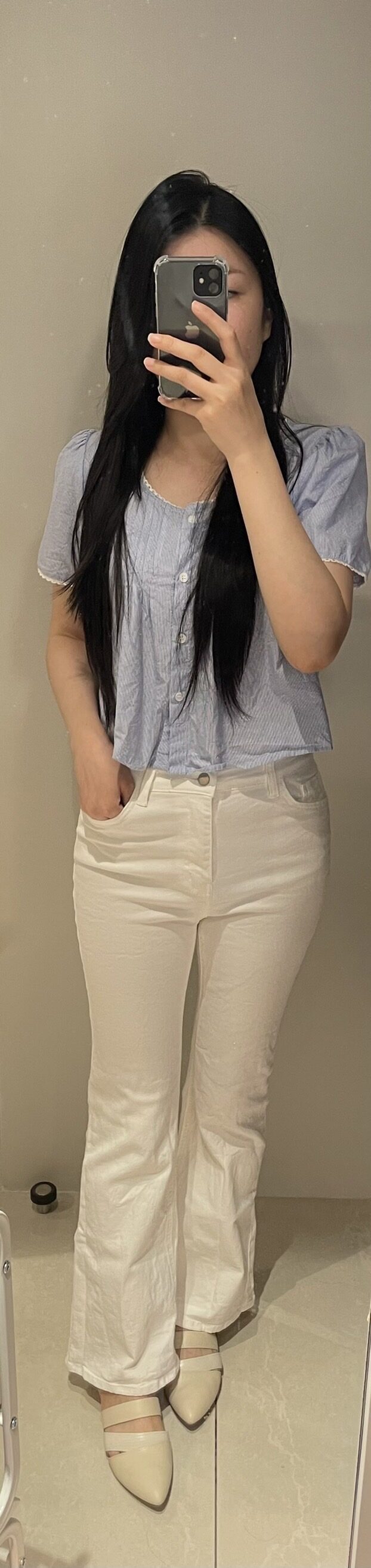 非常修身的褲子,剪裁不錯,但布料比想像中更硬挺而厚實,感覺秋天也適合穿。