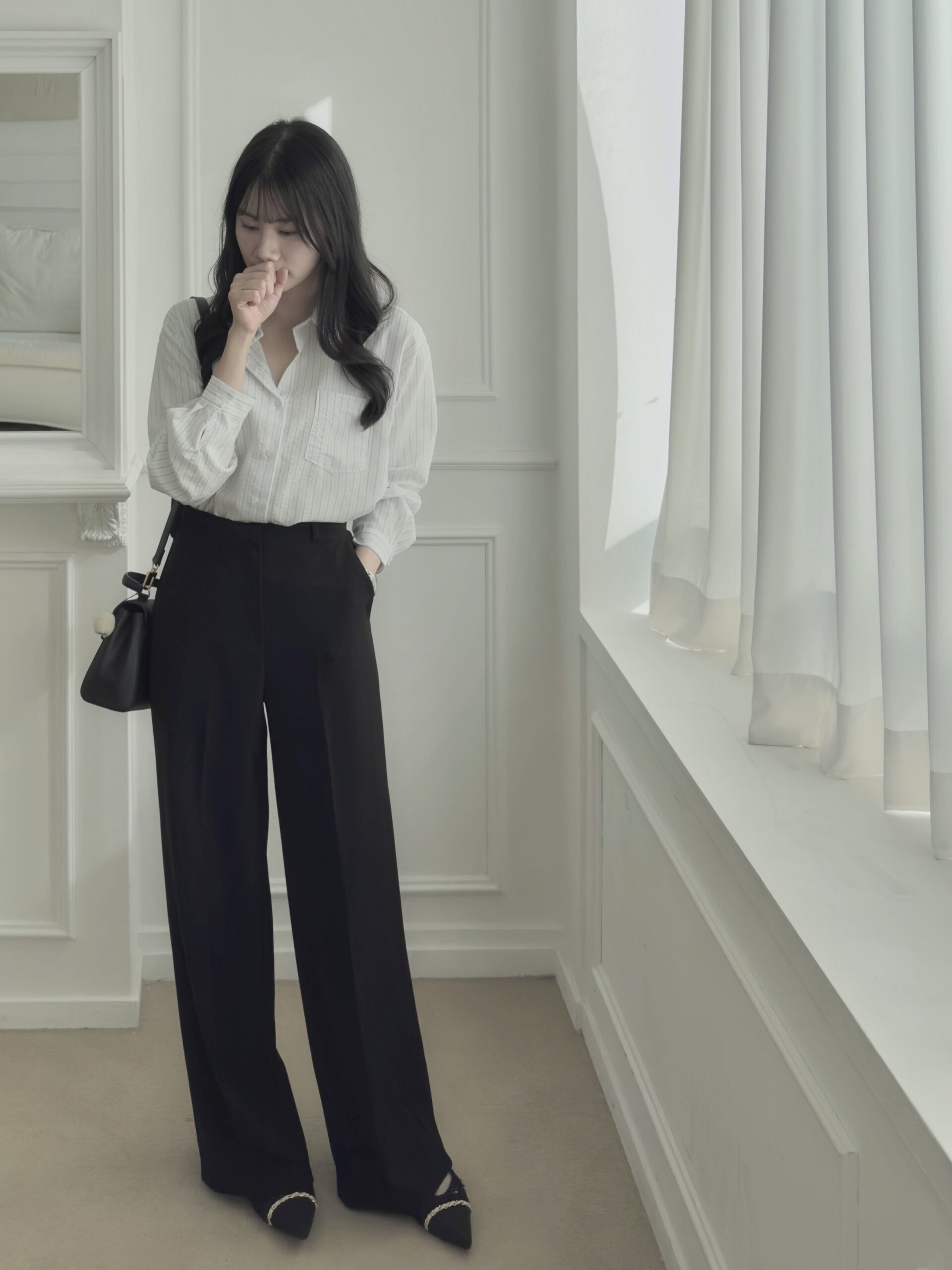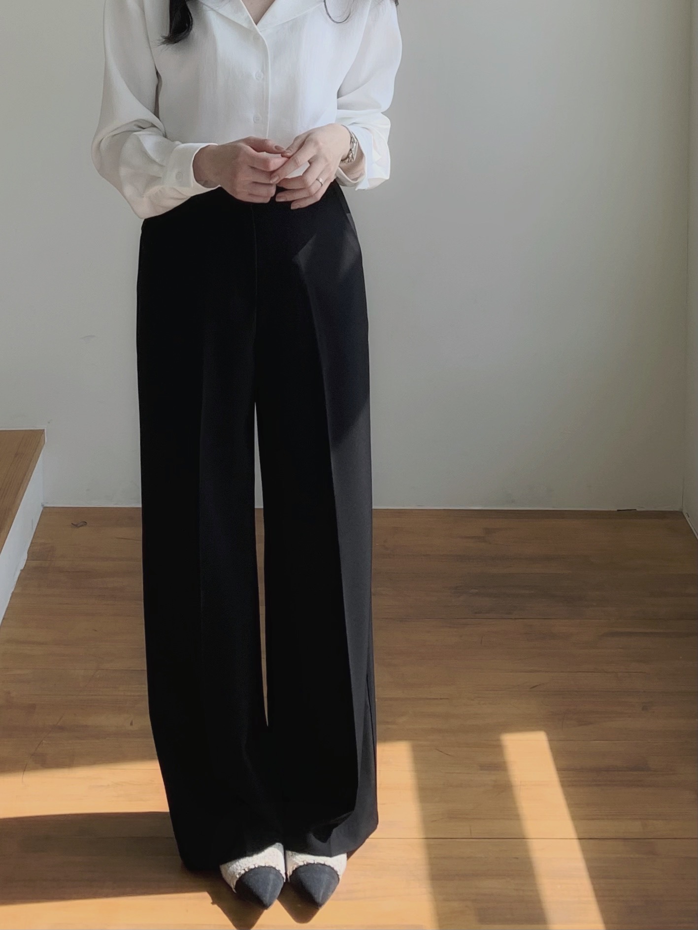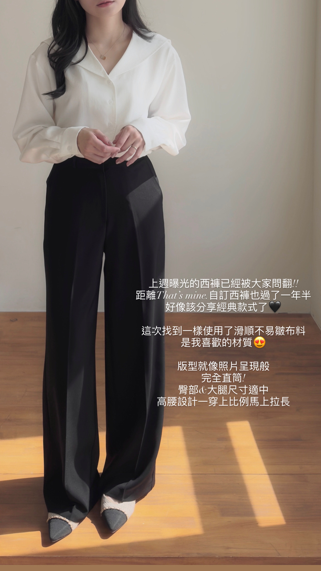 ******en0525@gmail.com 拉高比例滑順直筒西裝褲 - 黑色, M - 顏色 : 黑色, 尺寸 : M