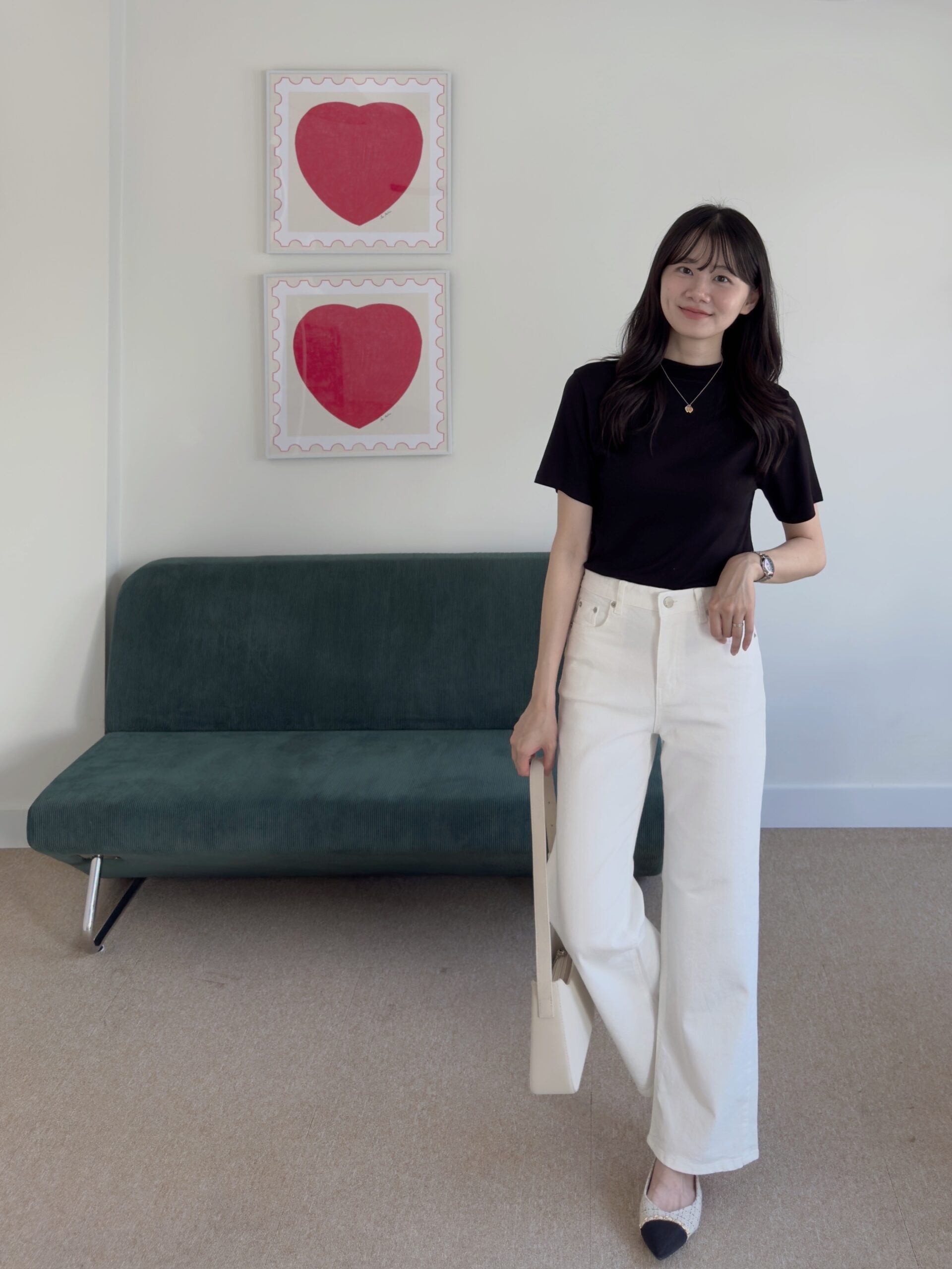 上衣顏色獨特或是布料搶眼的時候,下半身首選白褲