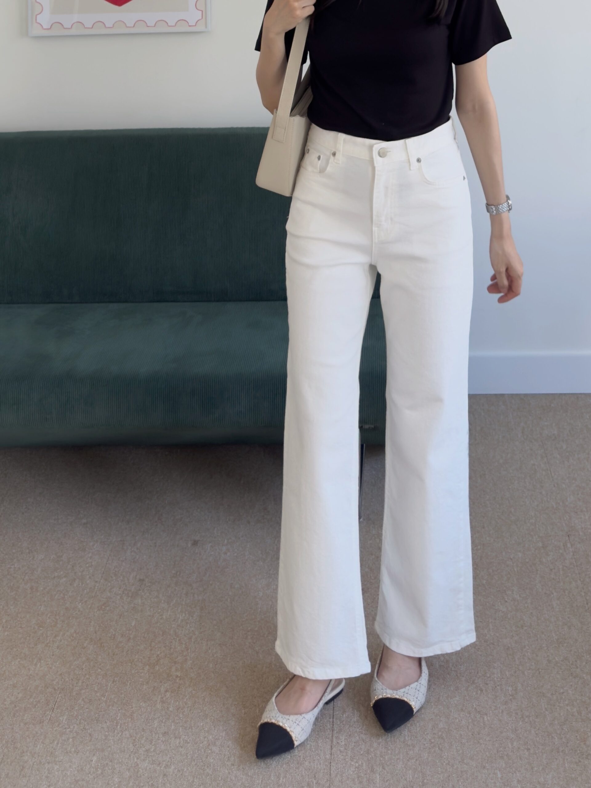 ******841026@gmail.com 純淨日常直筒白褲 - M - 尺寸 : M
