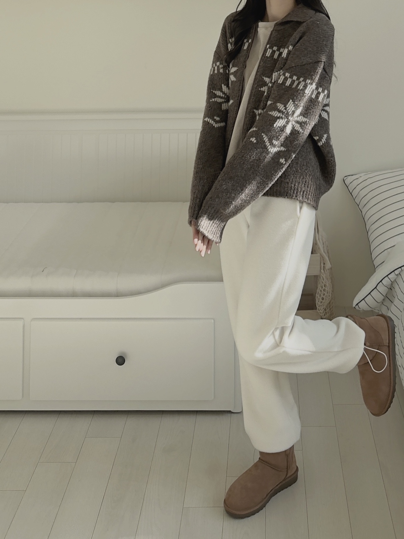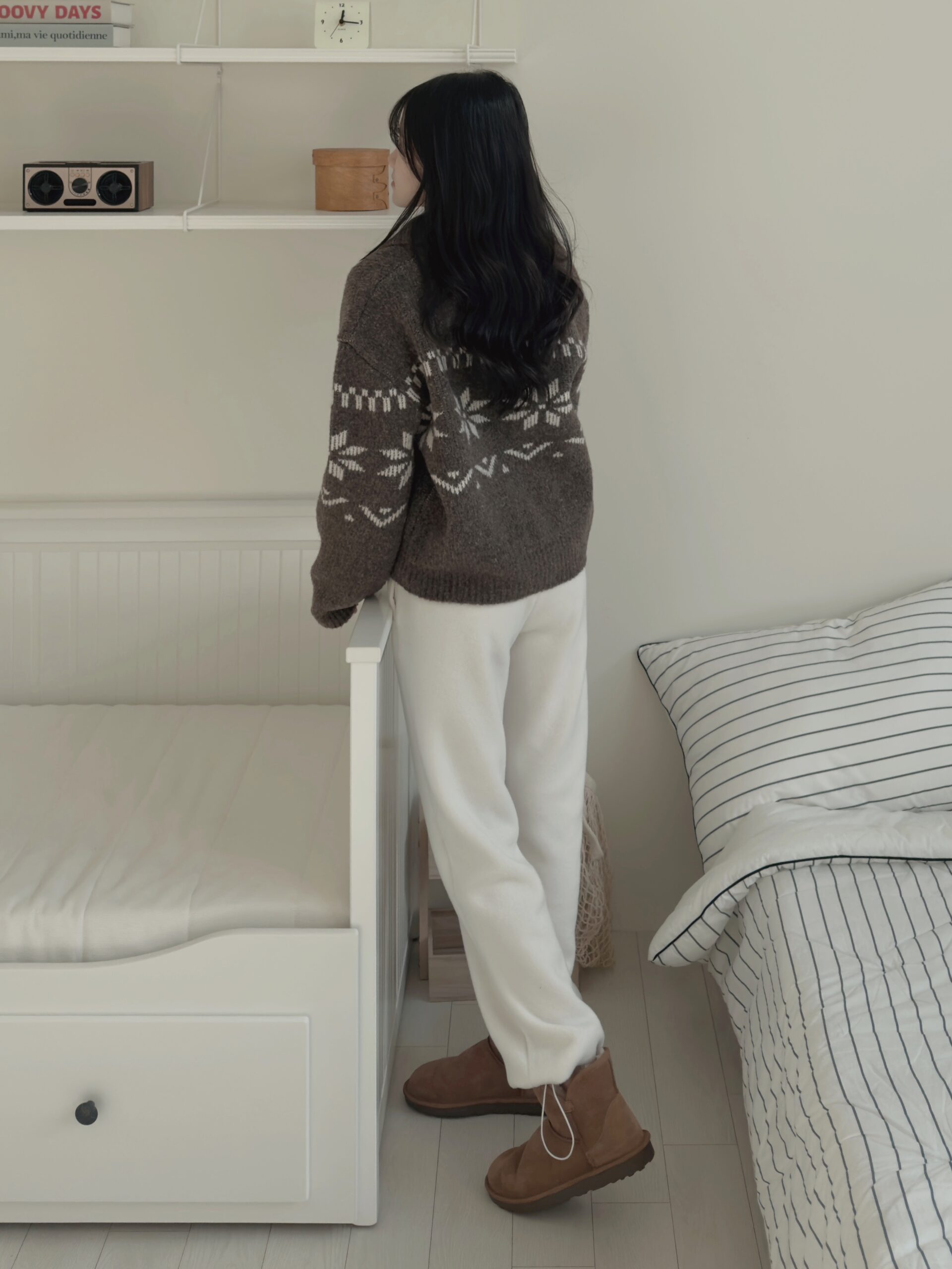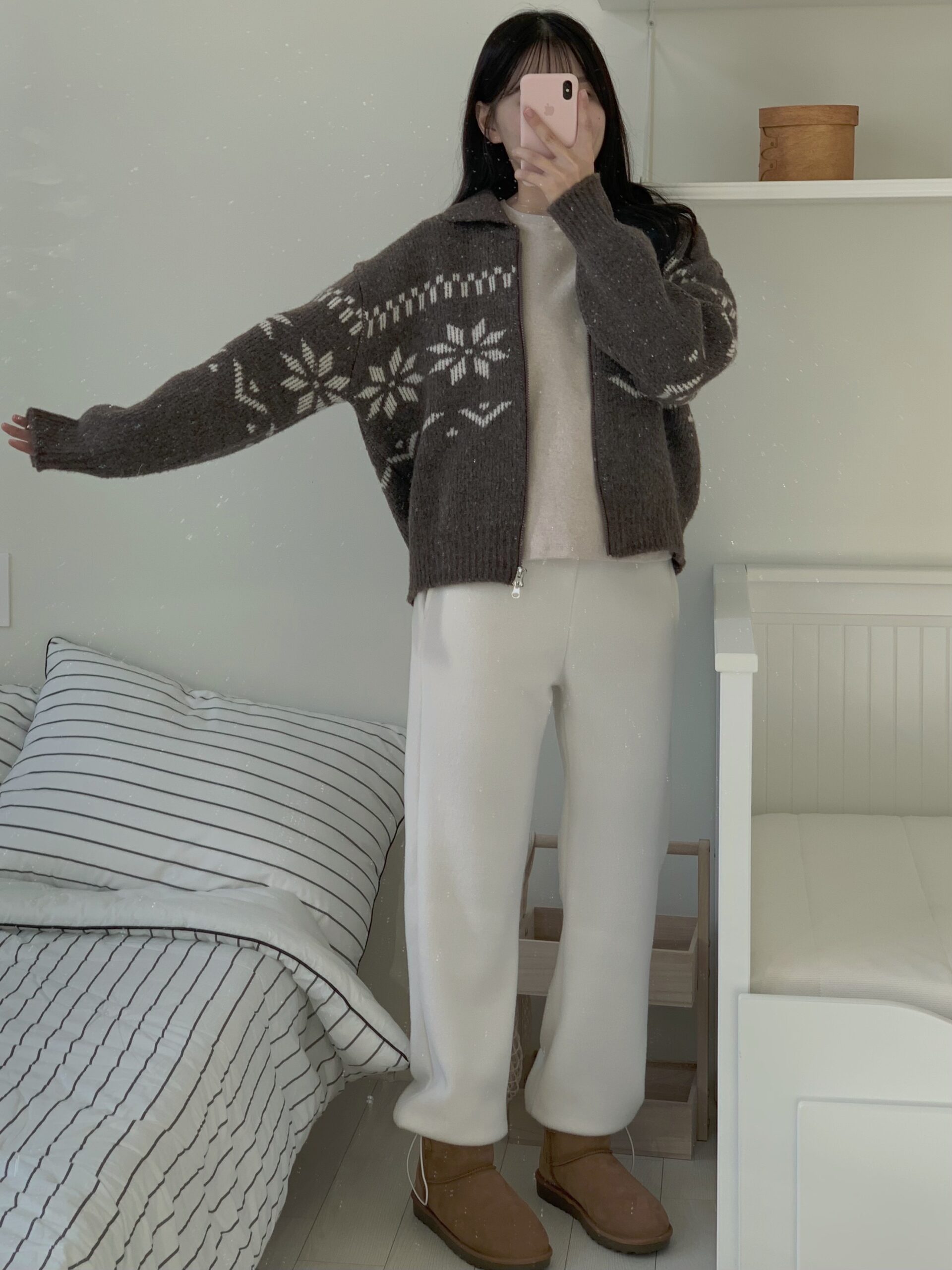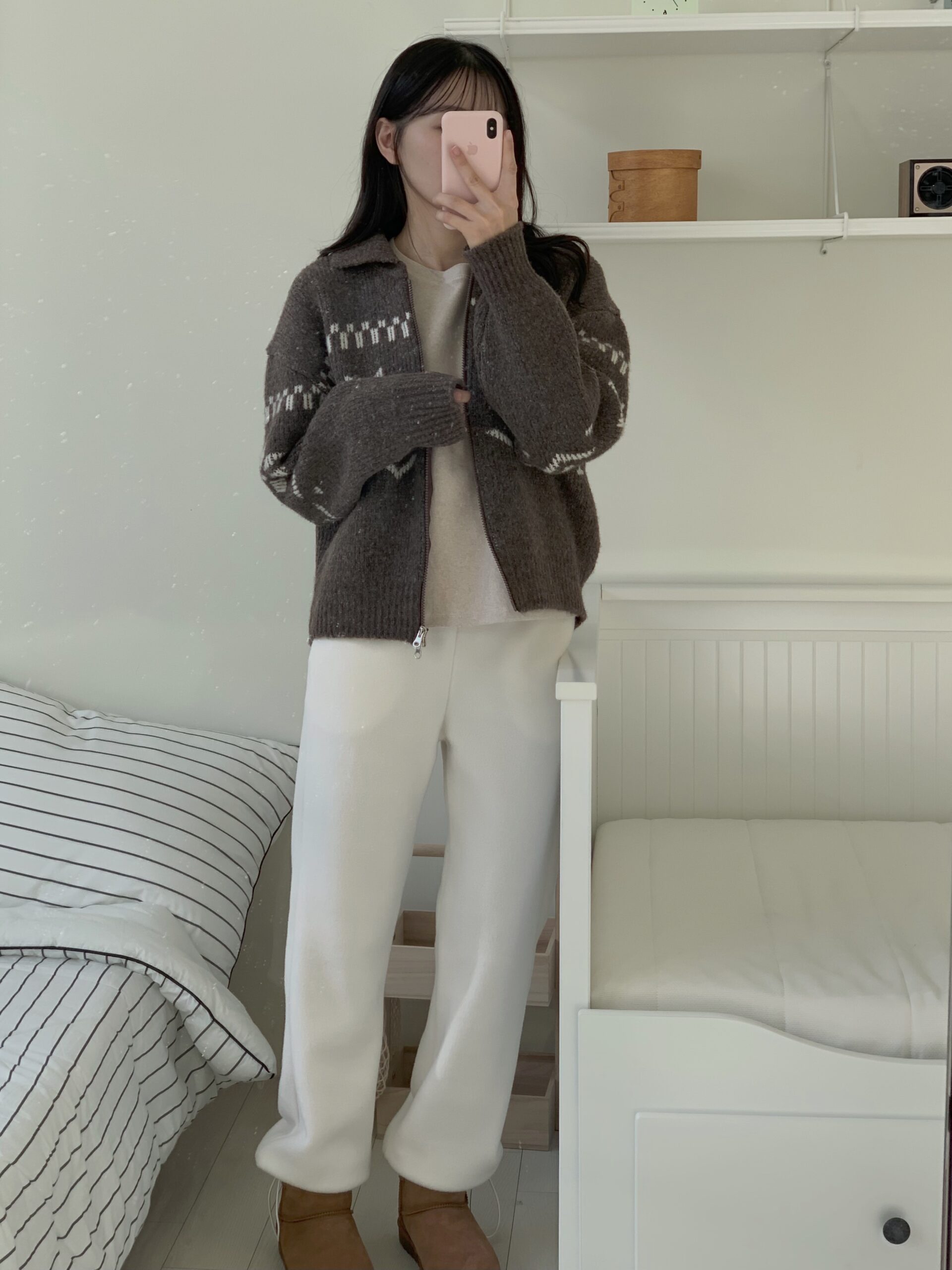 超級令人驚艷的褲子!材質柔軟,穿起來很保暖,重點是版型很順顯腿長,雖然是絨毛褲卻沒有睡褲感,寒流或出國的必備單品✨