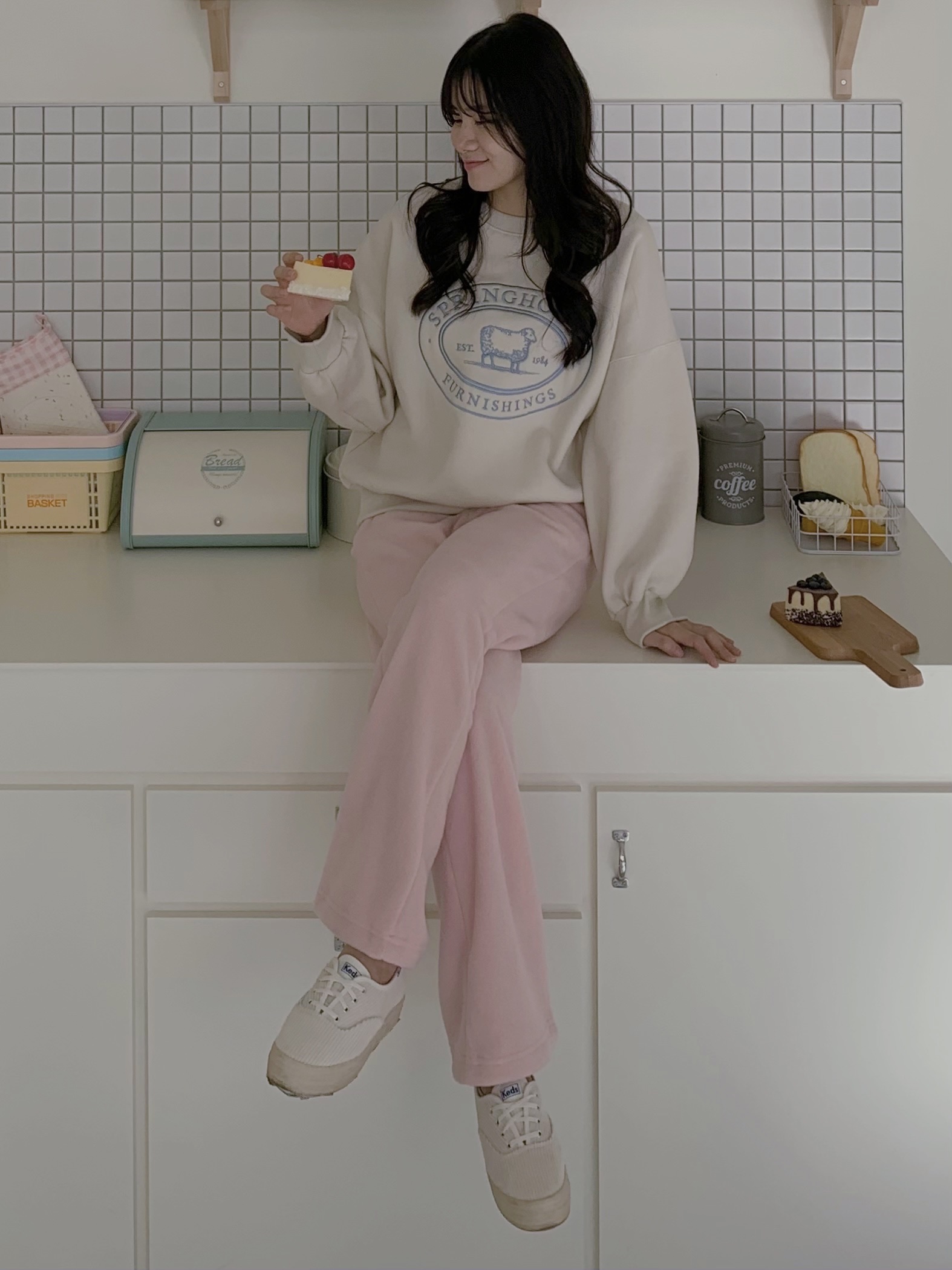 仙草莓牛奶色真的非常少見!一看到預告照立刻眼冒愛心決定我要買,整件毛絨絨配上可愛的顏色,真的誰穿誰嫩!
