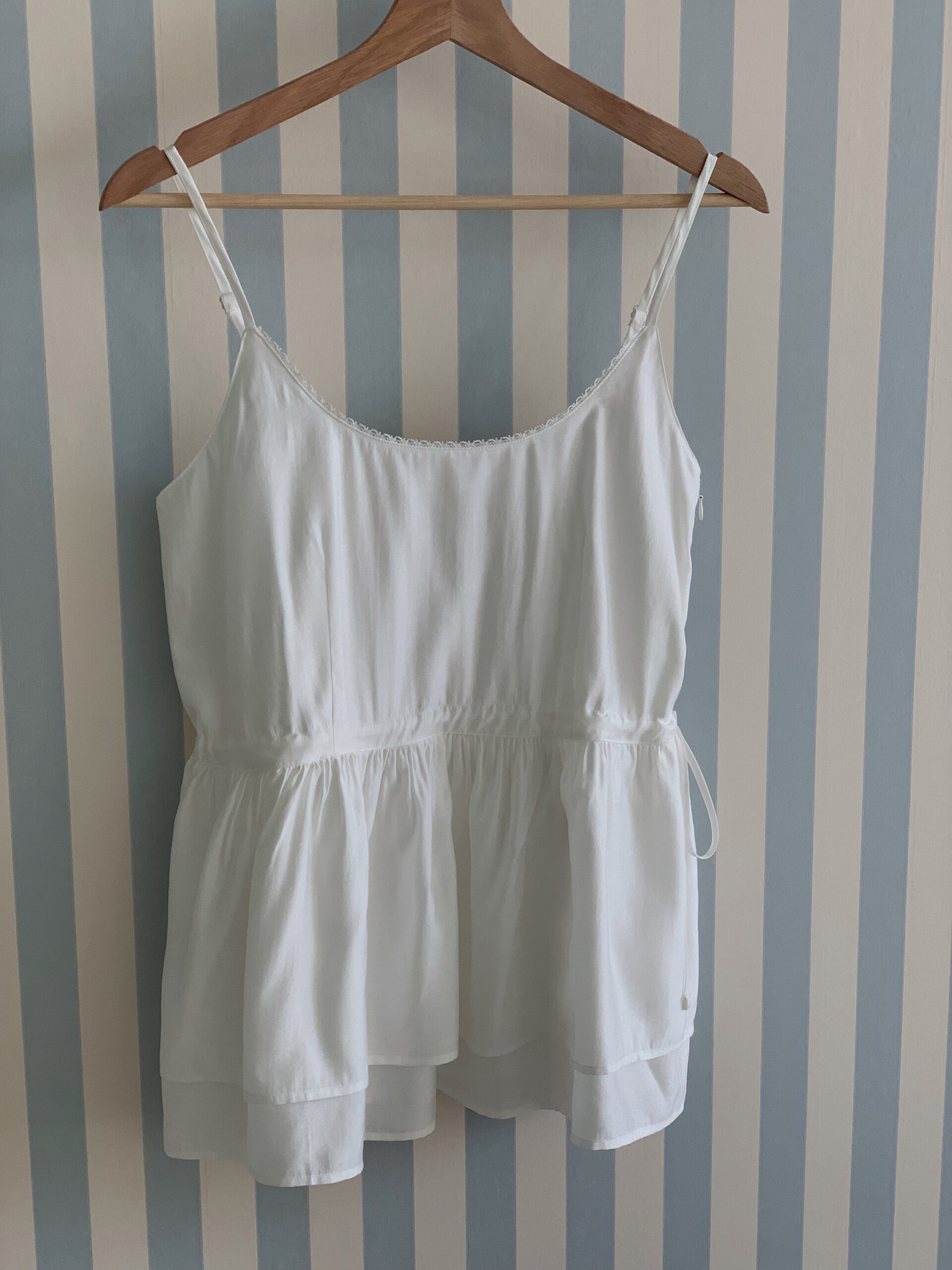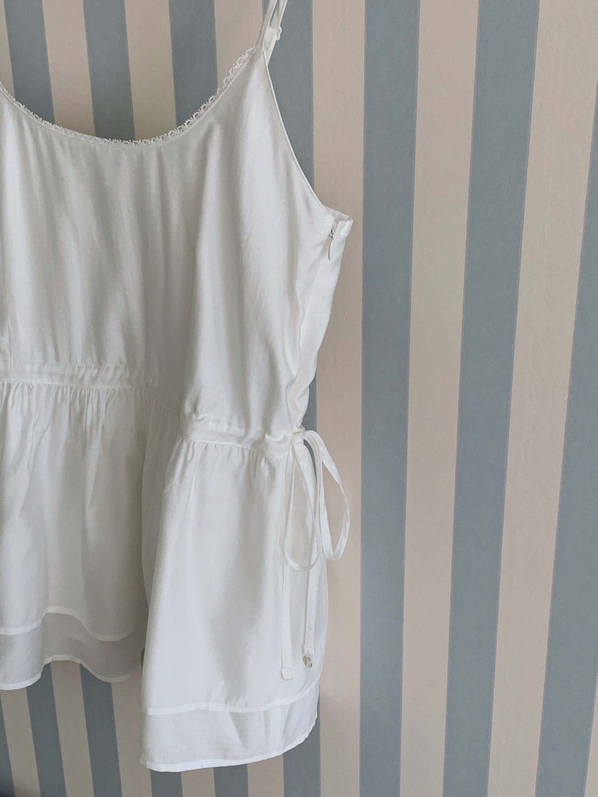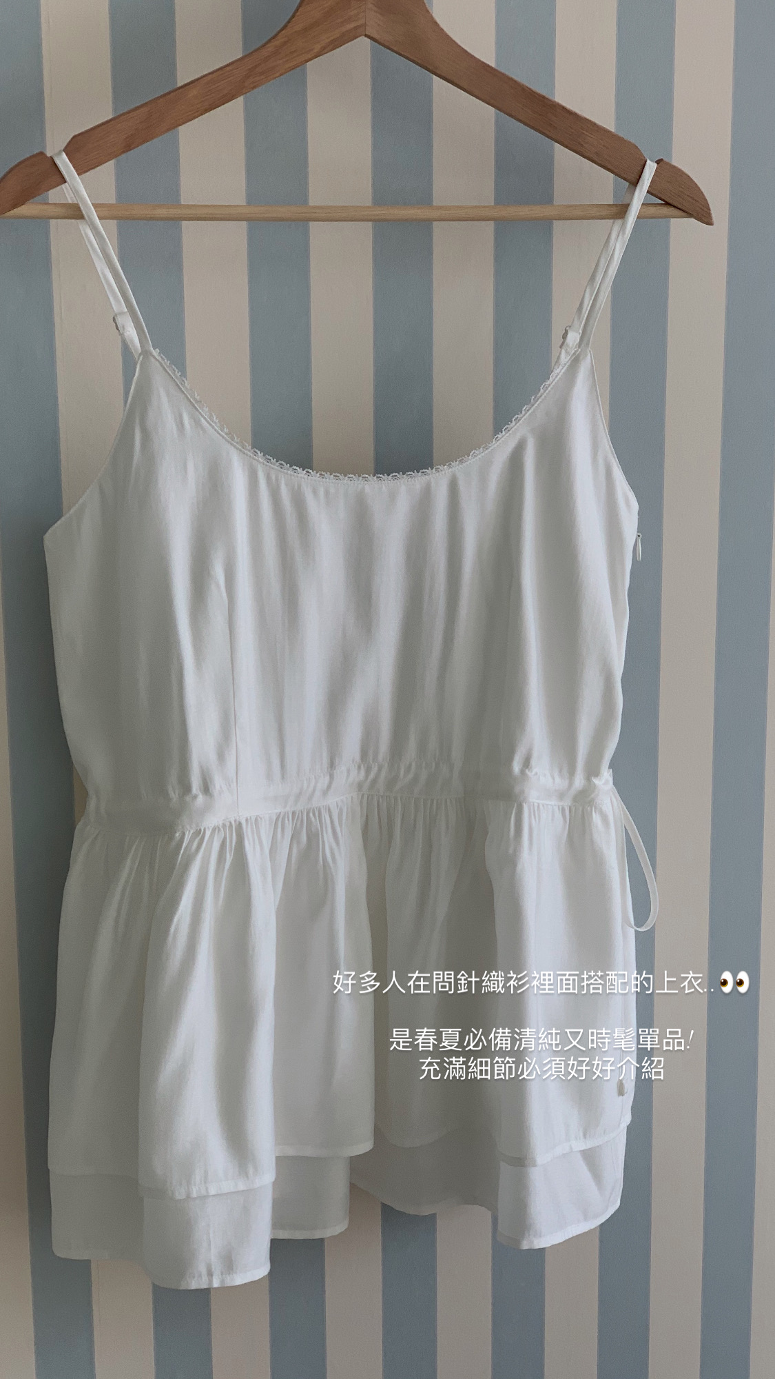 ******1995@icloud.com 清純光澤蛋糕細肩上衣 - 白色 - 顏色 : 白色