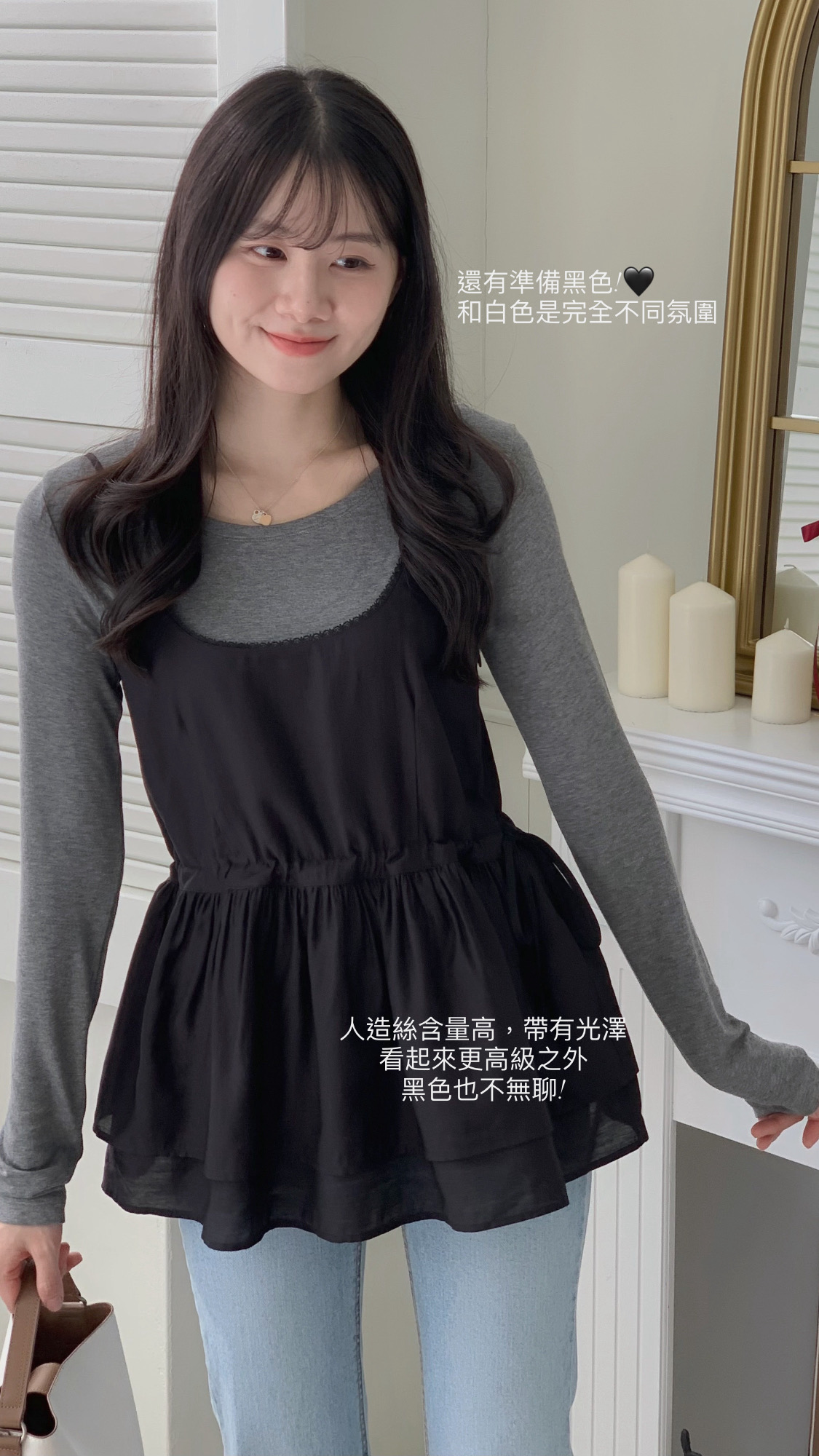 下擺雙層布料、自帶光澤感