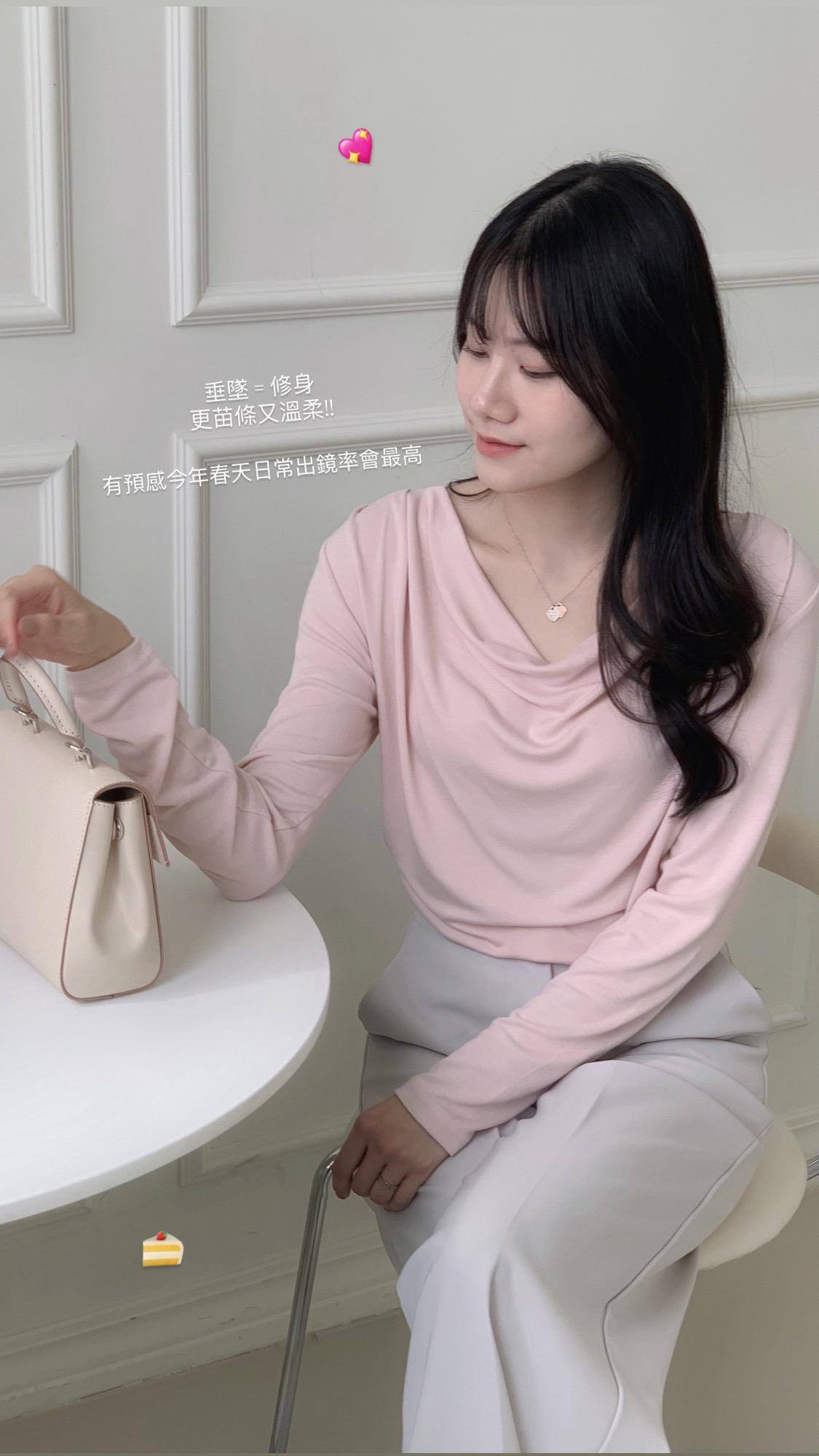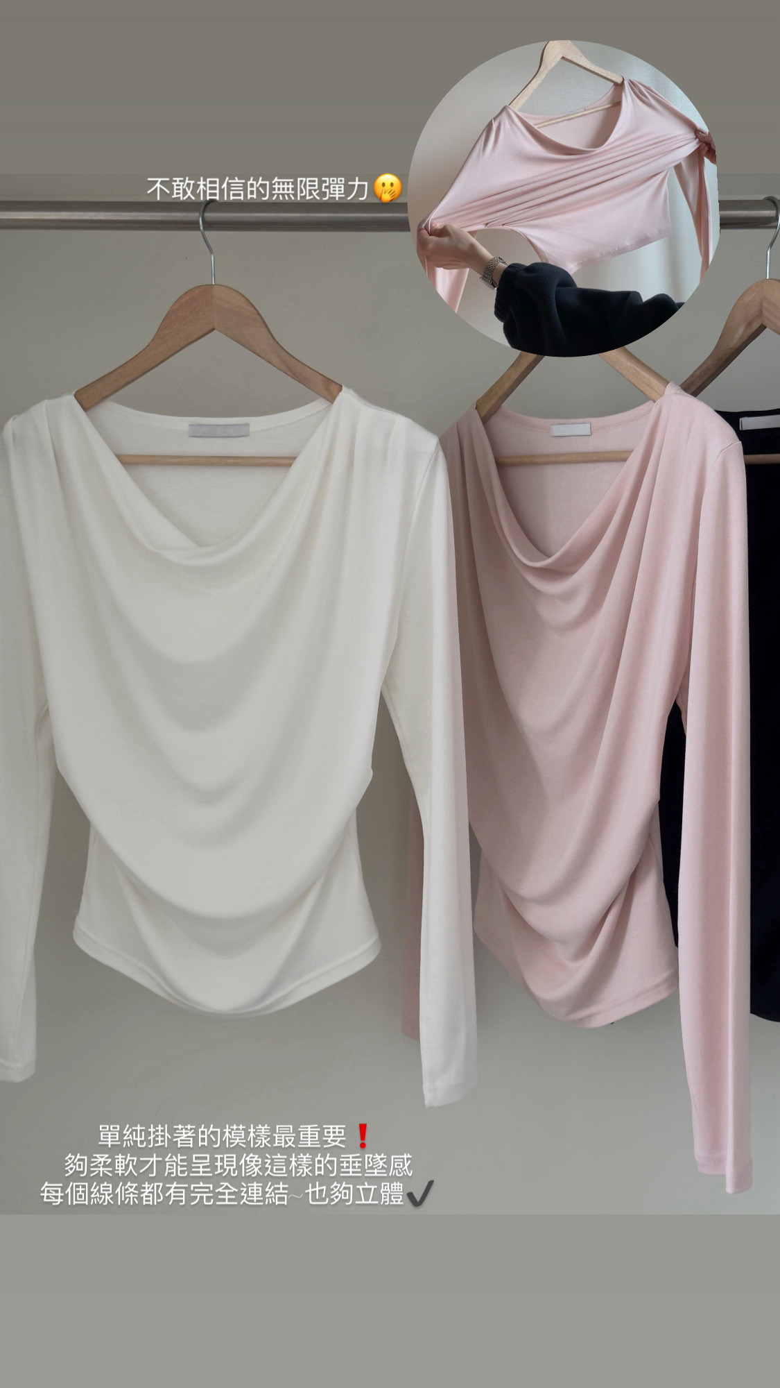 粉色的垂墜感更明顯,很適合約會穿!