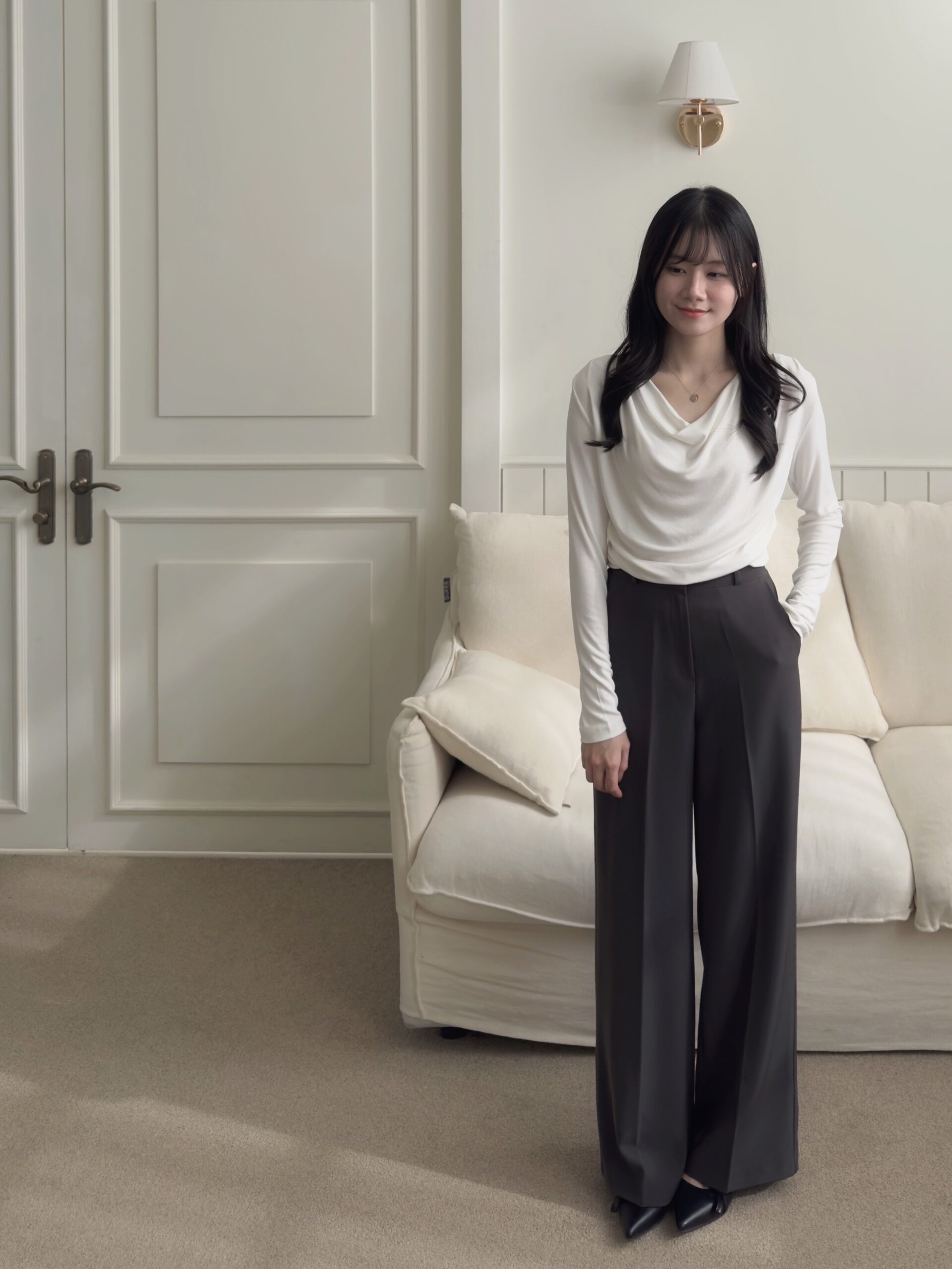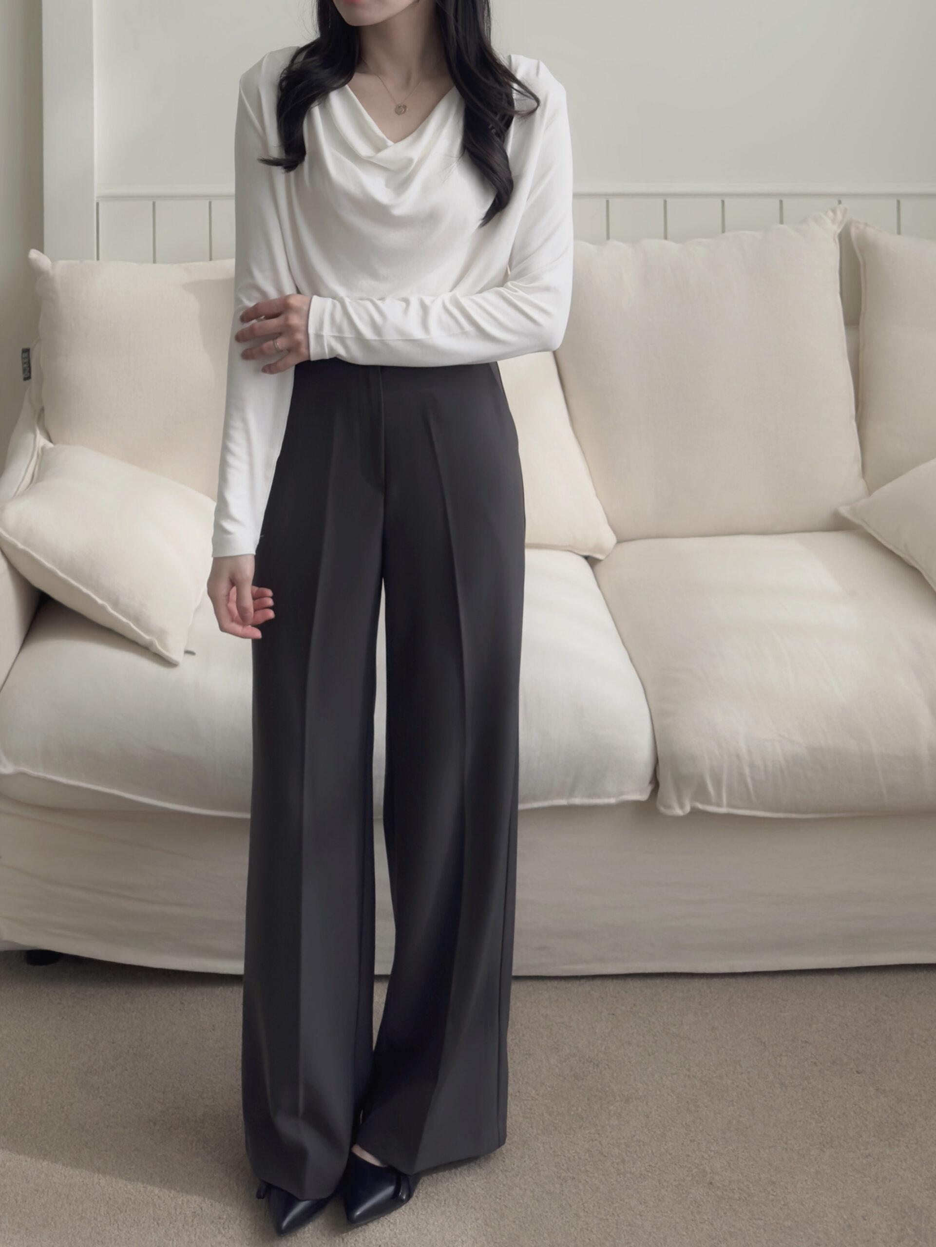 這件領口垂墜設計讓穿搭更容易