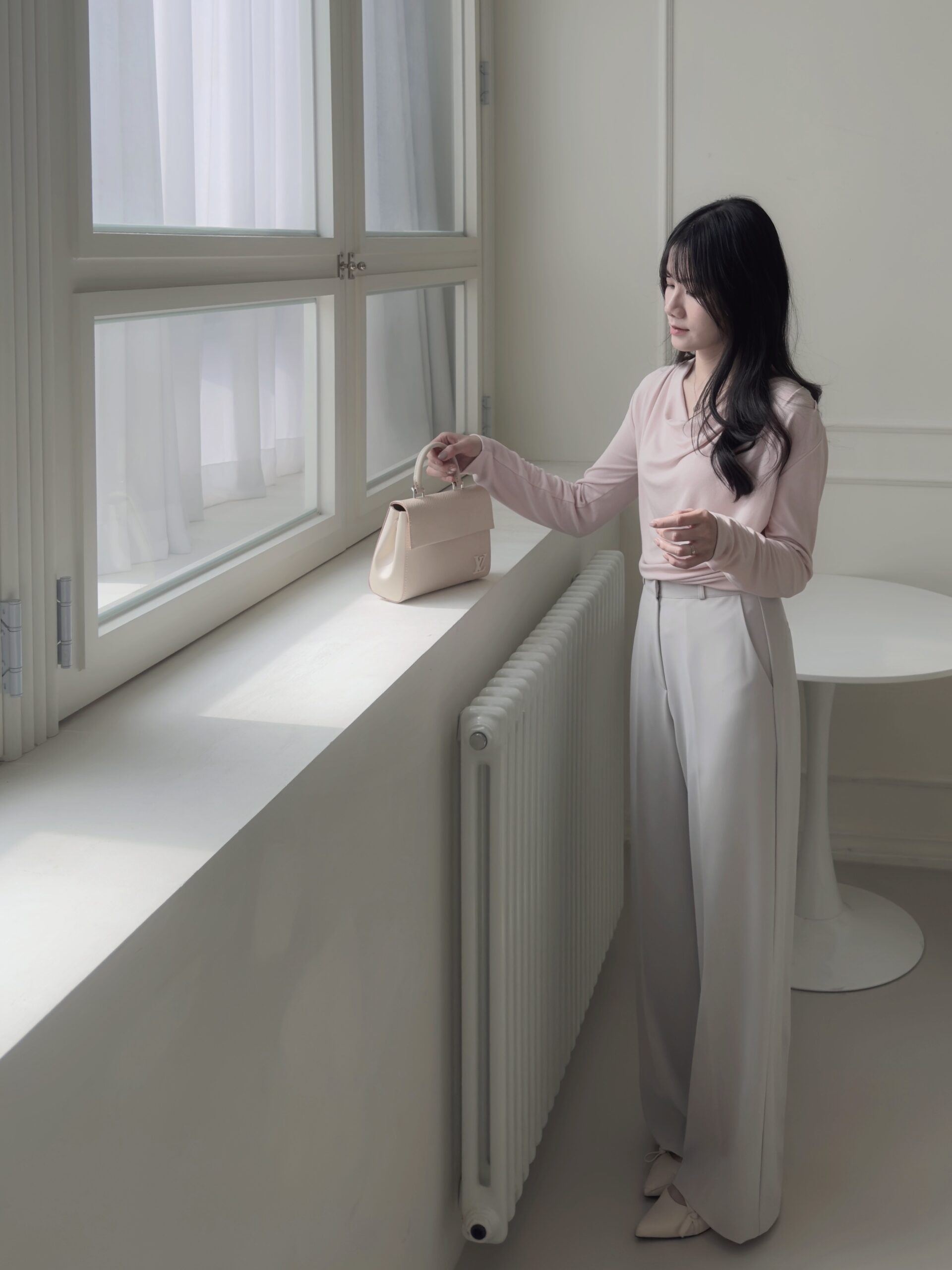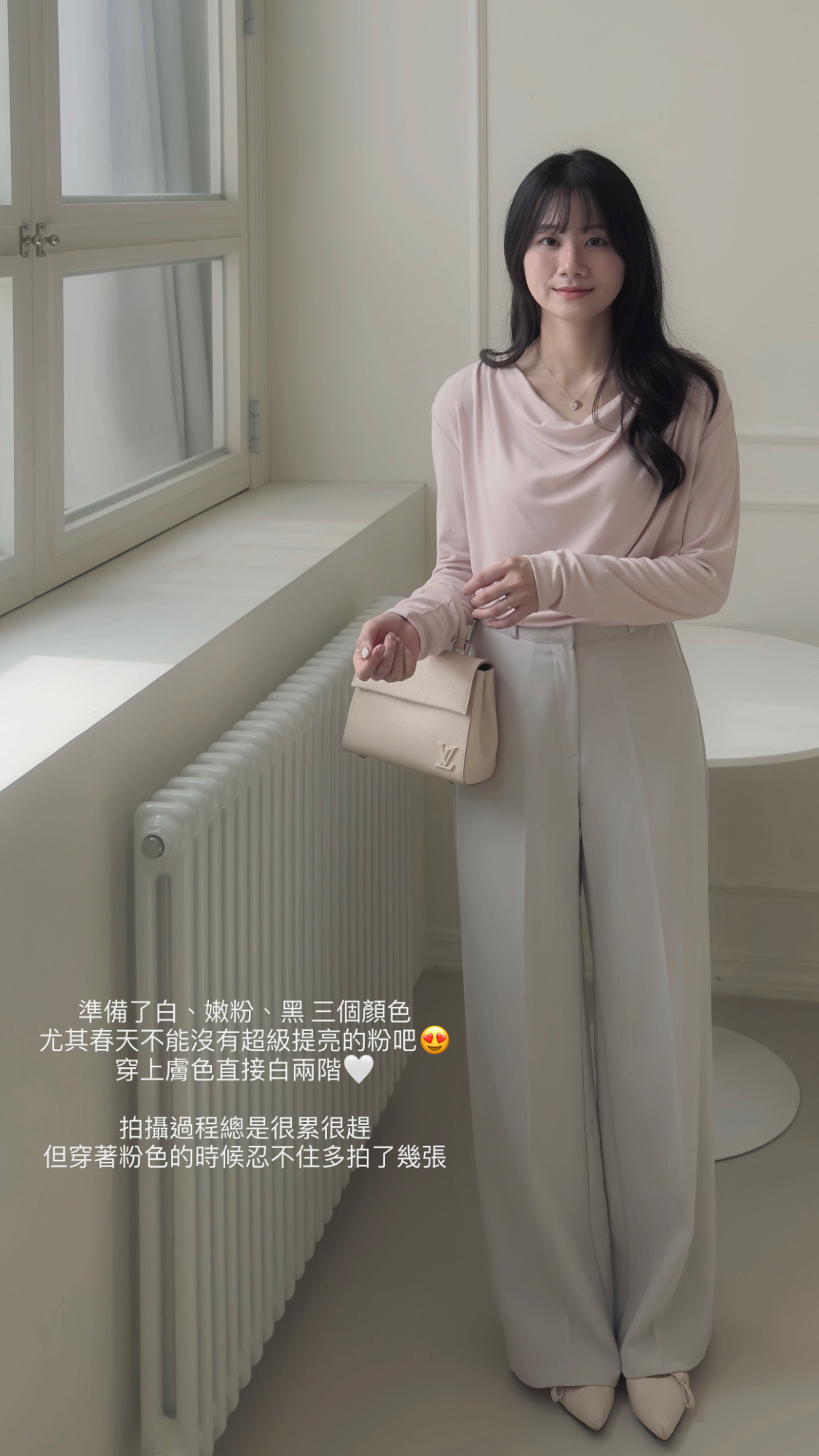 大力推薦粉色+米色西褲組合