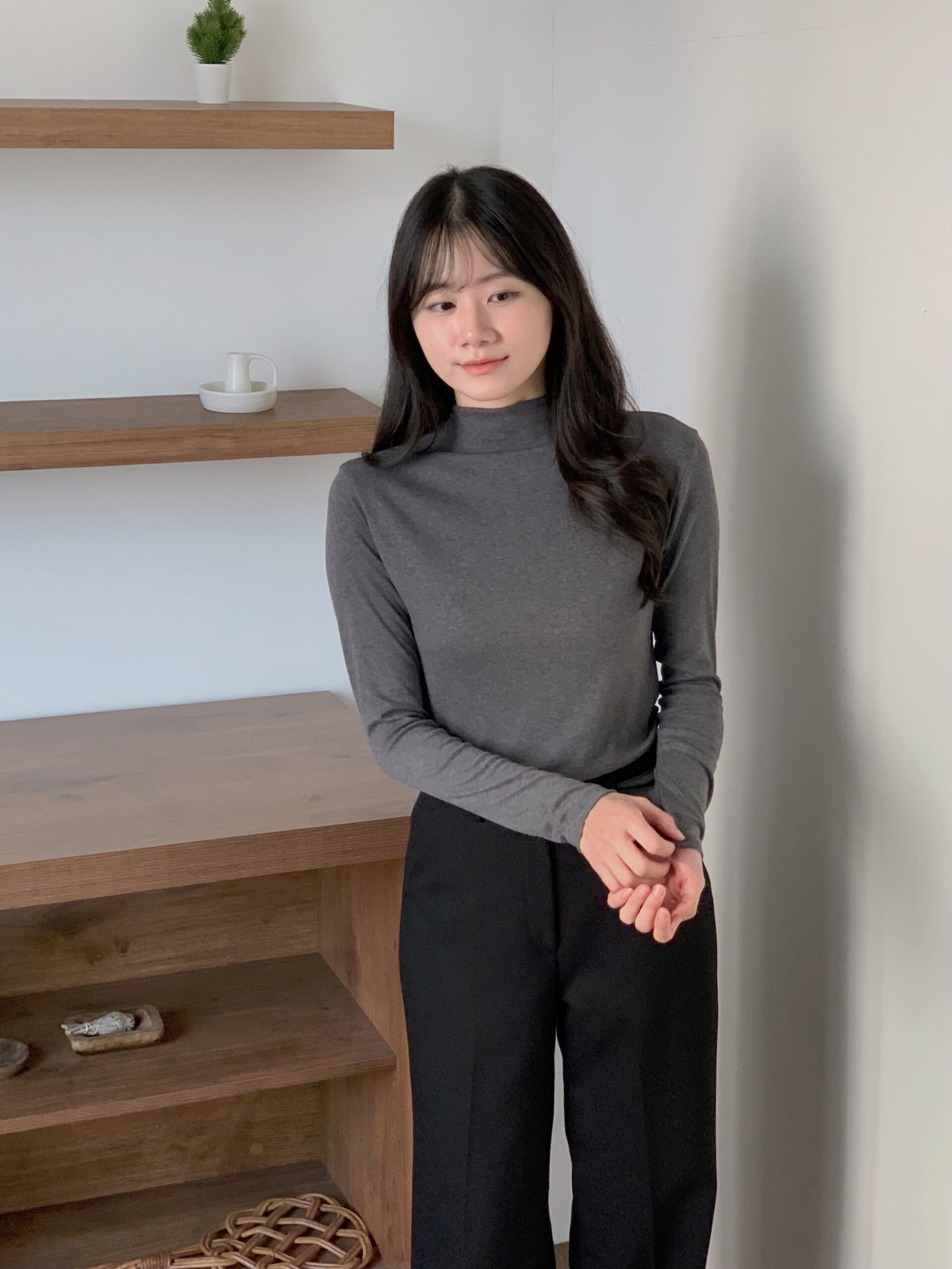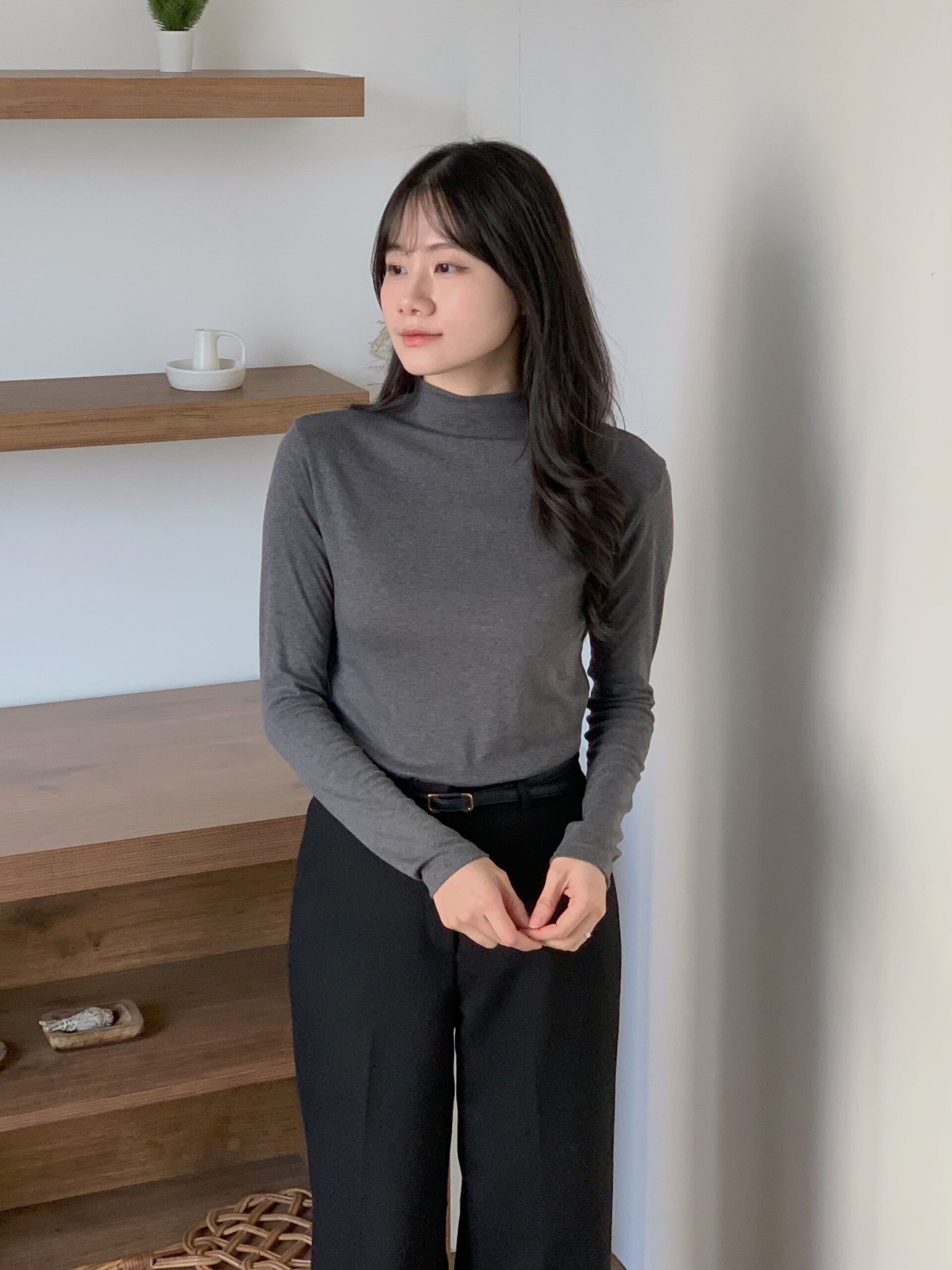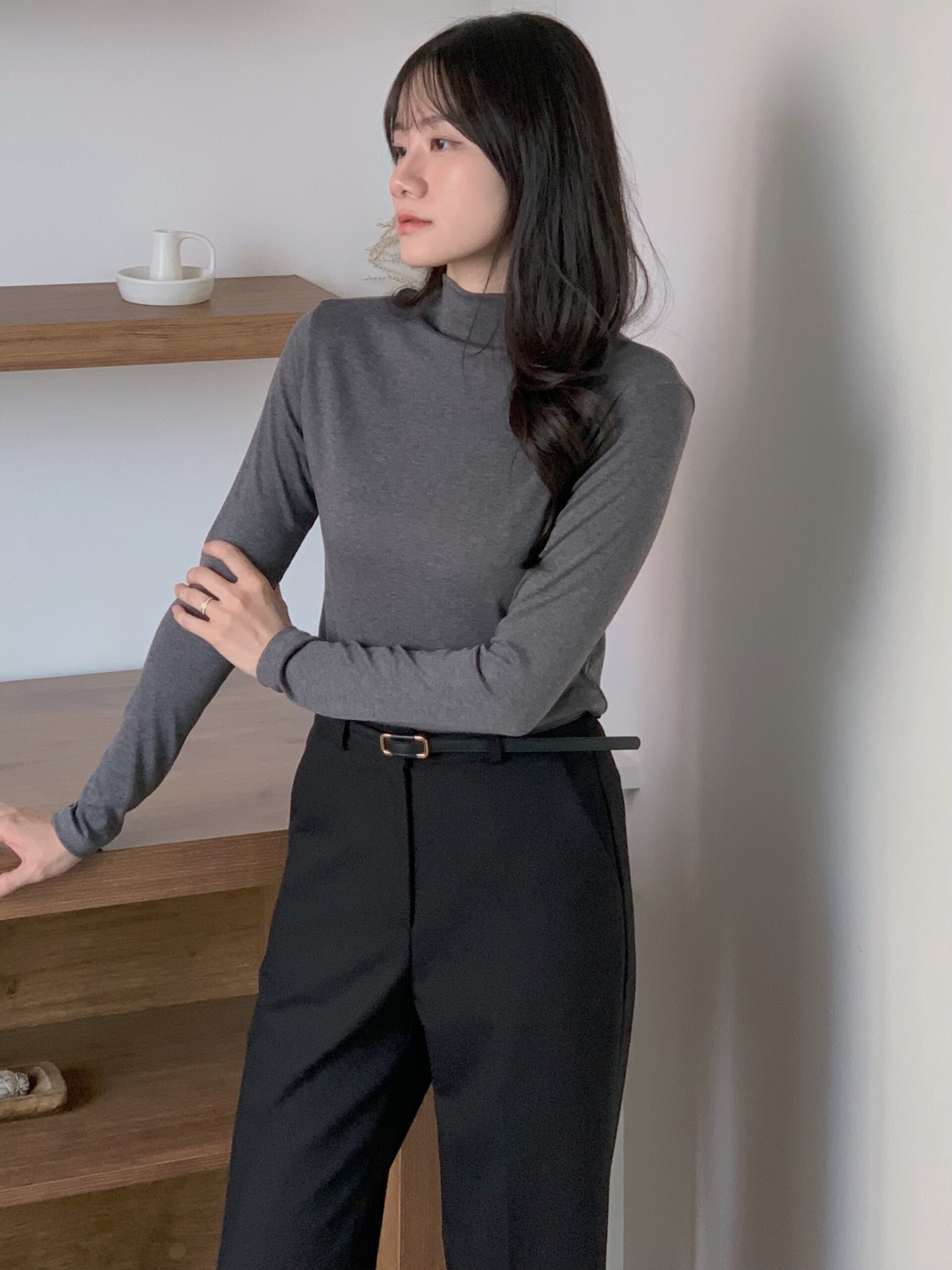 ******2165@gmail.com That's mine.彈力柔軟半領打底T(長袖) - 鐵灰 - 顏色 : 鐵灰