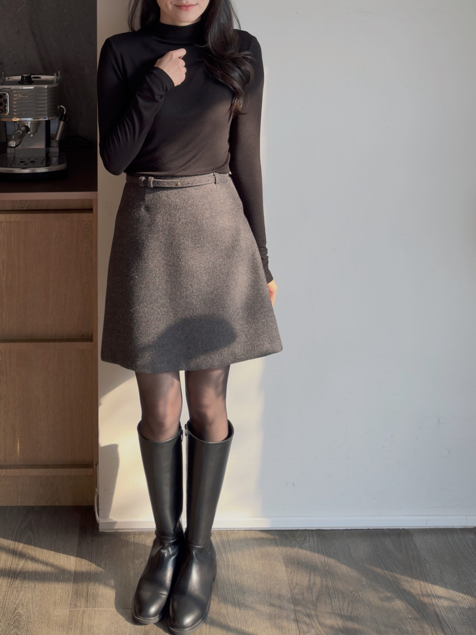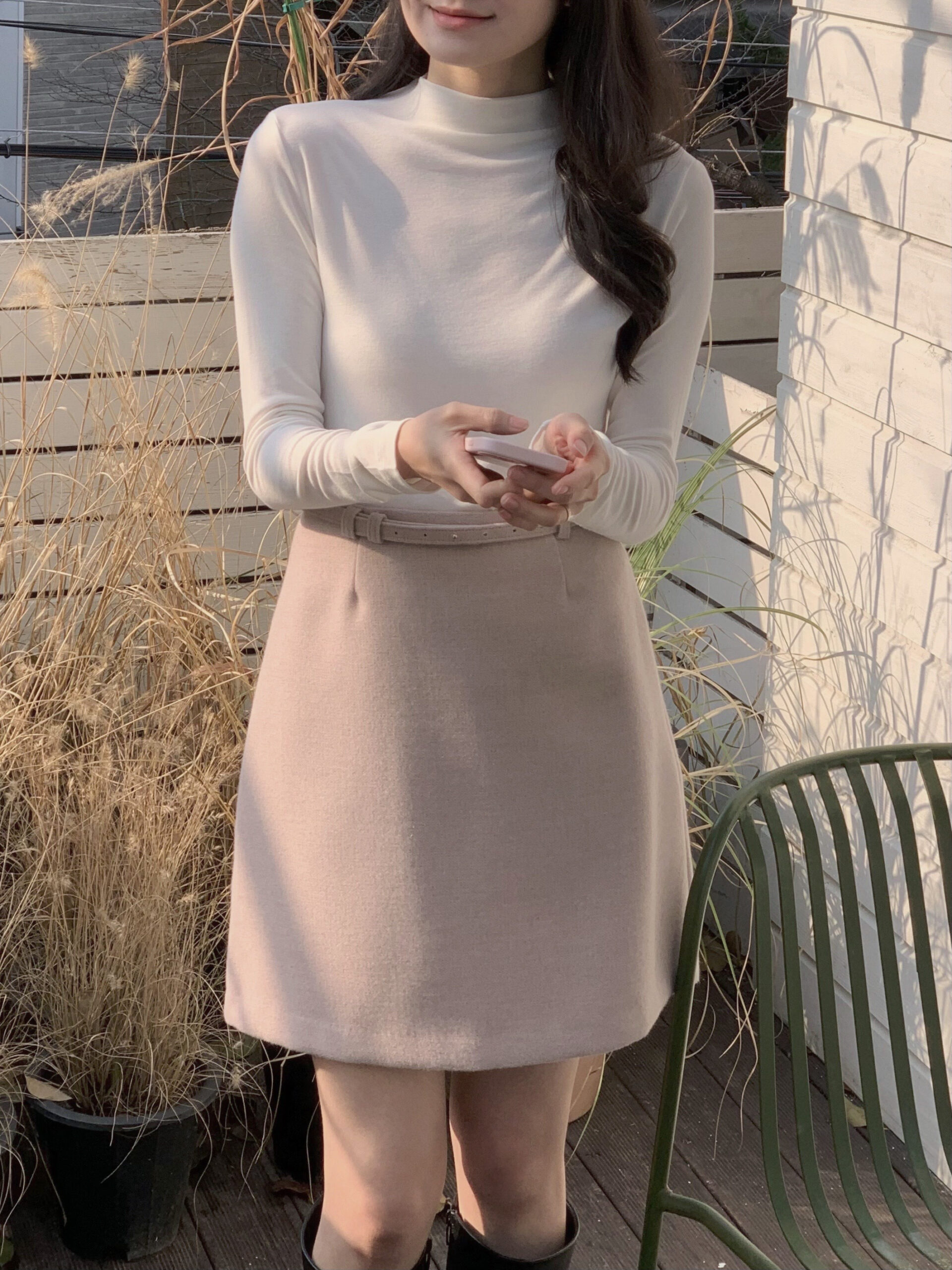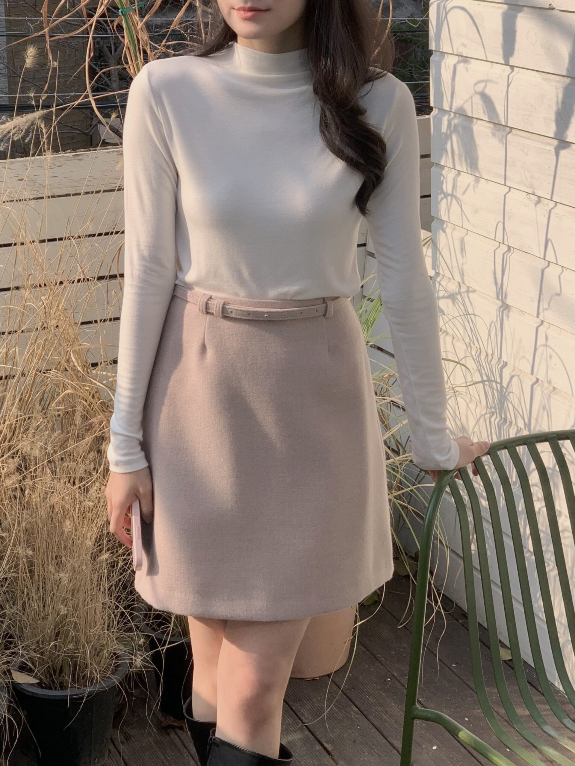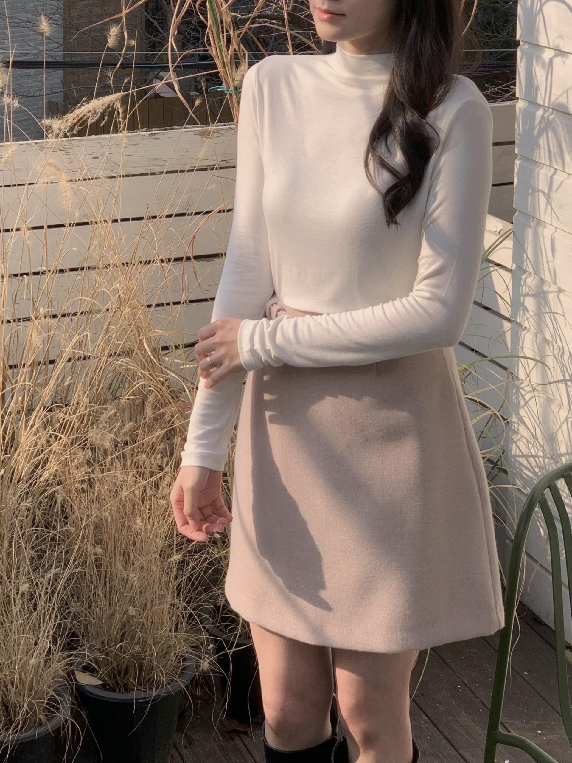 總覺得高領上衣沒穿好,容易讓整體比例失衡,像一顆大頭單獨掛著