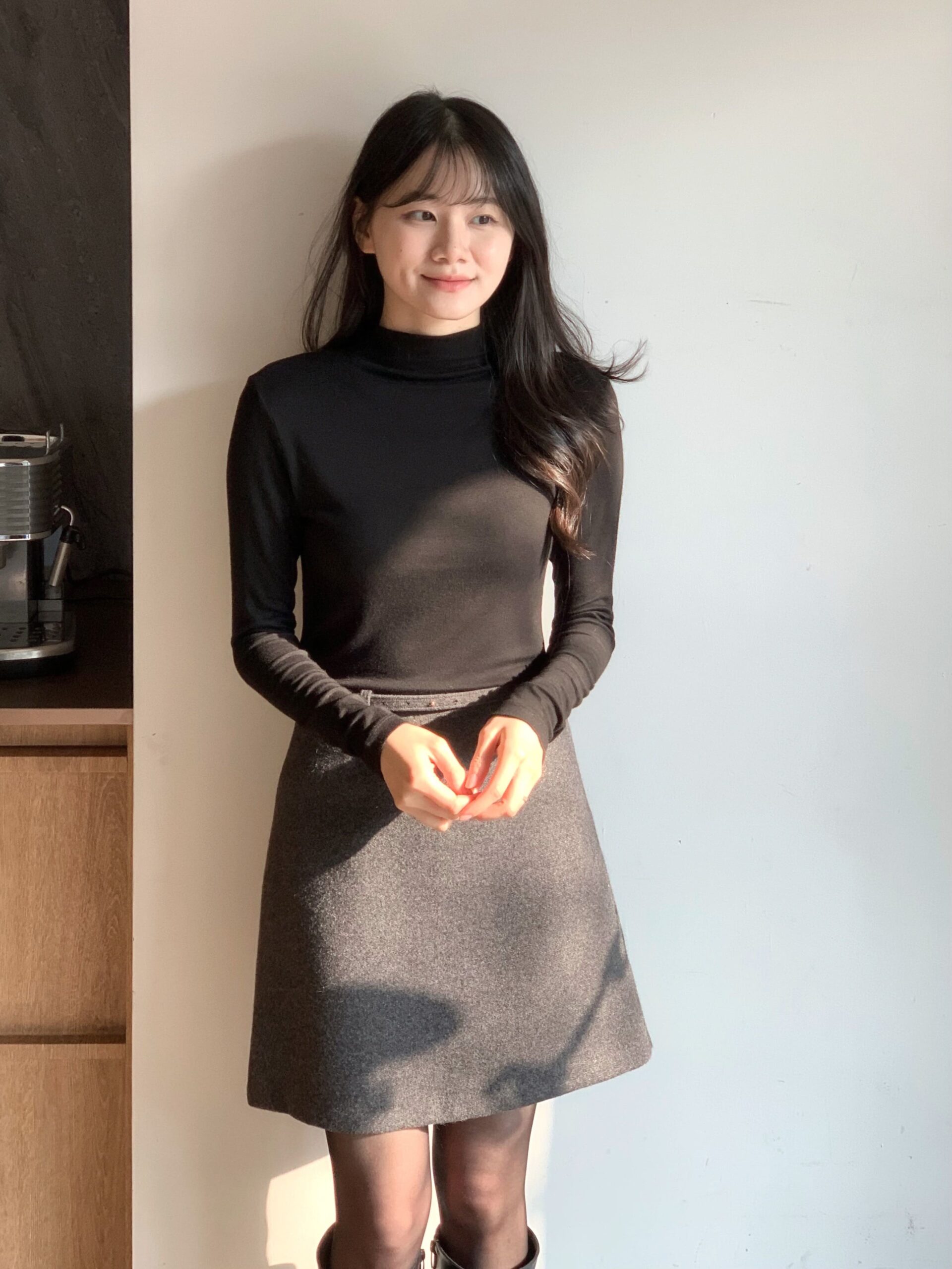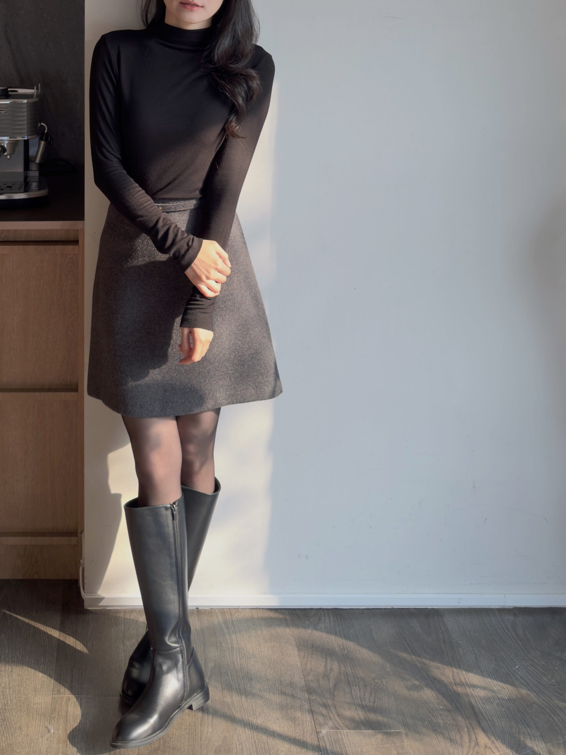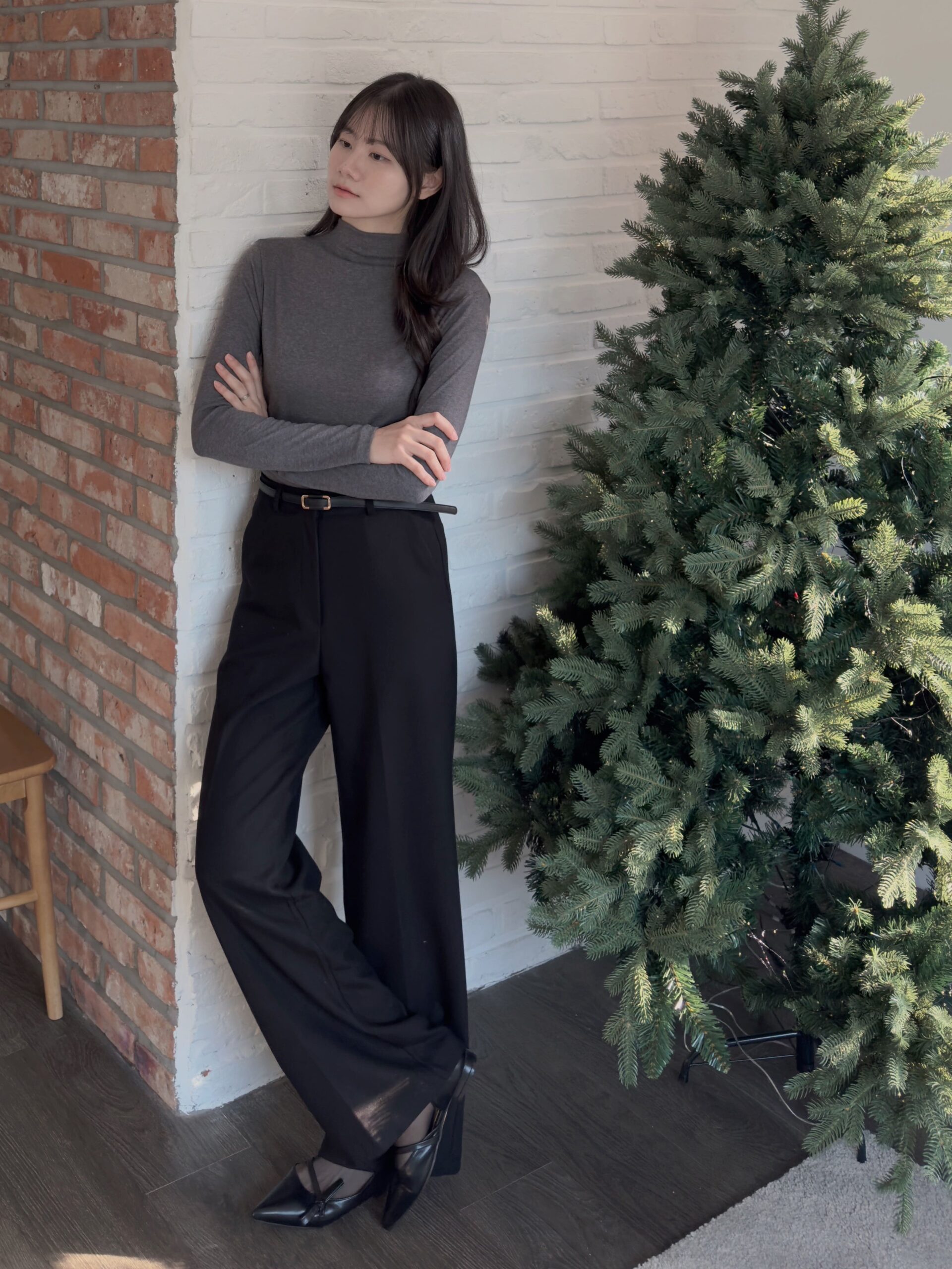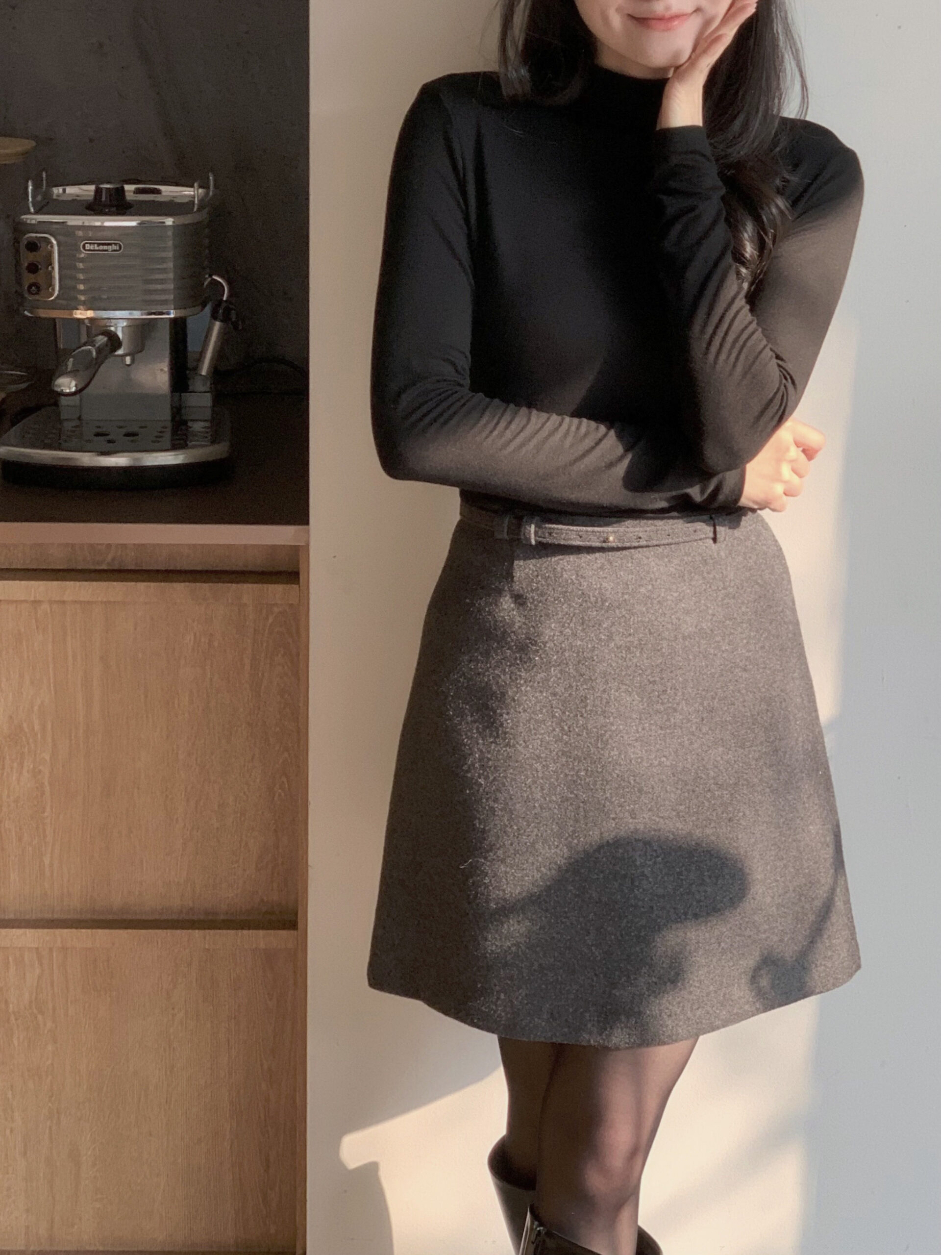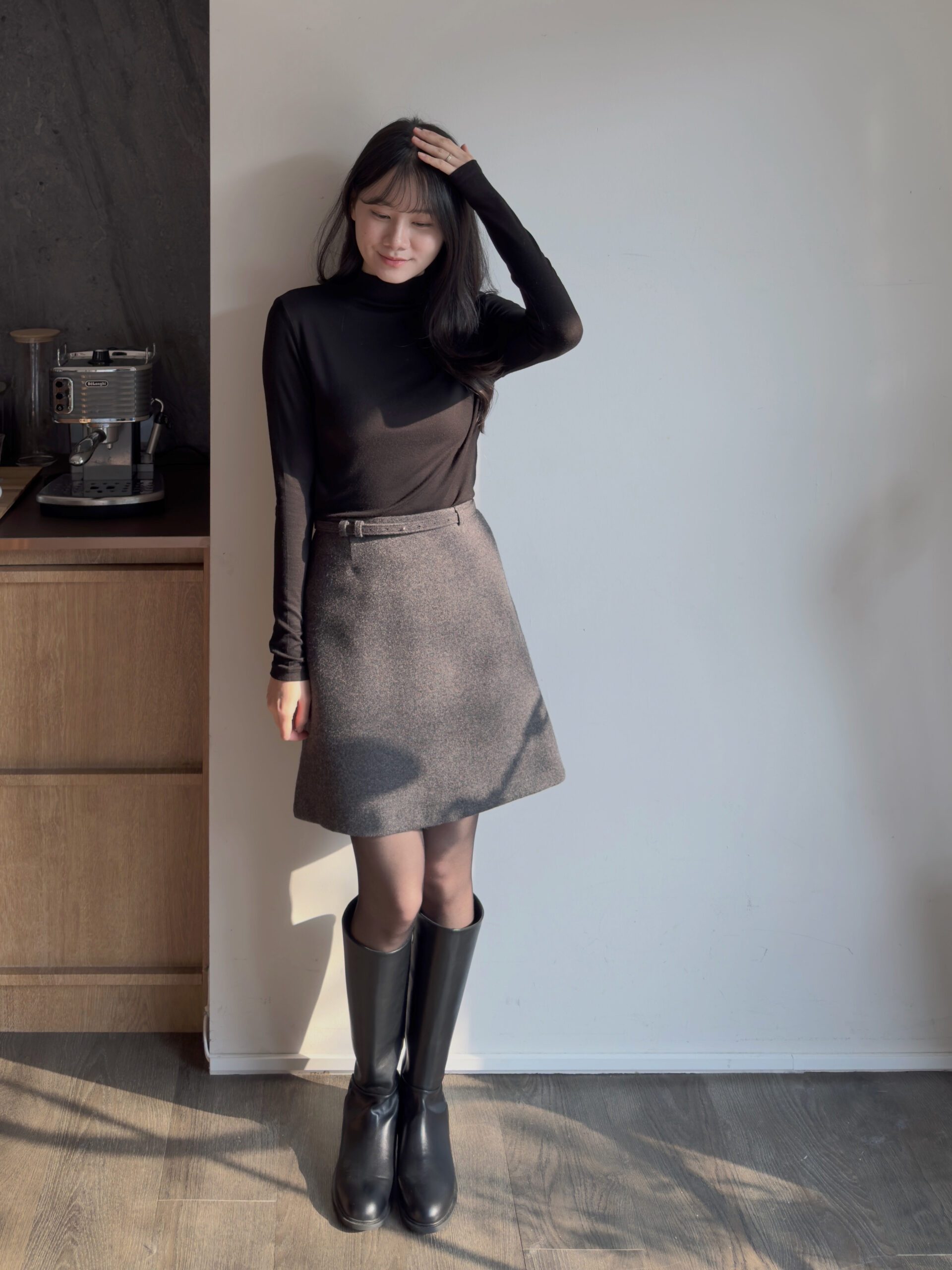 總覺得高領上衣沒穿好,容易讓整體比例失衡,像一顆大頭單獨掛著
