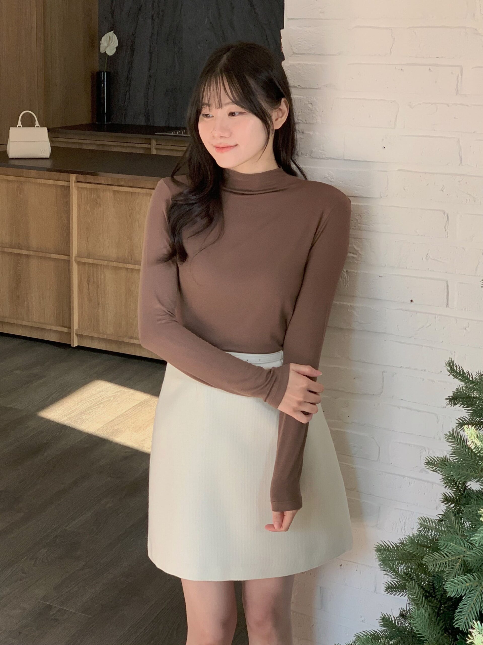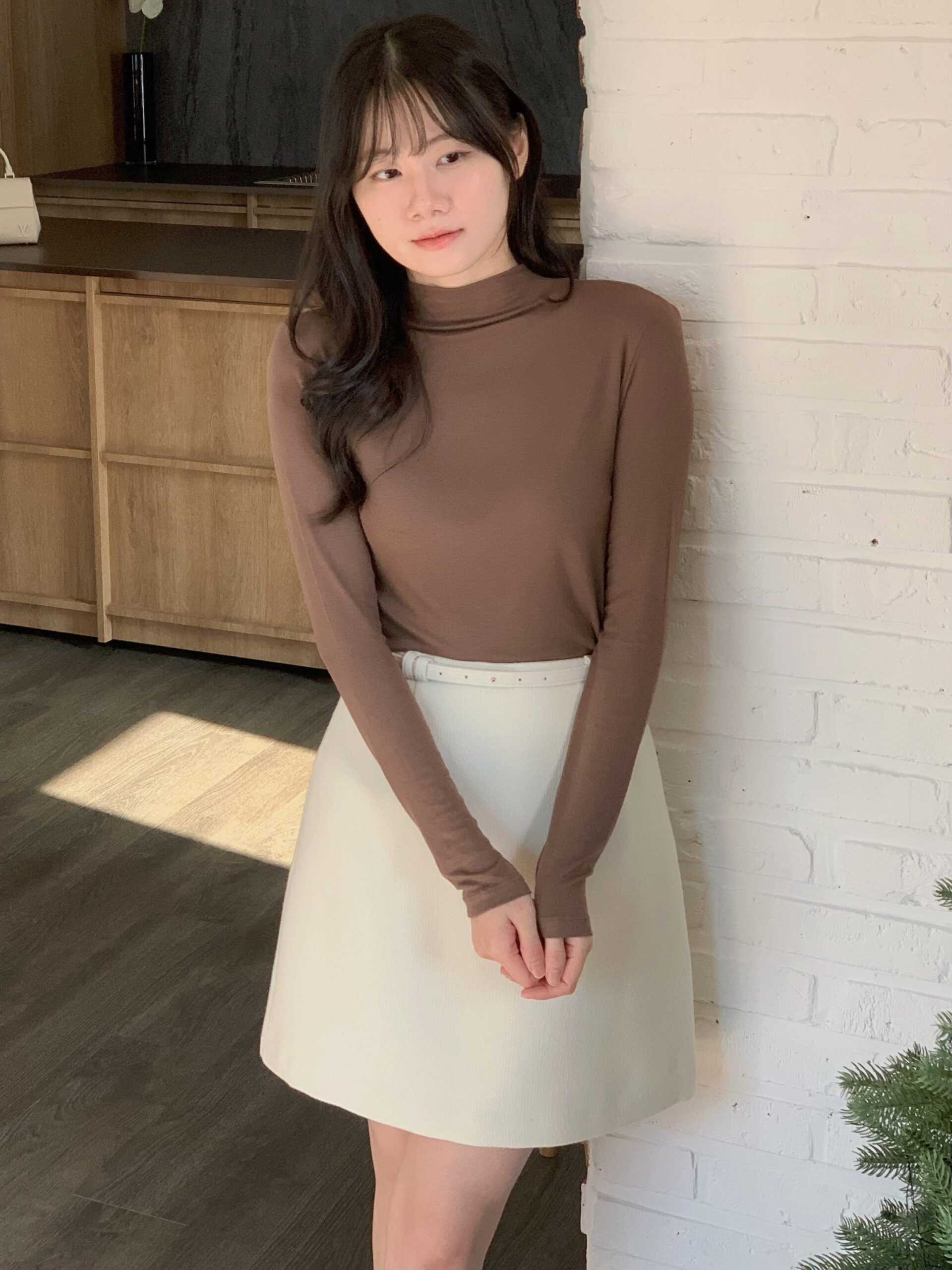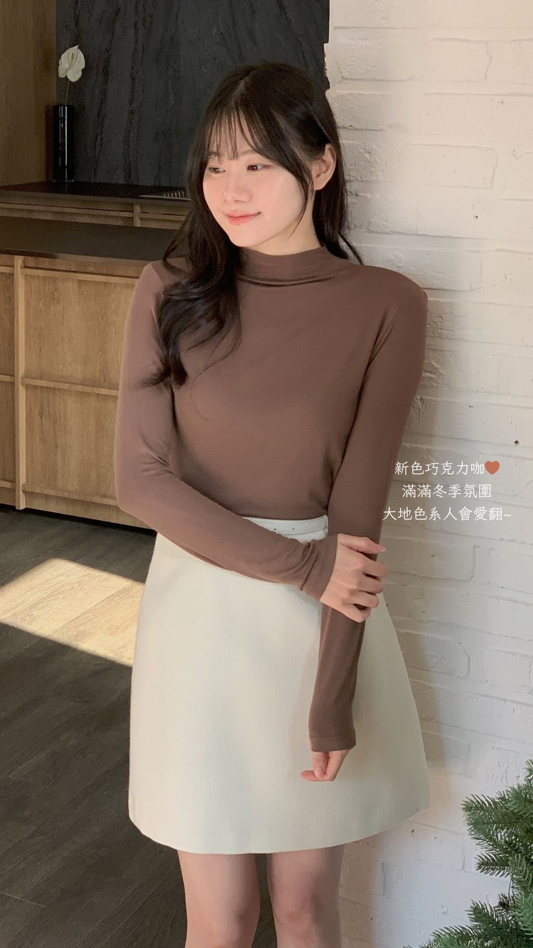 ******lin324@gmail.com That's mine.彈力柔軟半領打底T(長袖) - 巧克力咖 - 顏色 : 巧克力咖