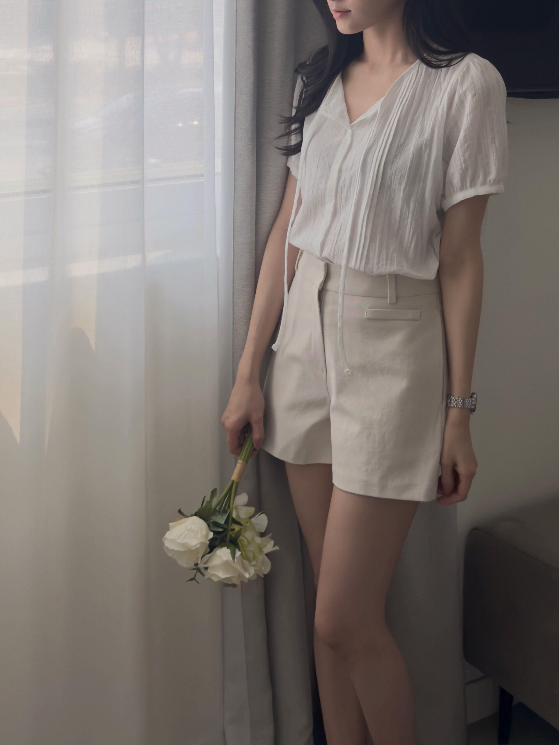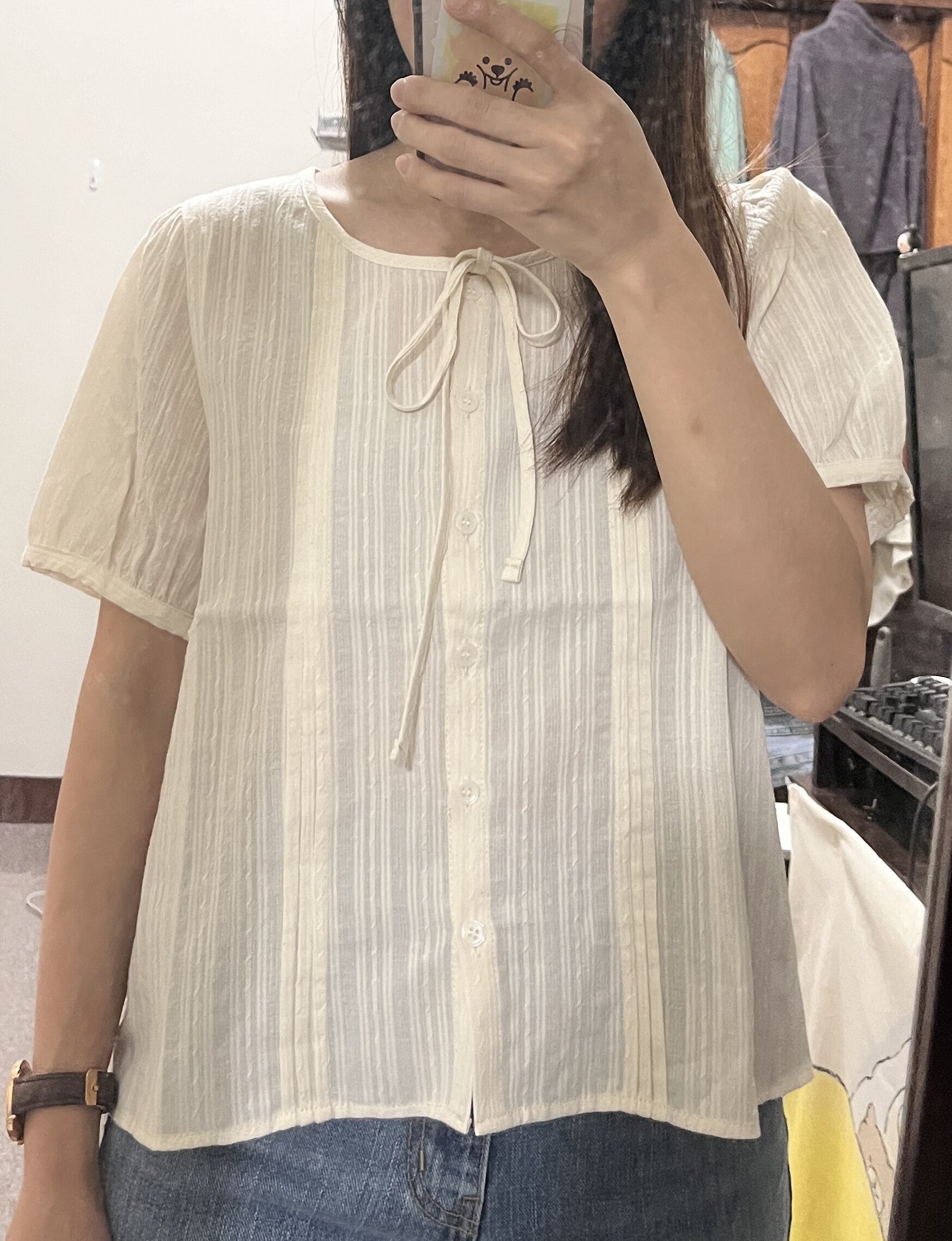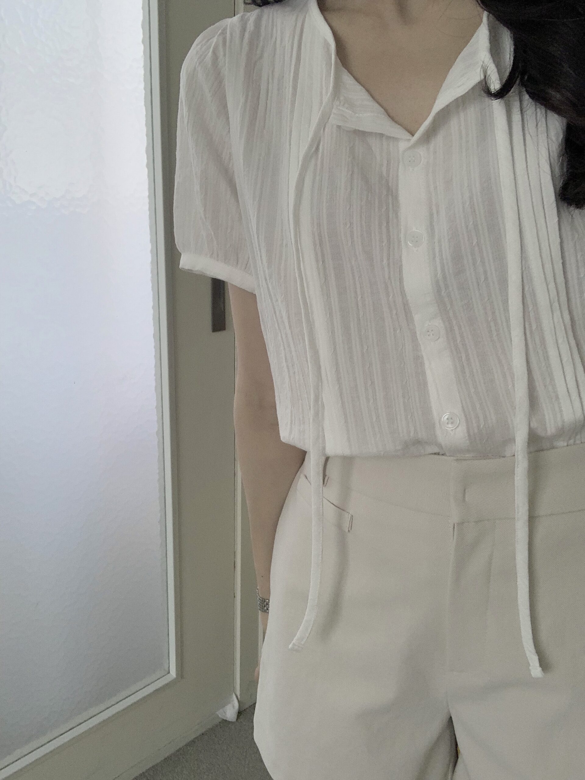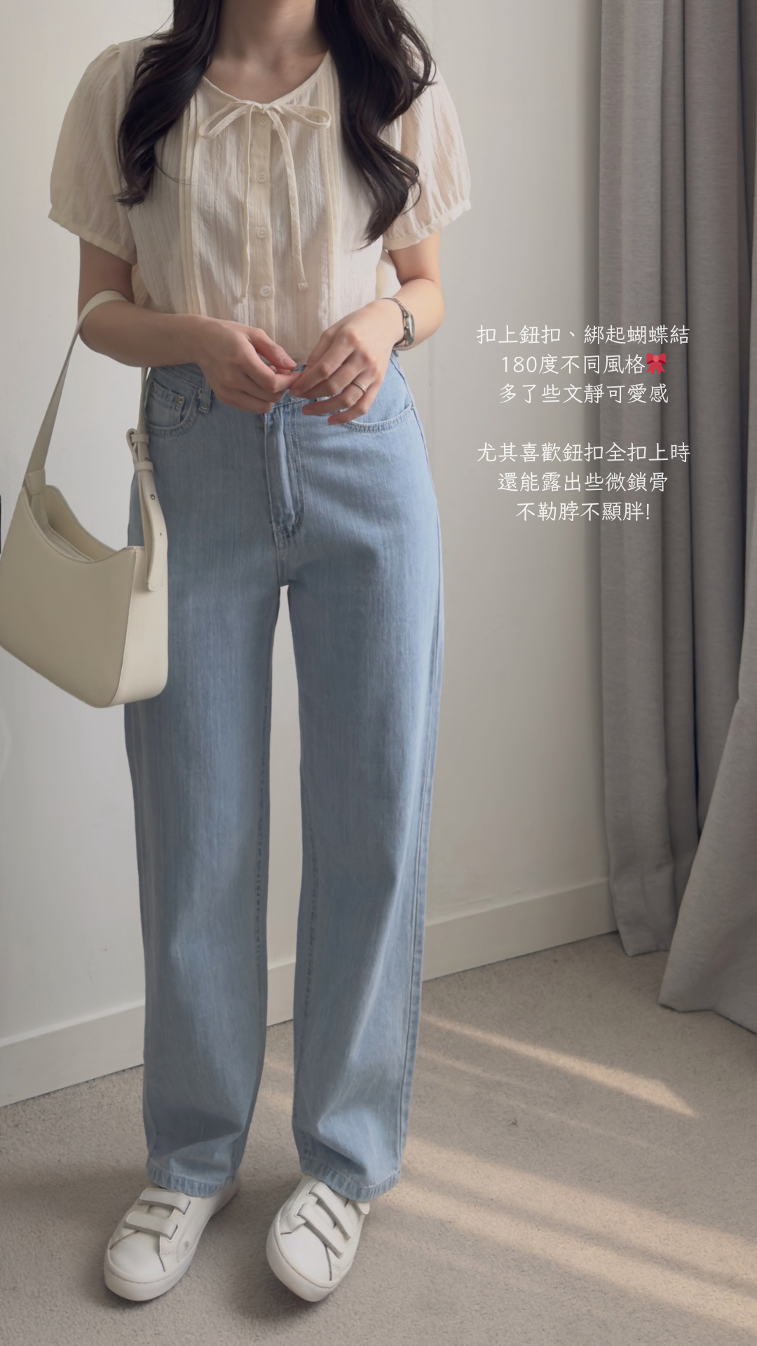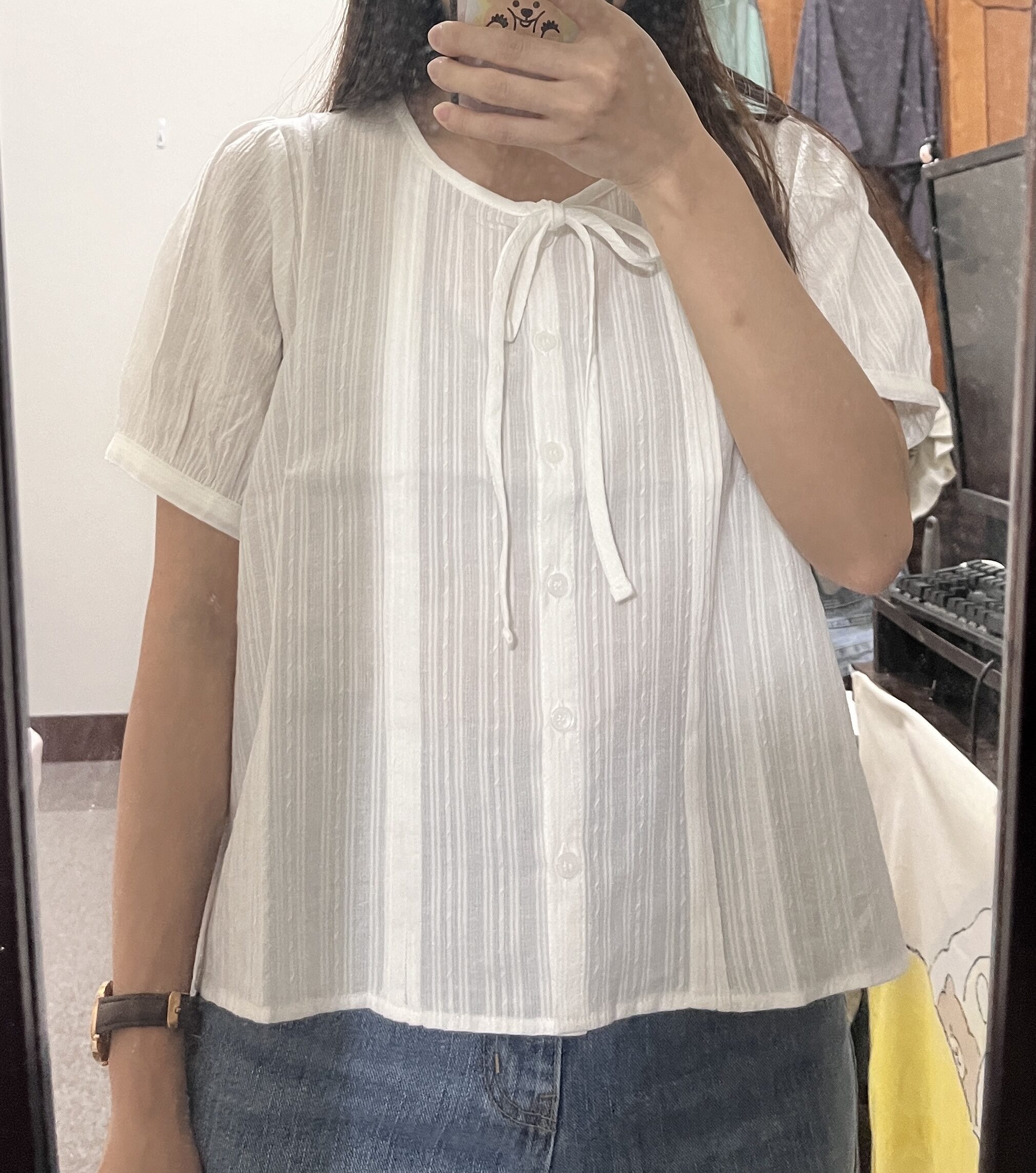 最喜歡簡約的白色上衣,配上蝴蝶結好可愛,不紮衣服也好看。