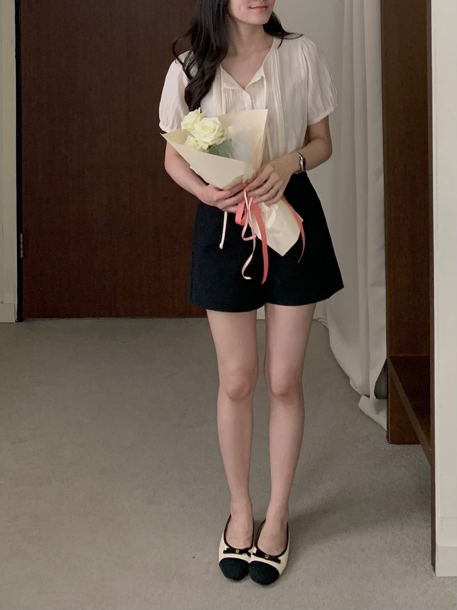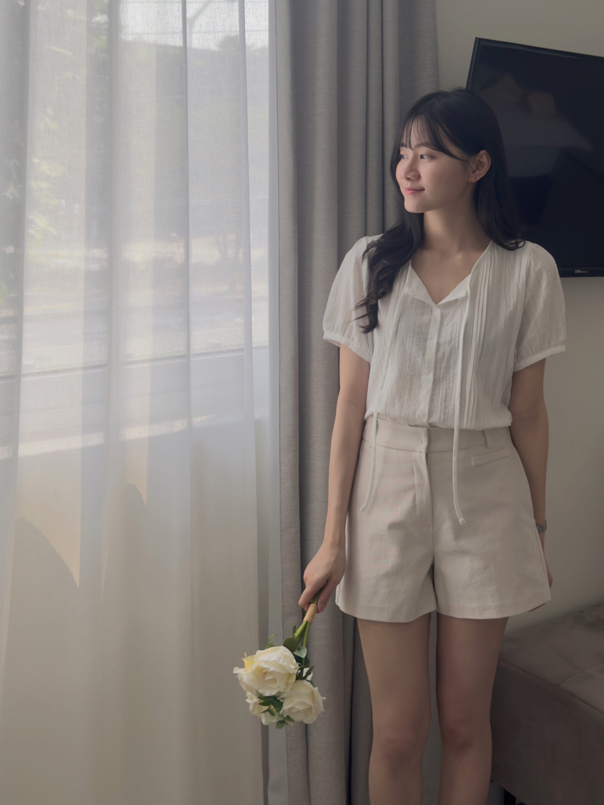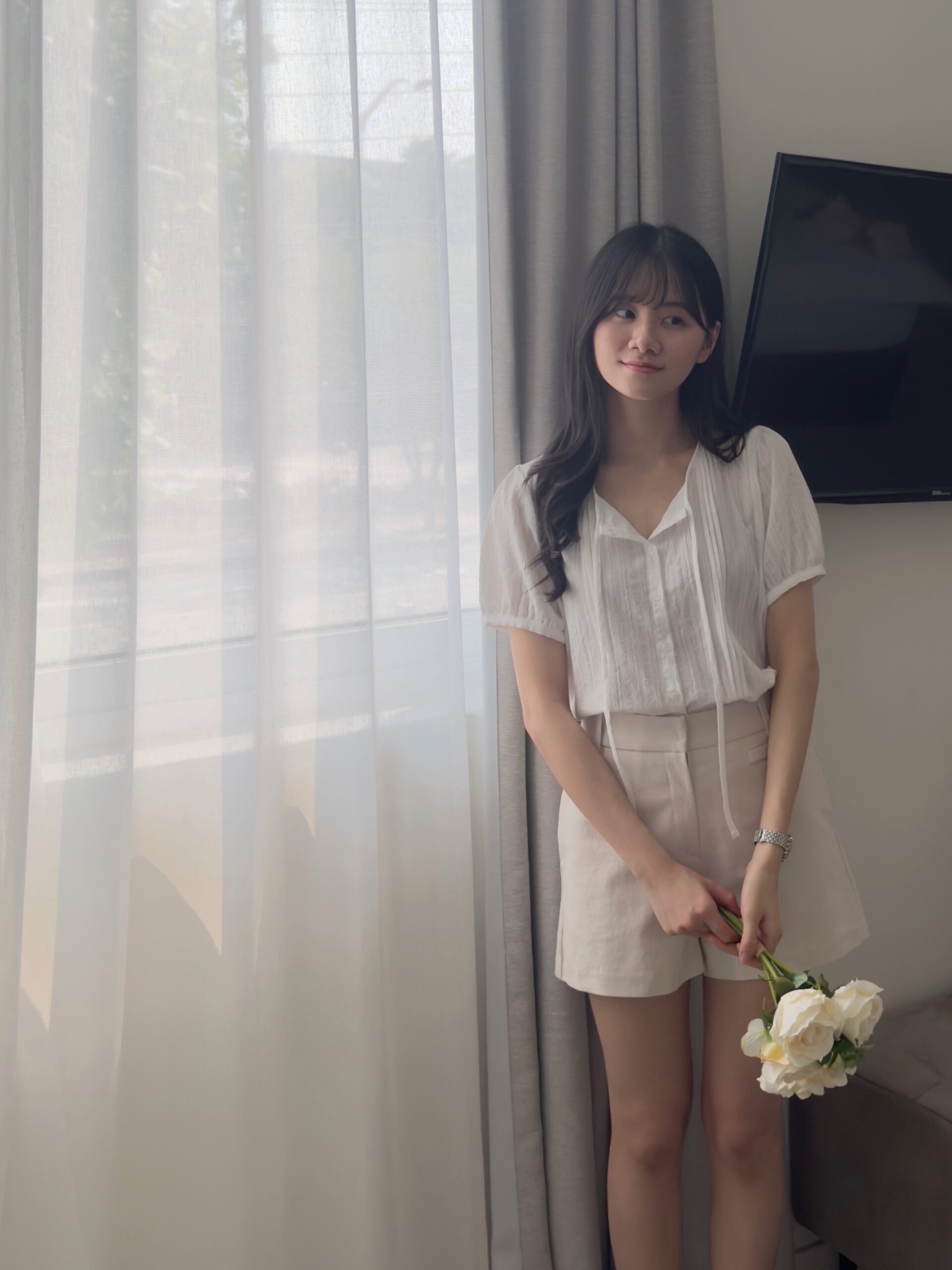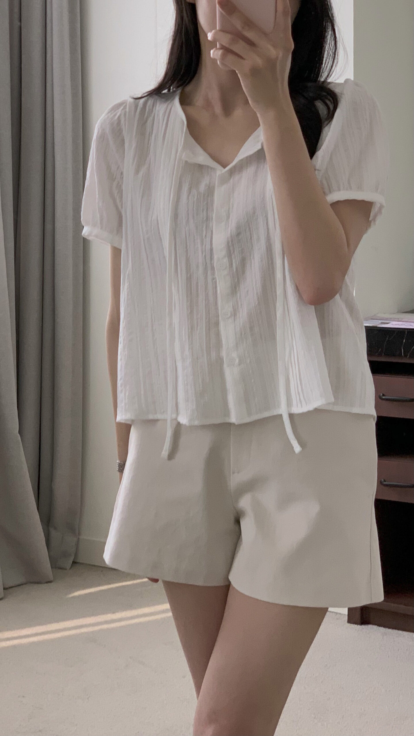 最喜歡簡約的白色上衣,配上蝴蝶結好可愛,不紮衣服也好看。