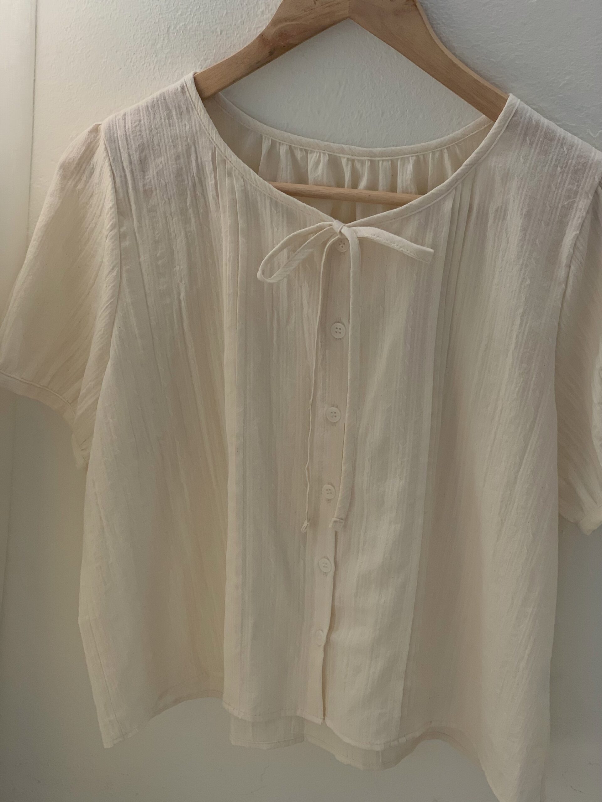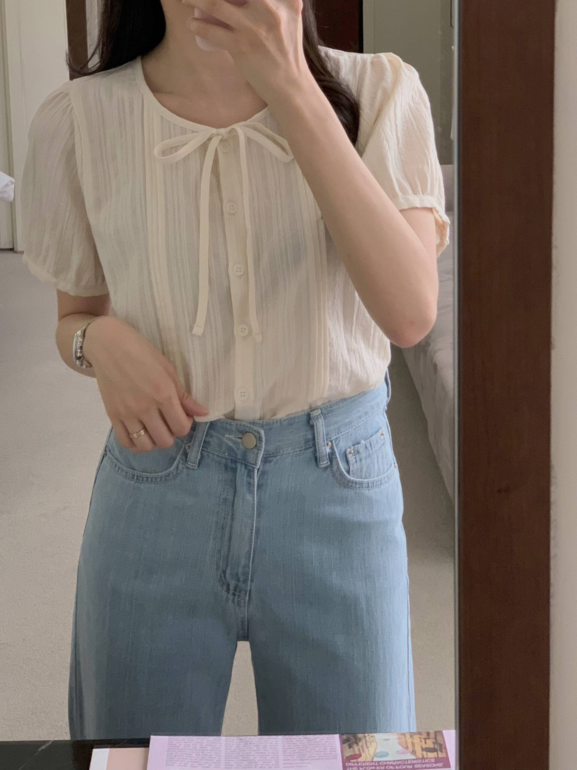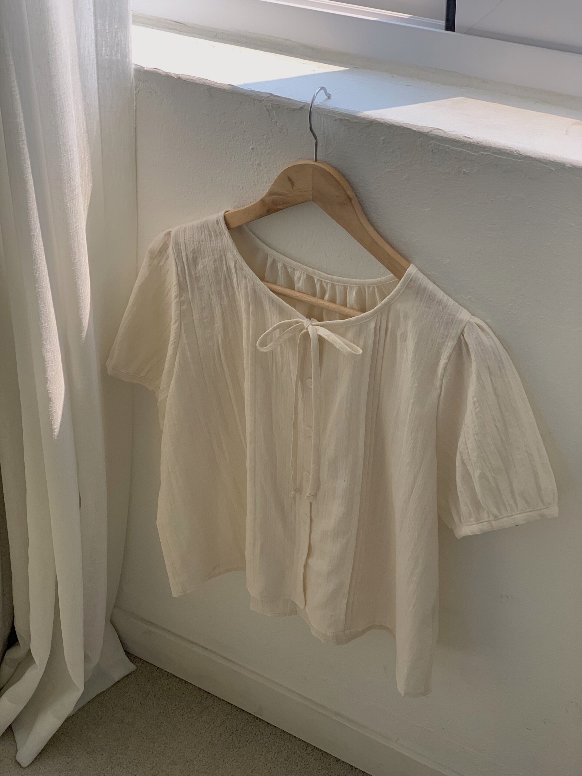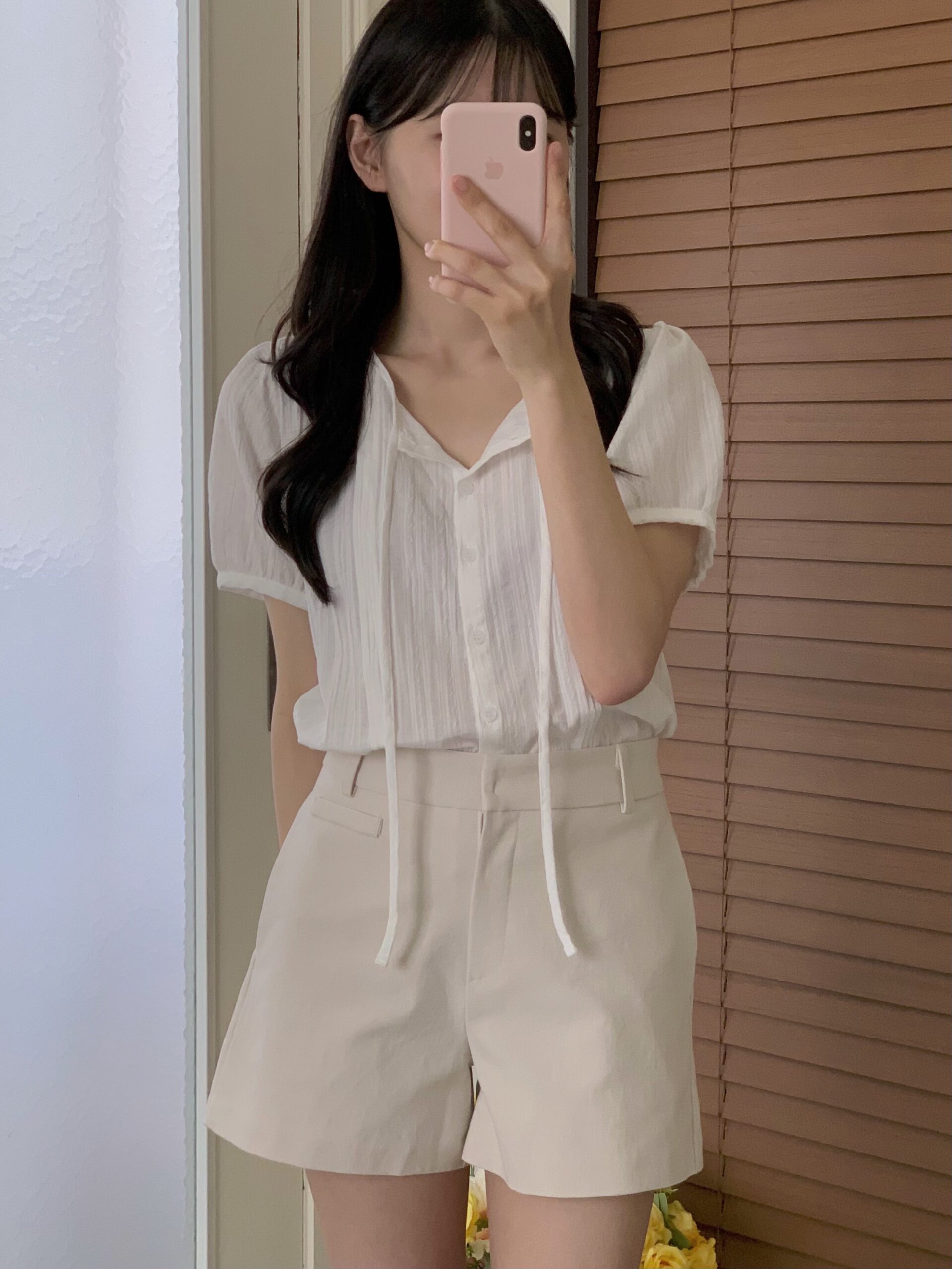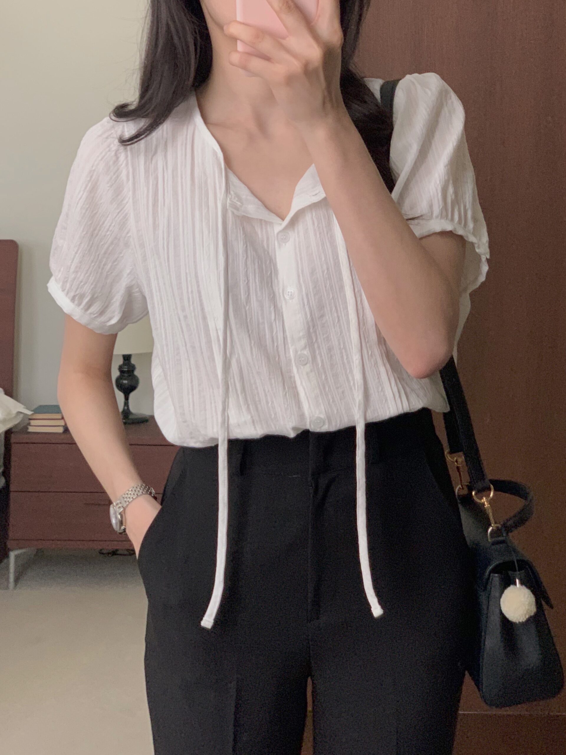 最喜歡簡約的白色上衣,配上蝴蝶結好可愛,不紮衣服也好看。