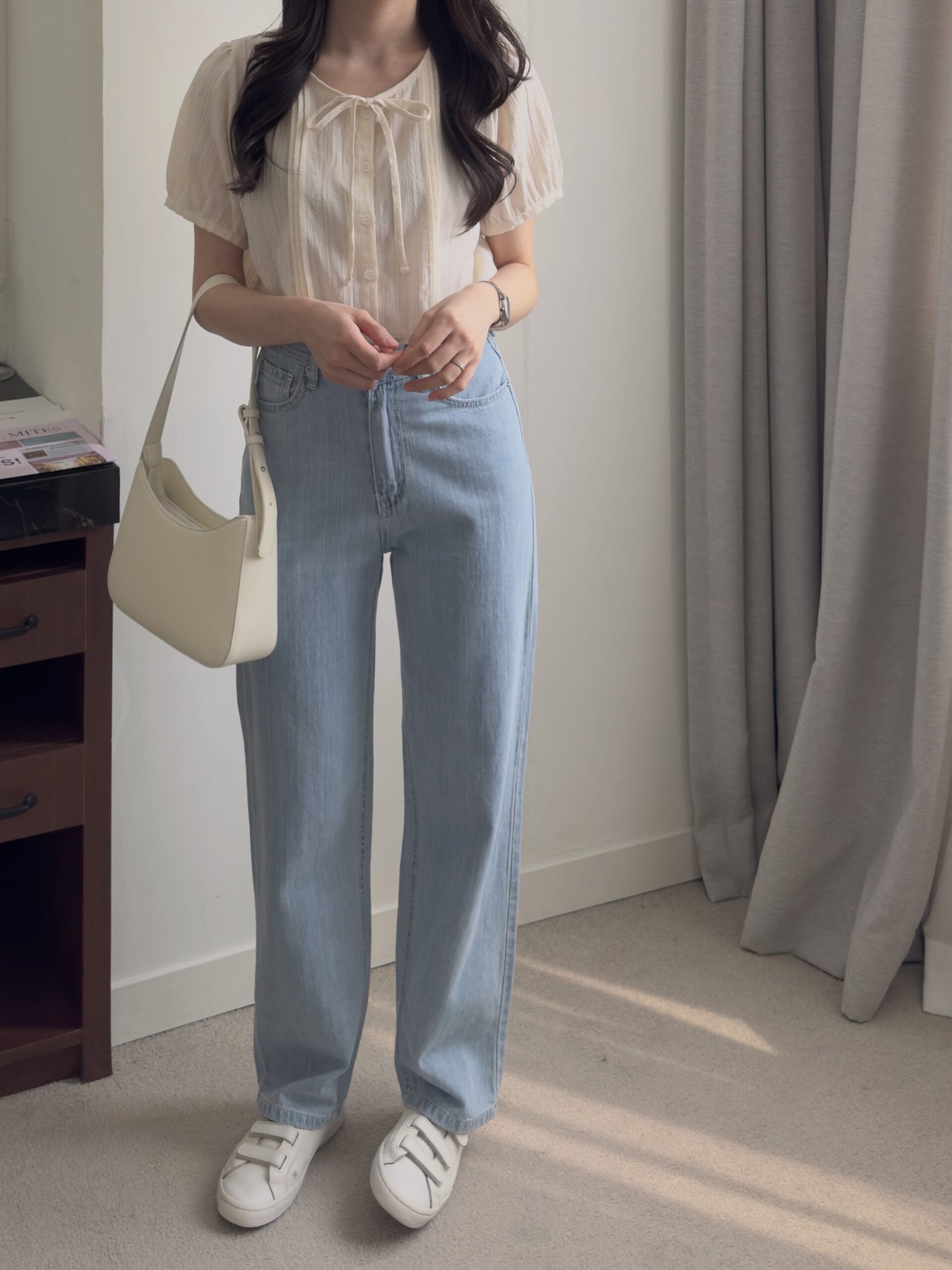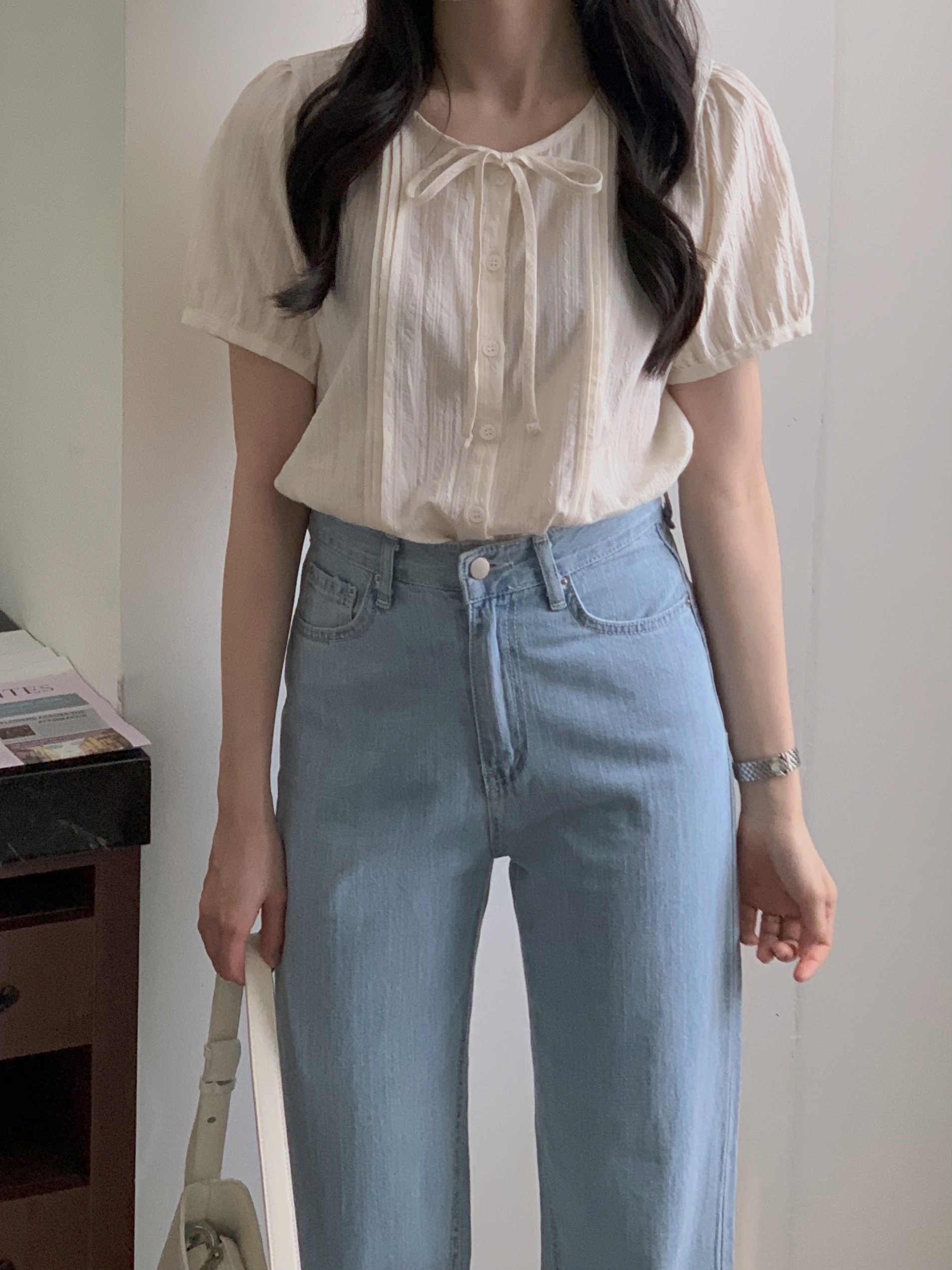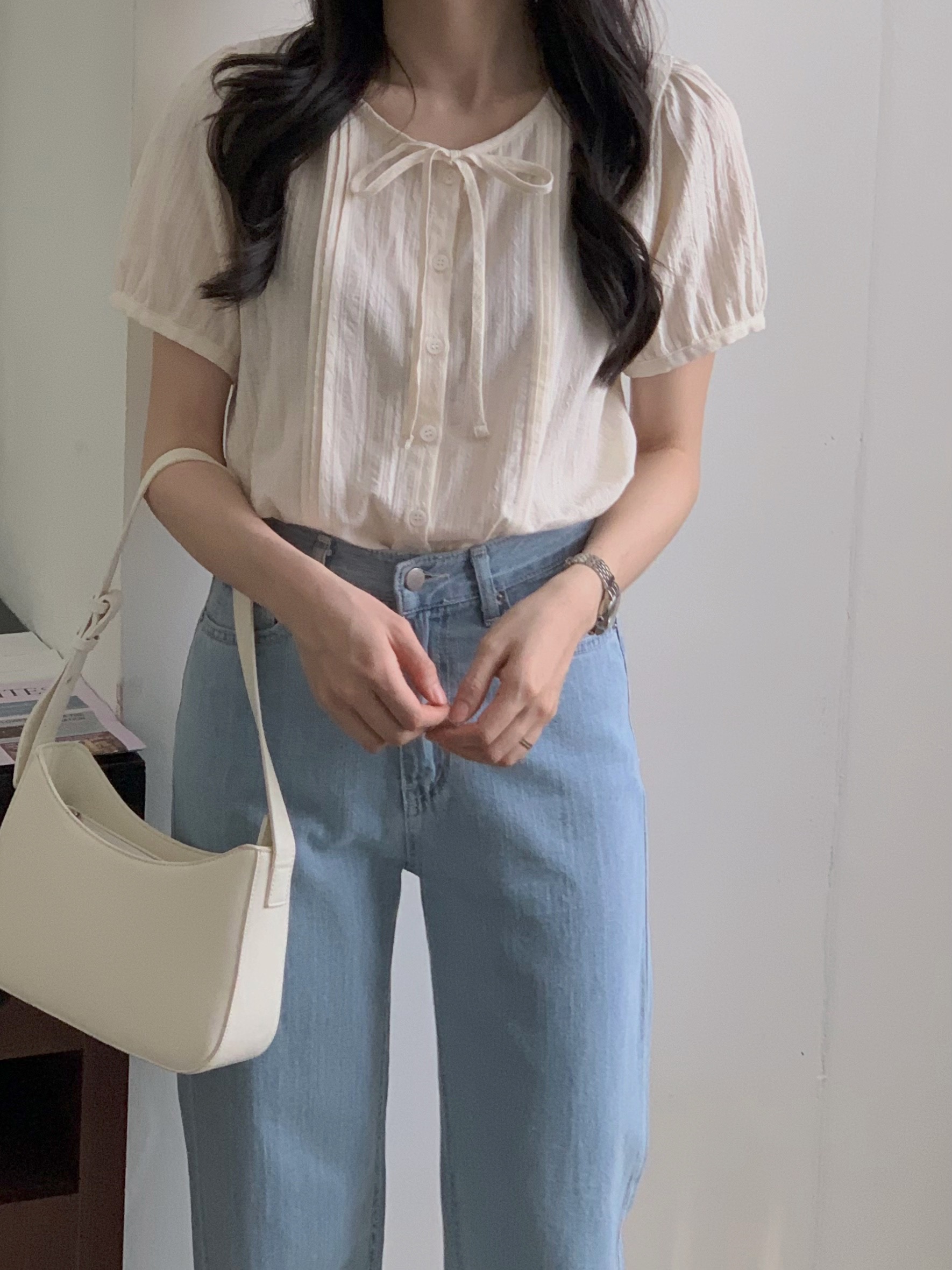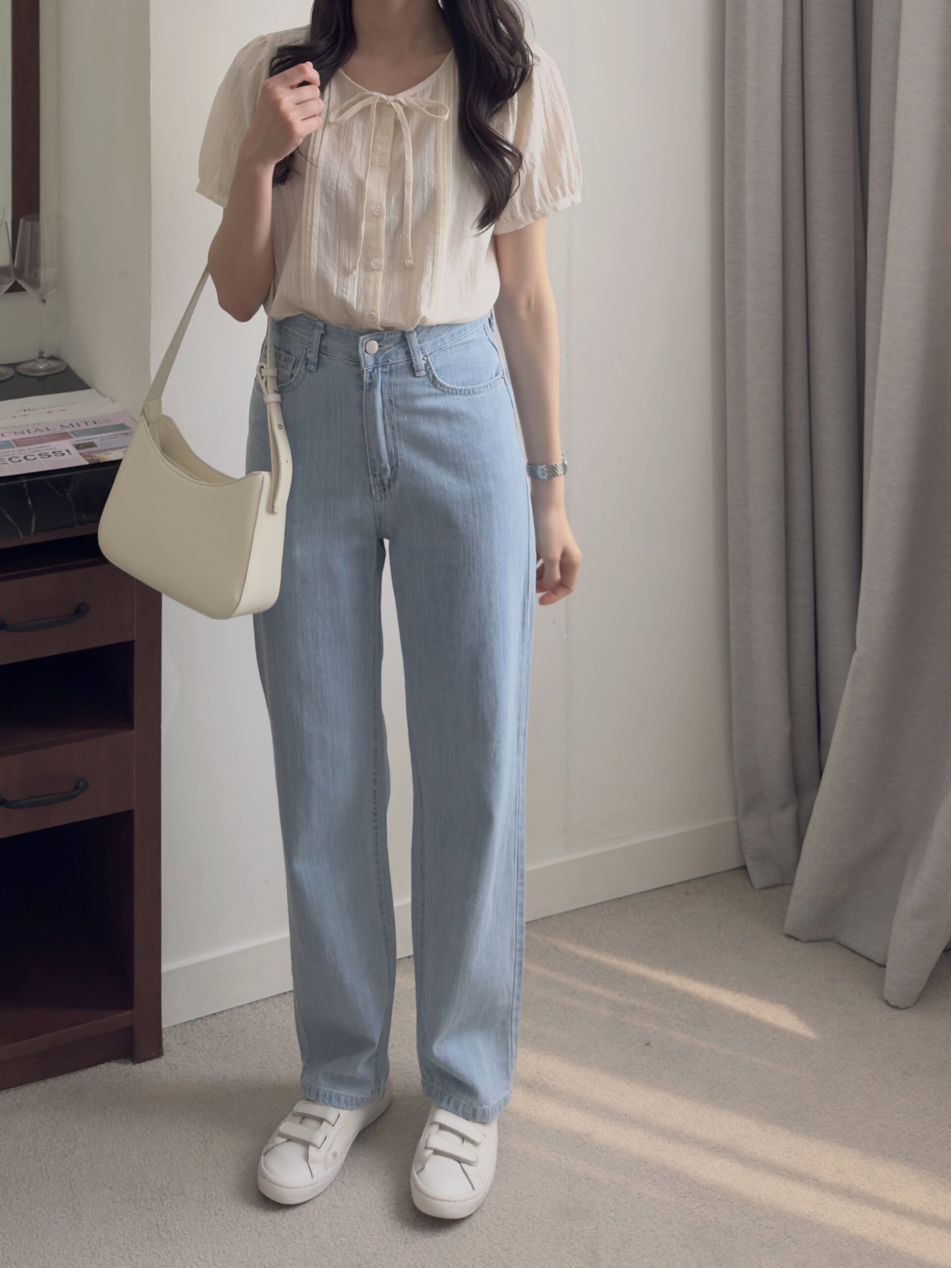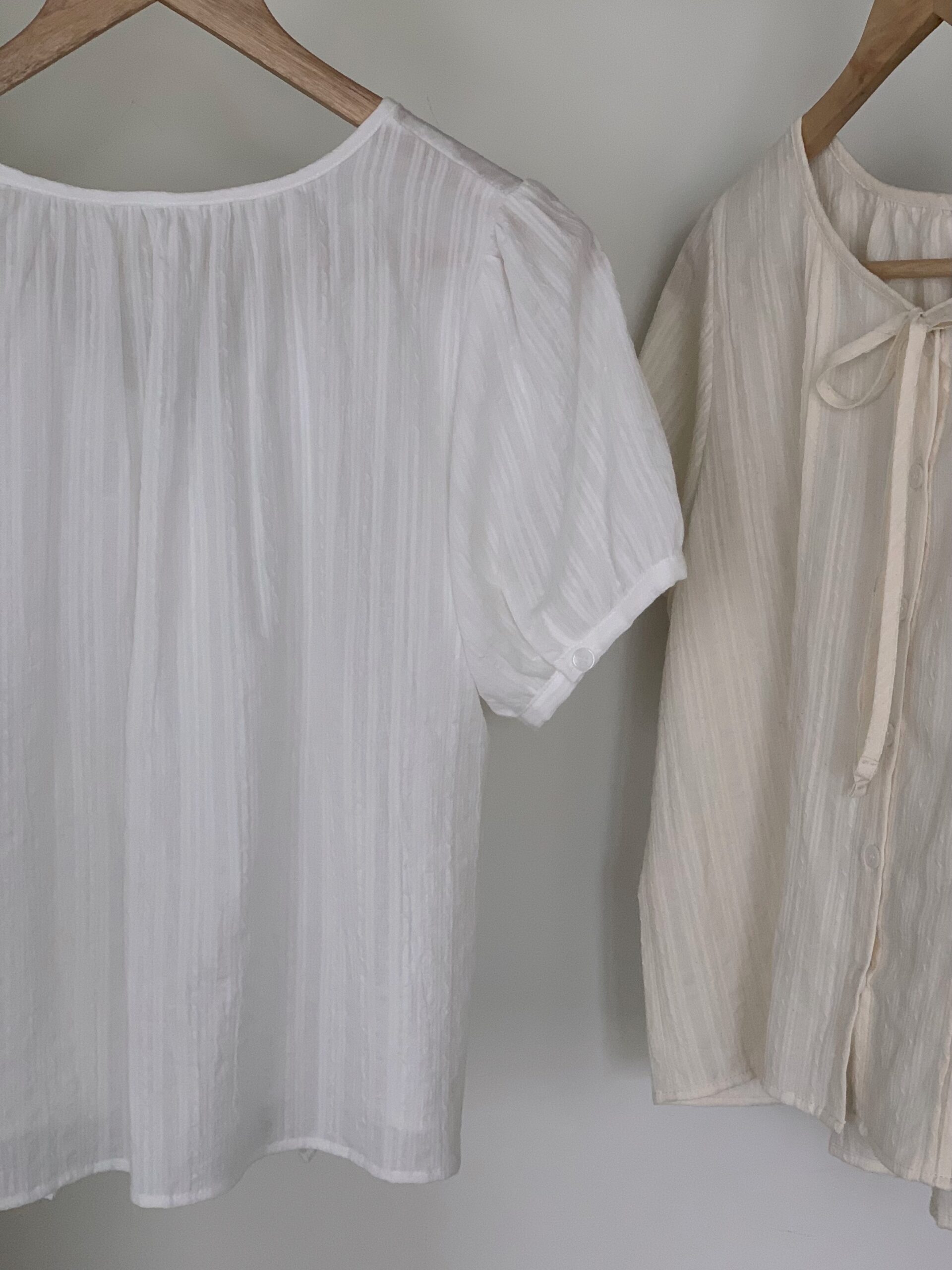 最喜歡簡約的白色上衣,配上蝴蝶結好可愛,不紮衣服也好看。