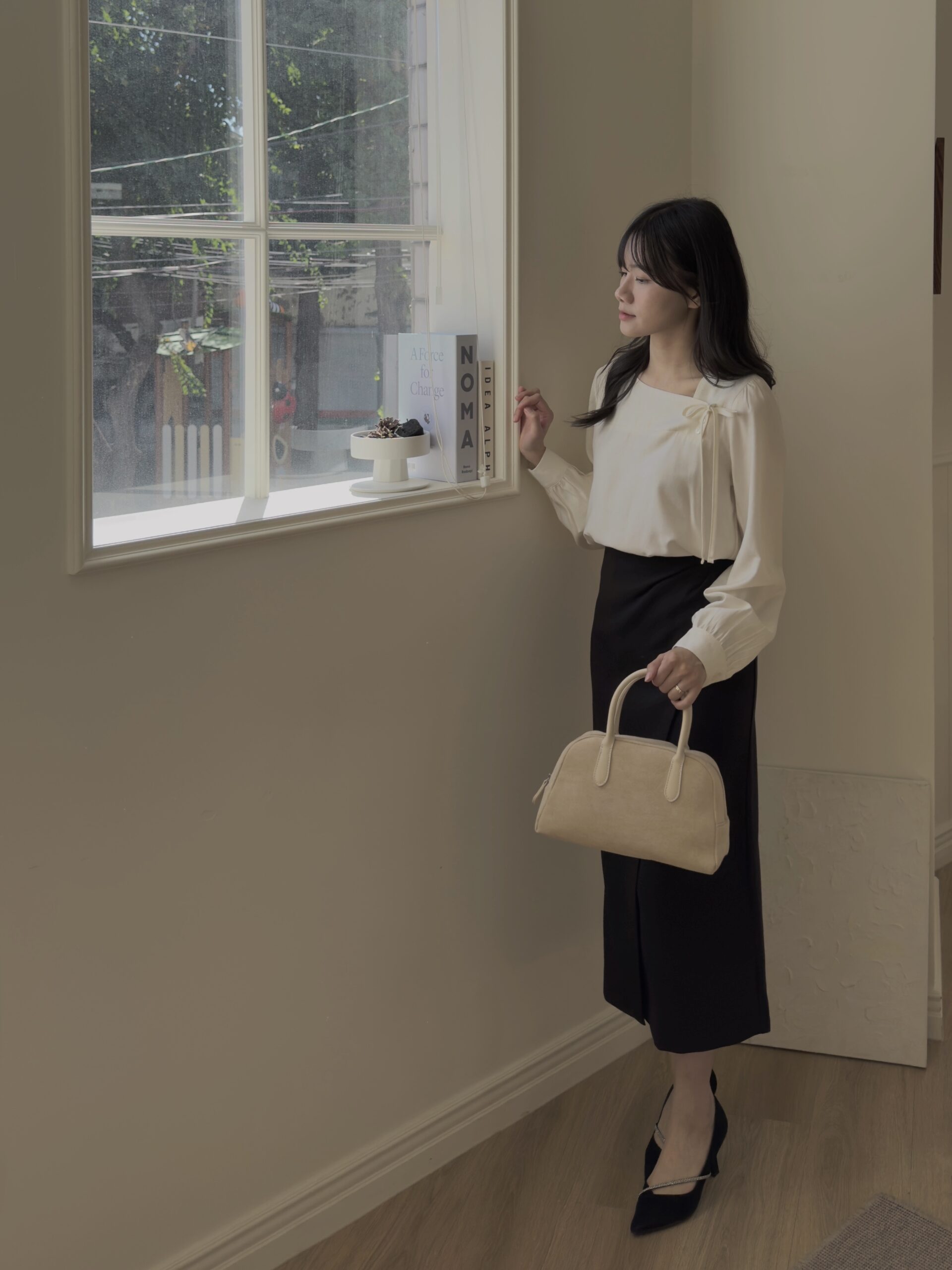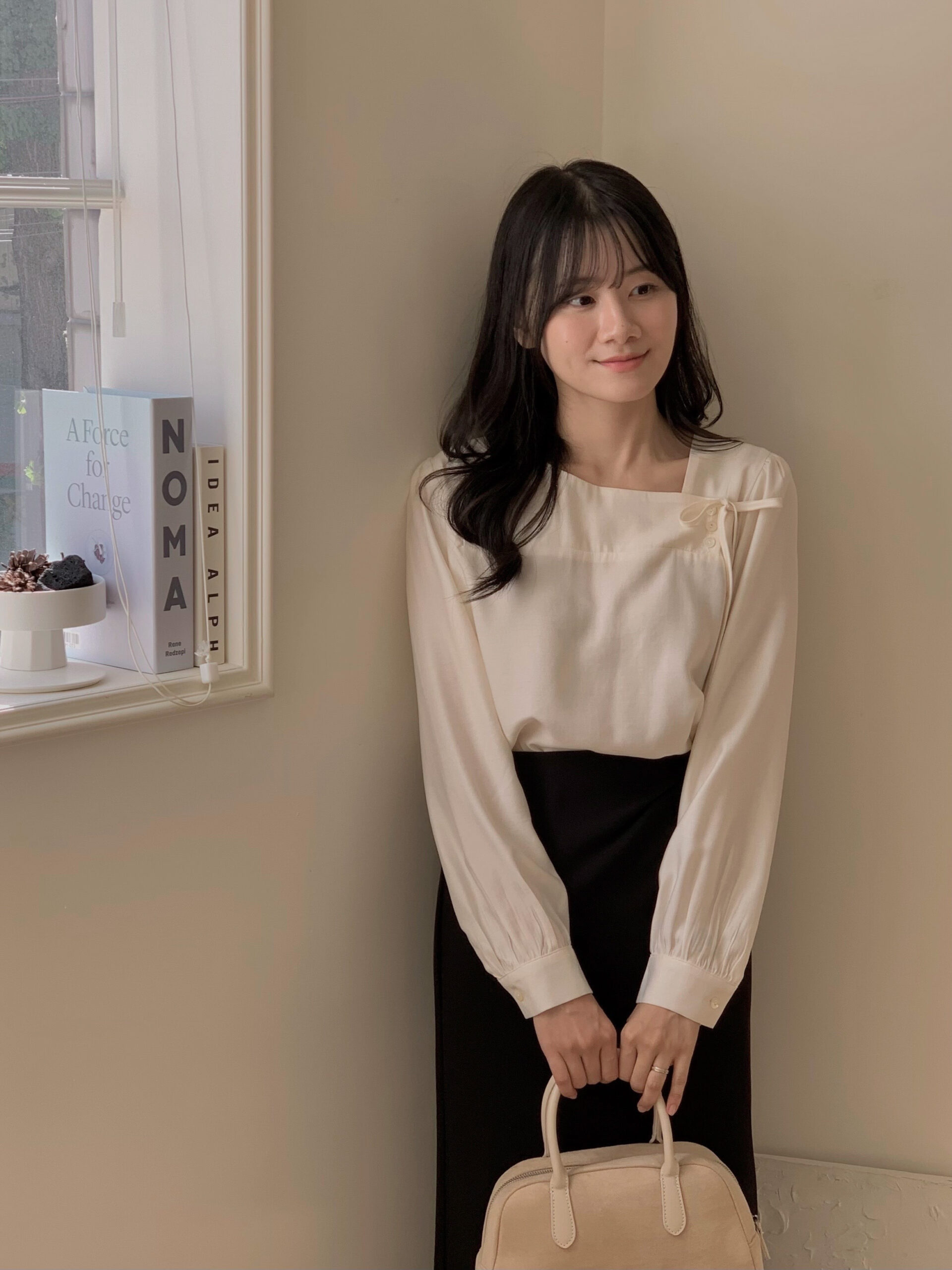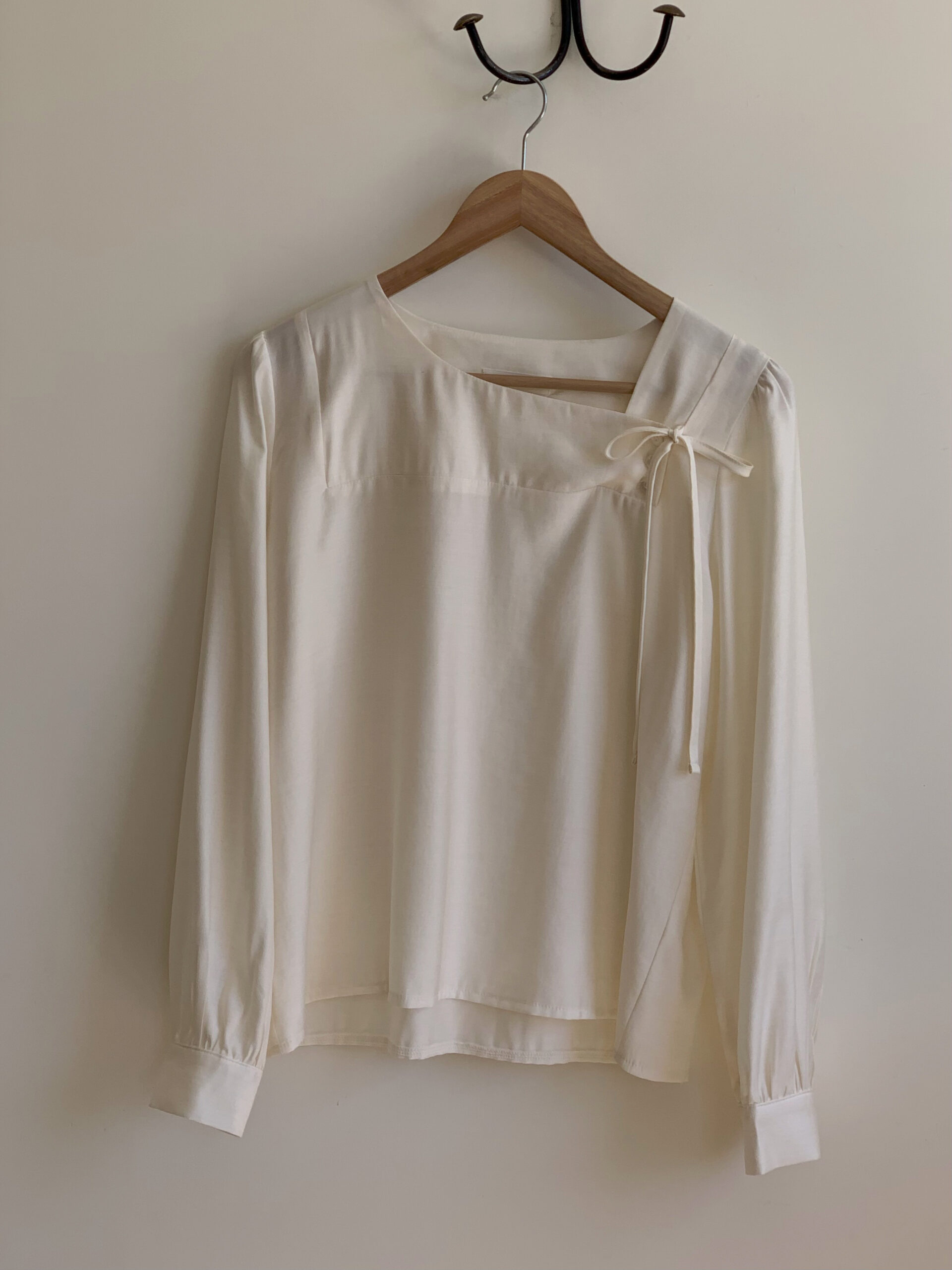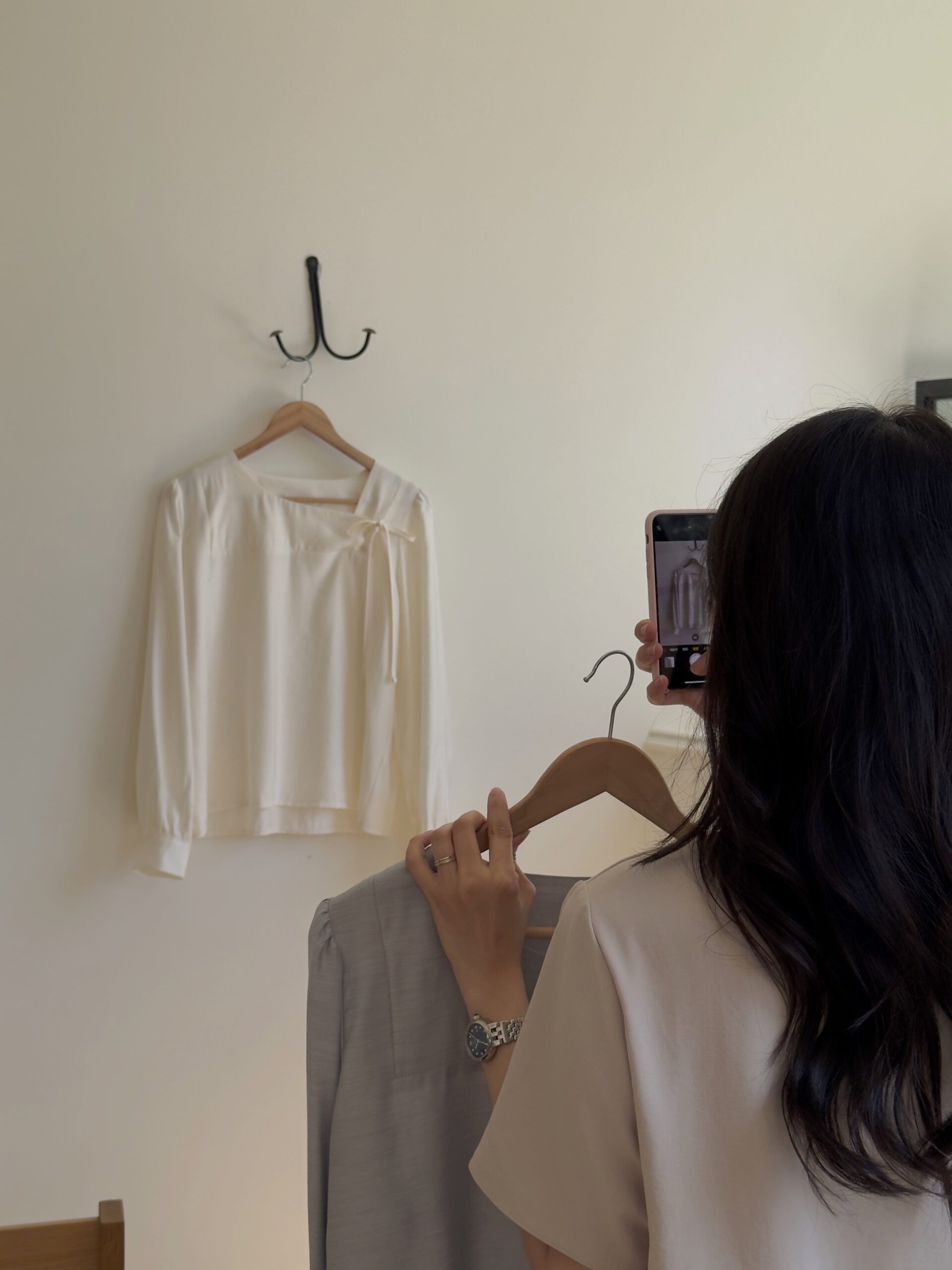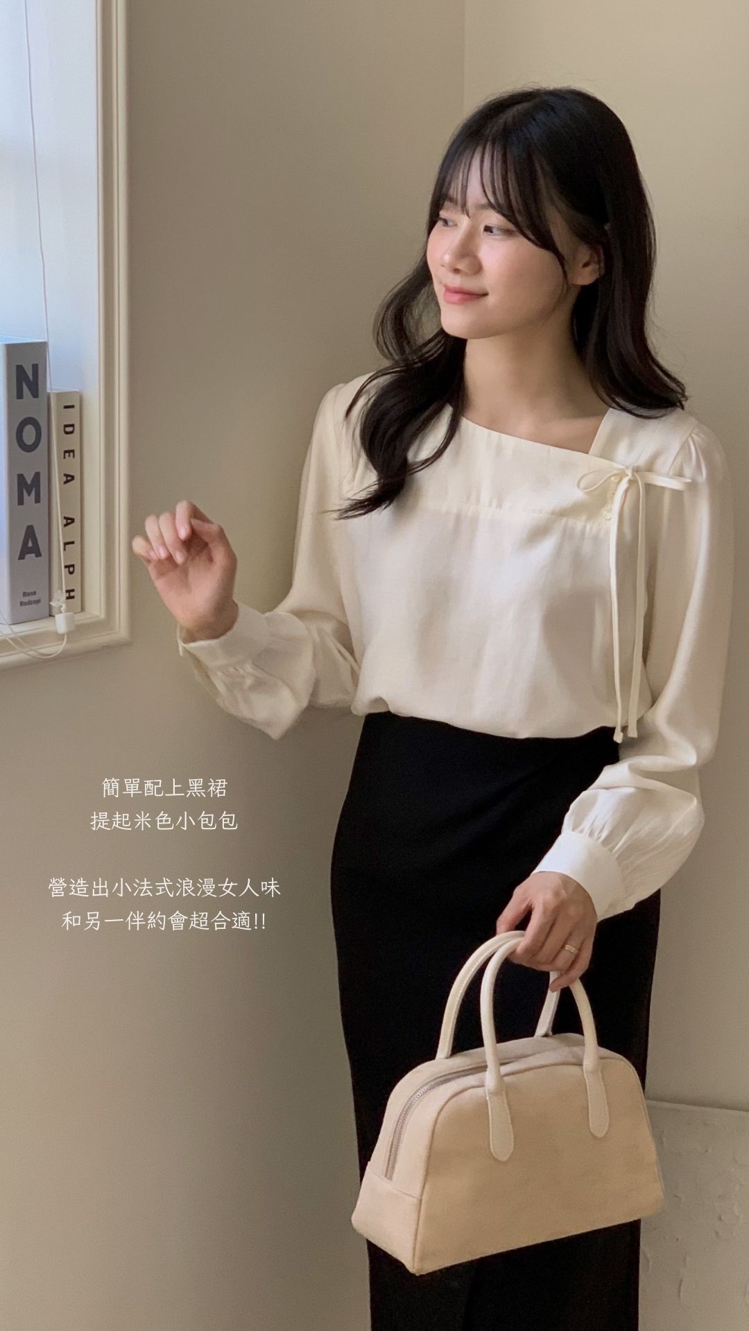 顏色非常特別又少見,穿上綁好蝴蝶結 搭配設計領口 ,直接氣質滿分的漂亮上衣😍