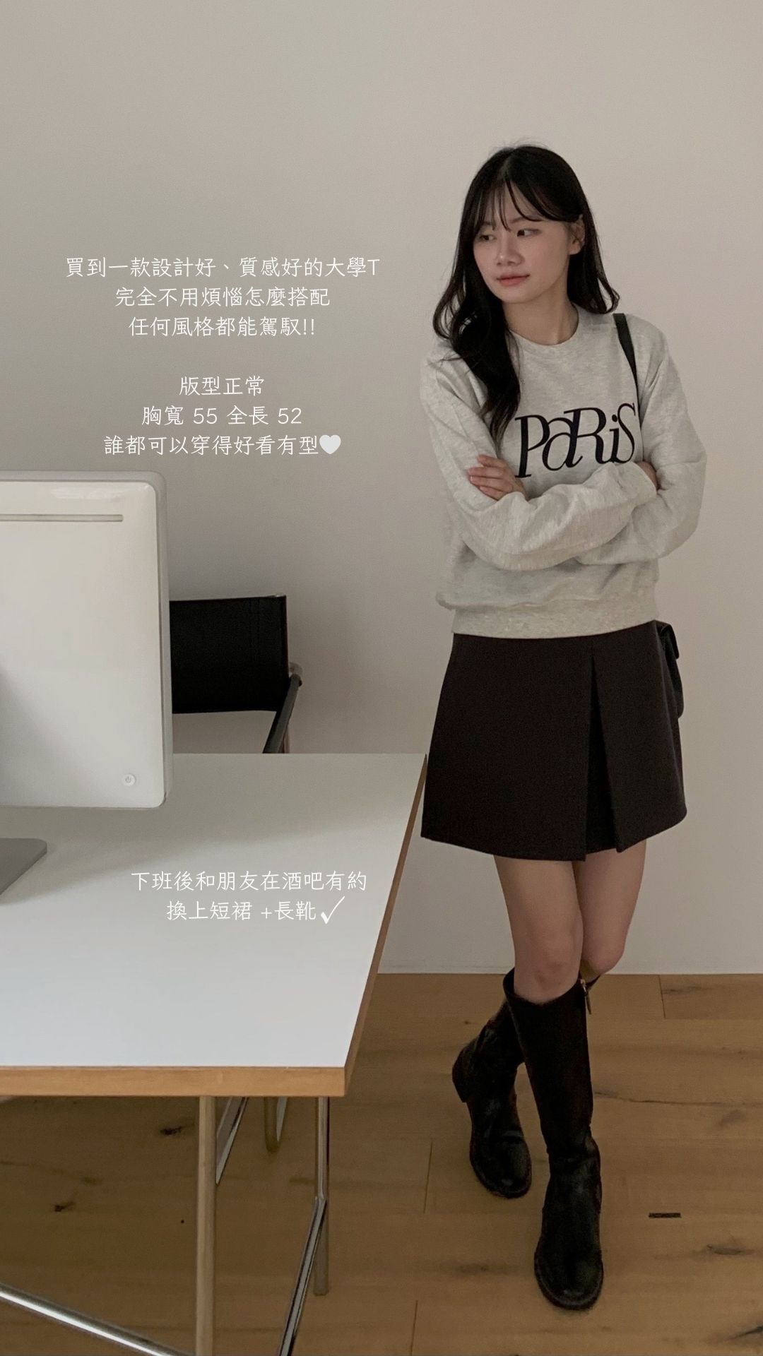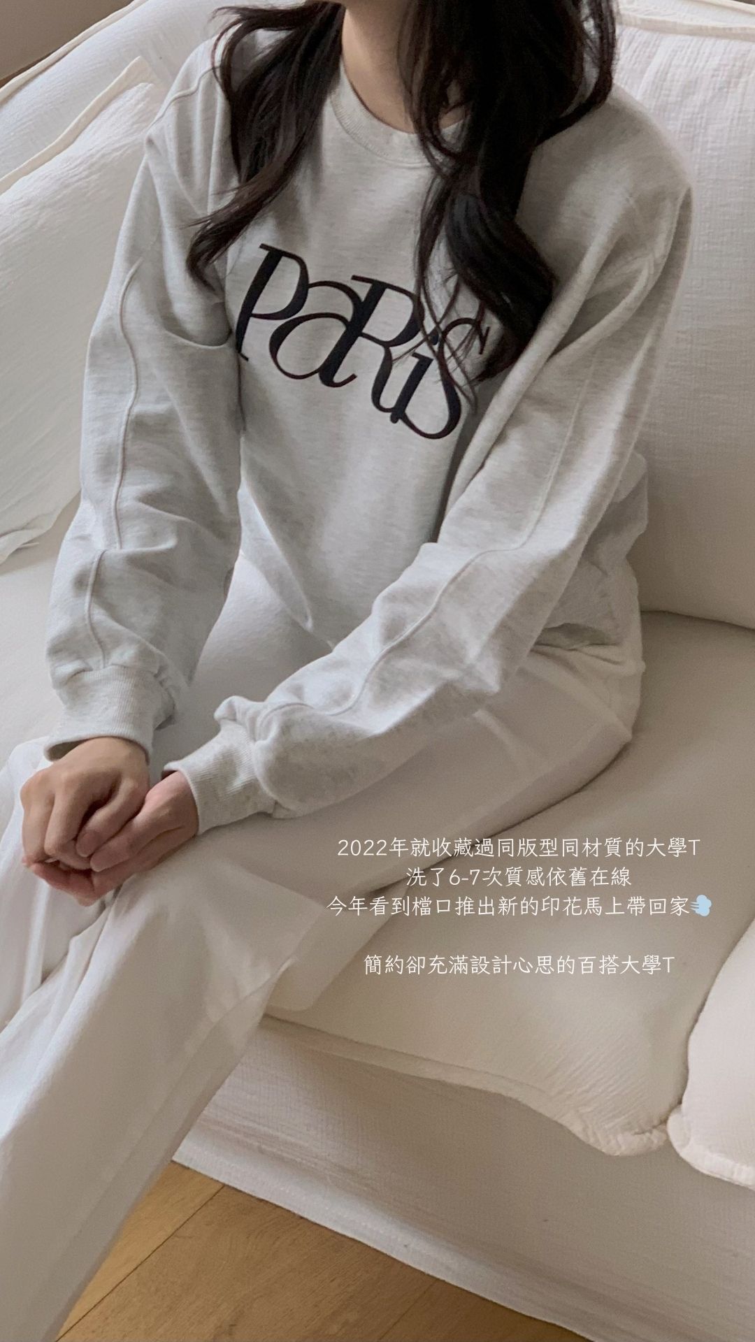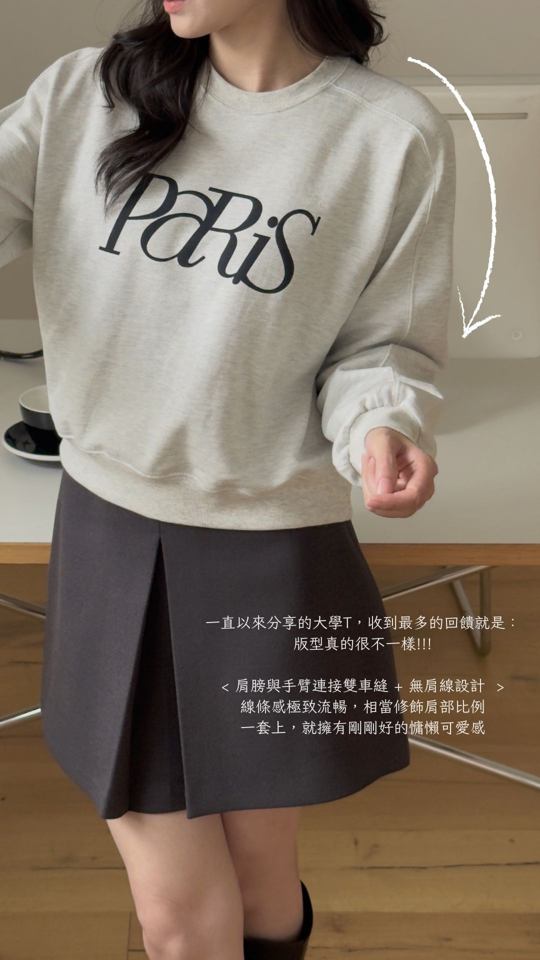 ******841026@gmail.com Paris立體剪裁大學T - 燕麥米灰 - 顏色 : 燕麥米灰
