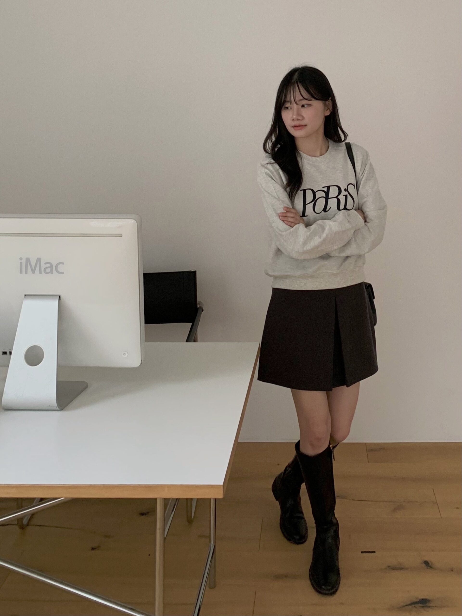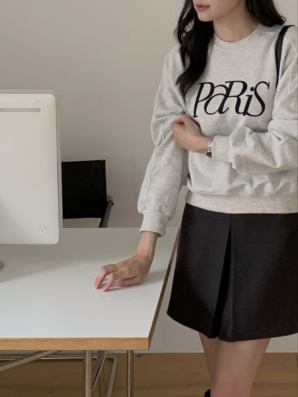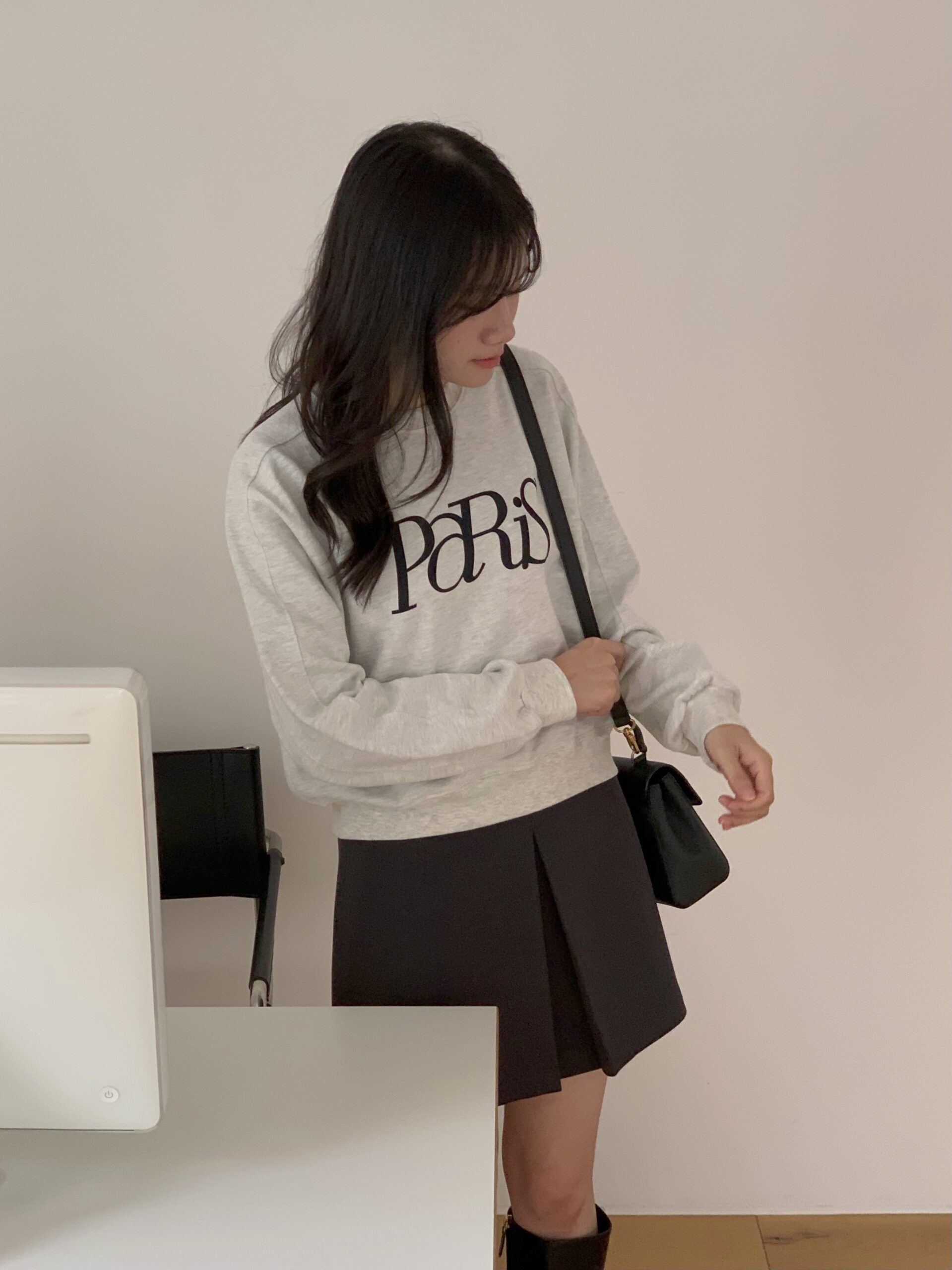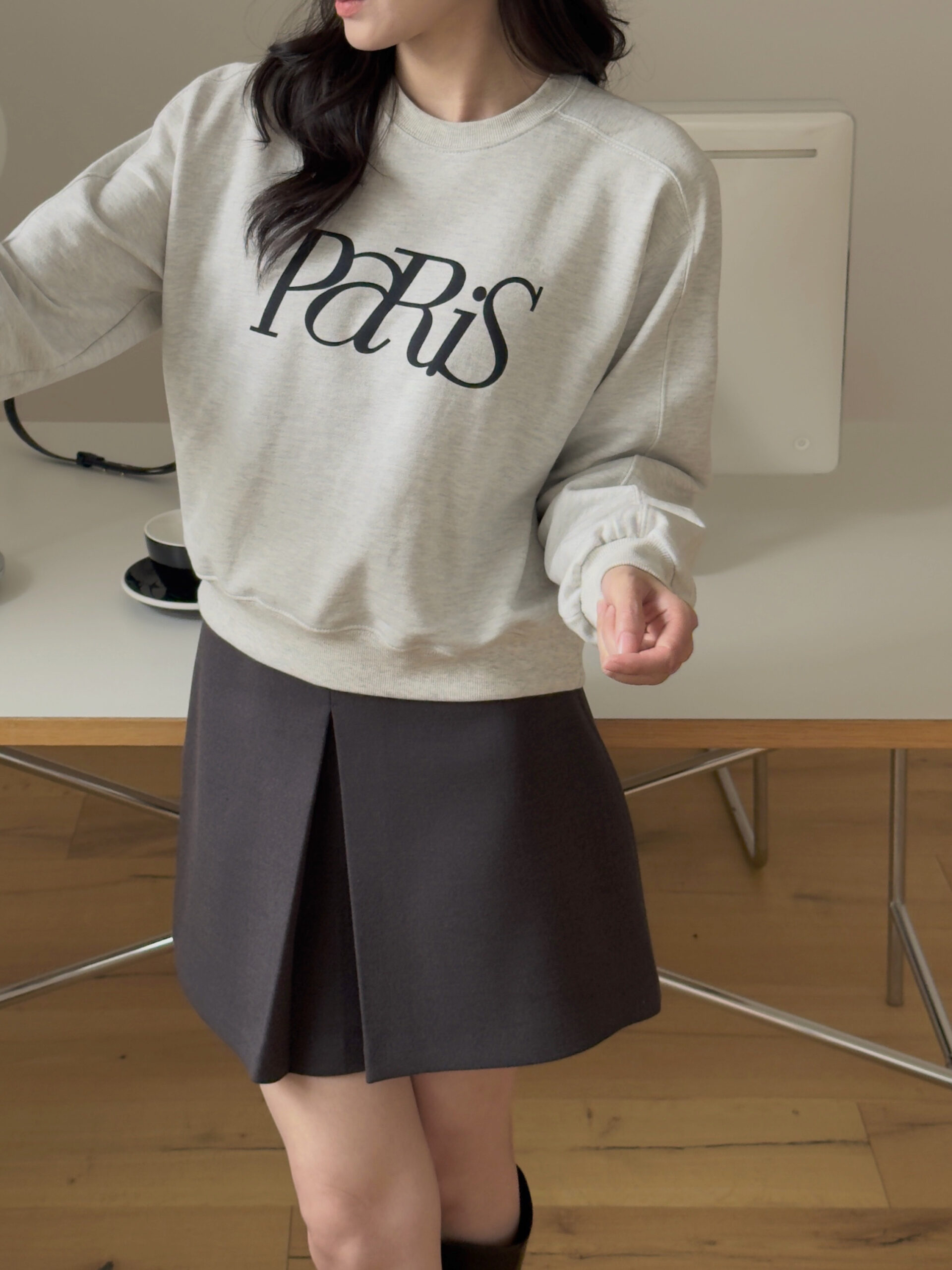 ******trina1215@hotmail.com Paris立體剪裁大學T - 燕麥米灰 - 顏色 : 燕麥米灰